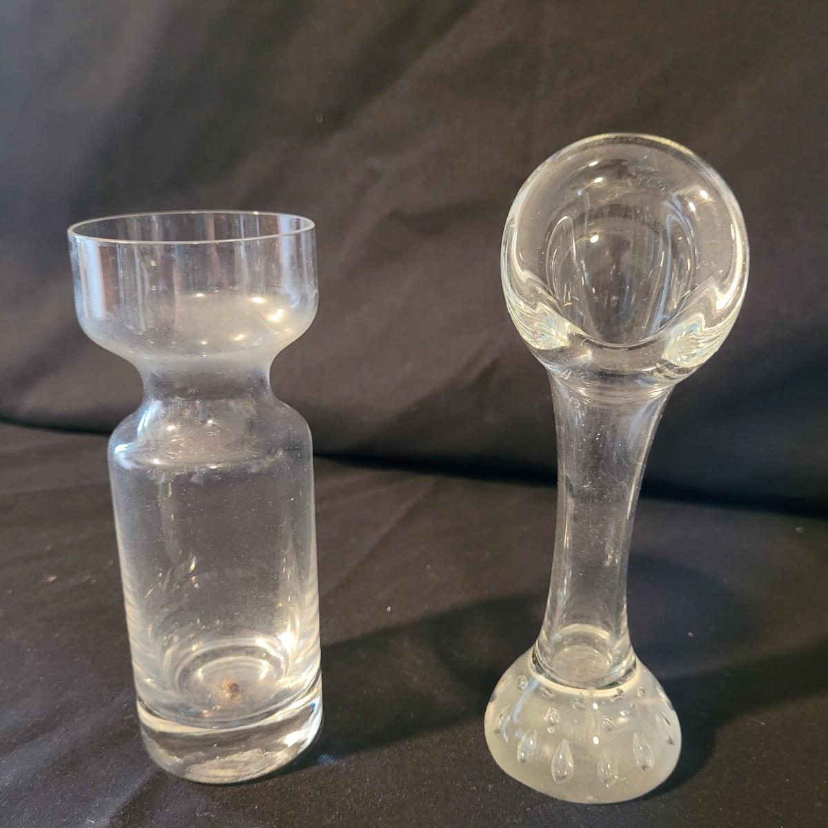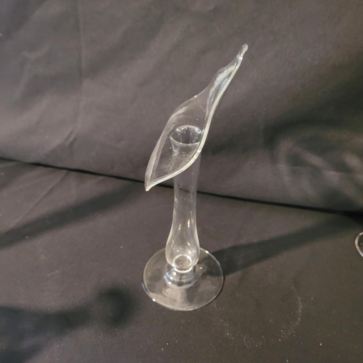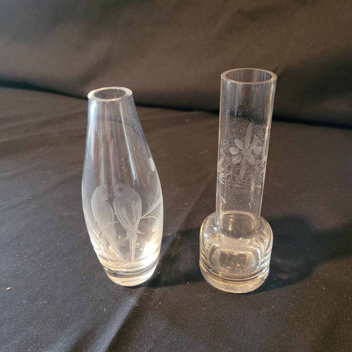 This large assortment of nineteen bud and bulb vases includes a lovely variety of uniquely shaped vases for single stems, bulb sprouting, and buds. Bird etched vase is Lenox USA. Tallest vase in center of photo measures approximately 11”H. Shipping available.