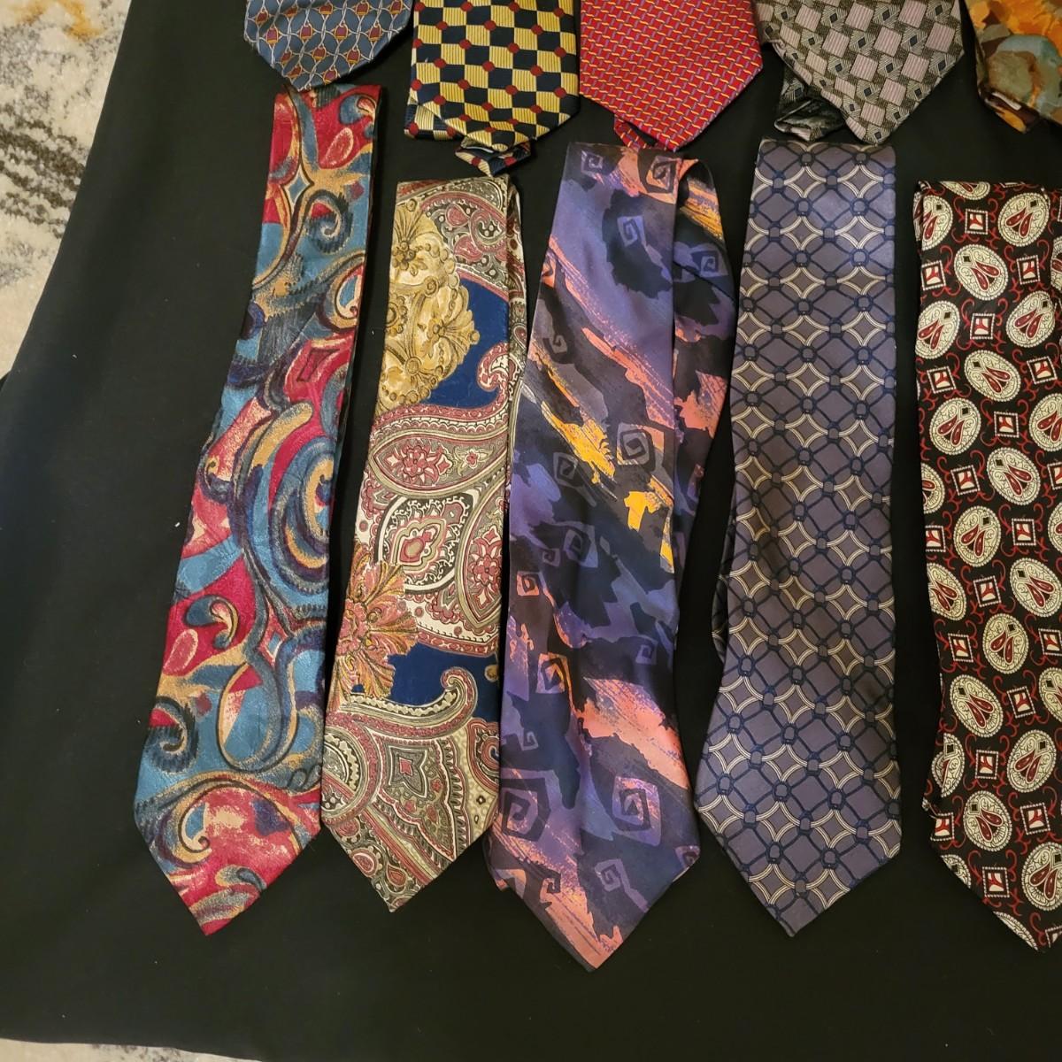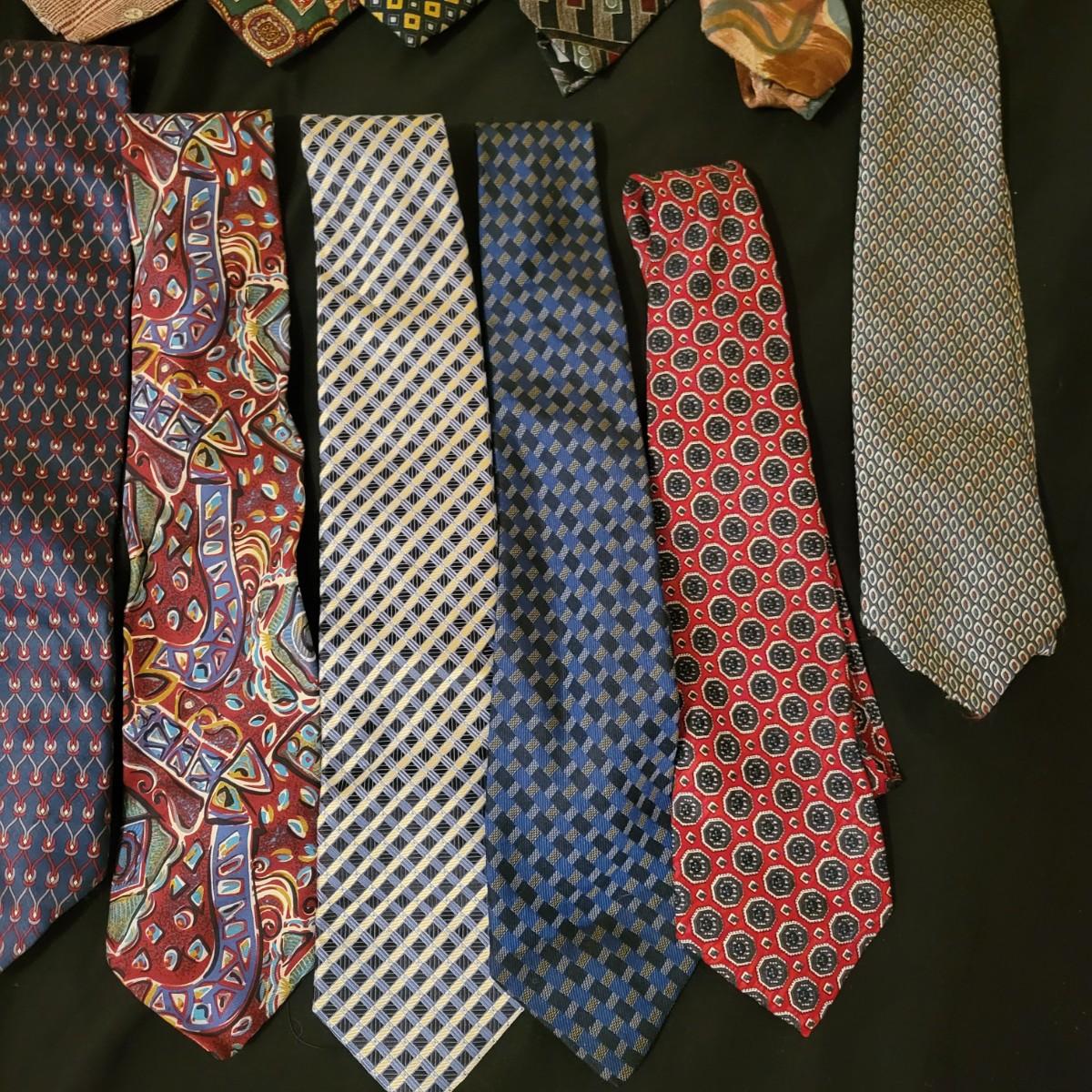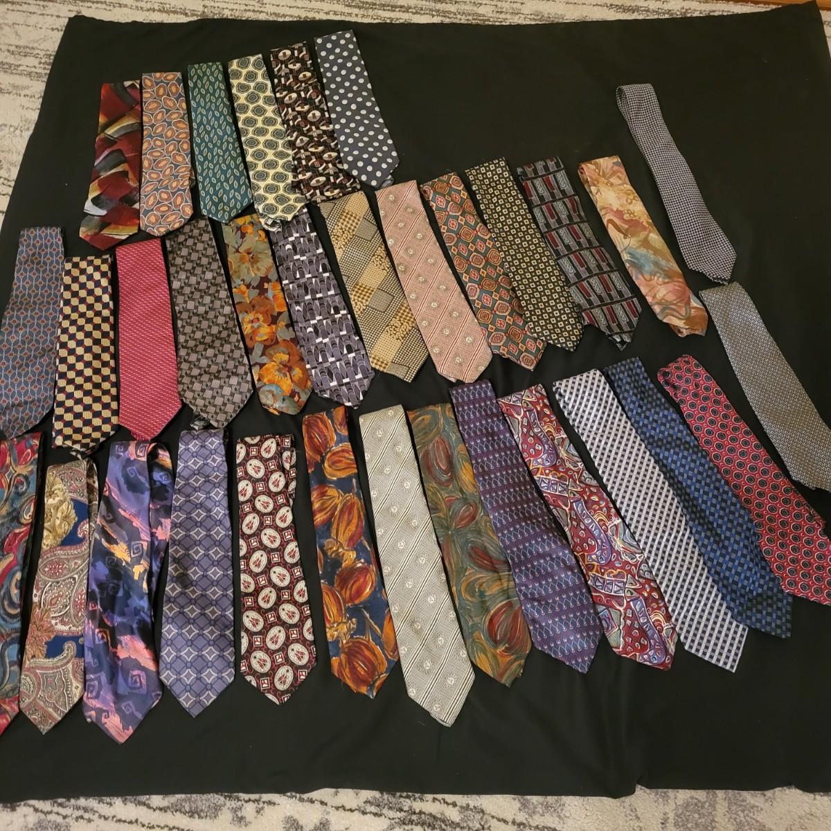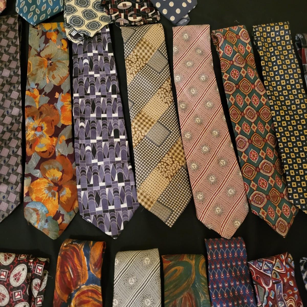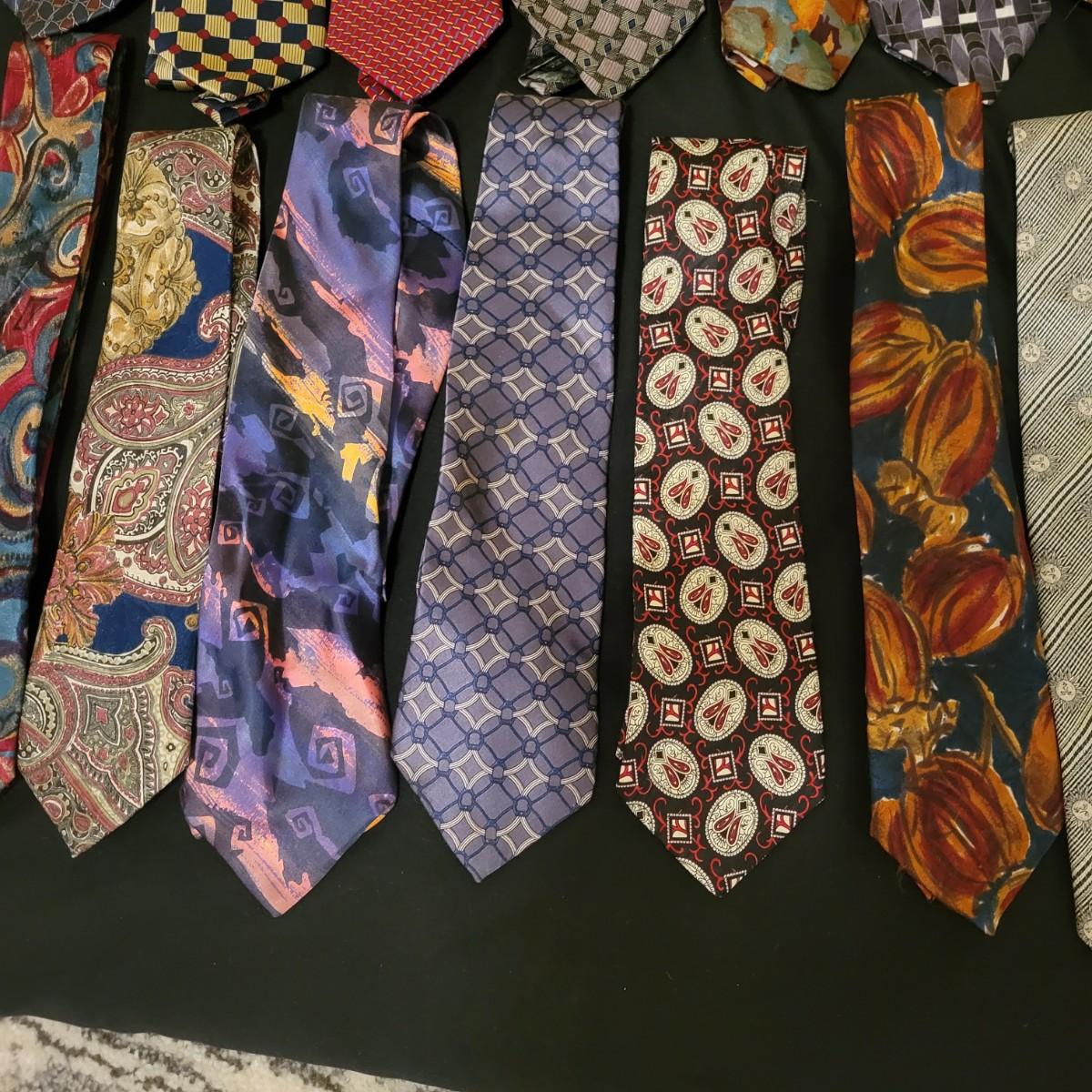 A large assortment of ties in a variety of styles from manufacturers br Conwell, Burberry, BHS, Ruffin, Salvatore and more