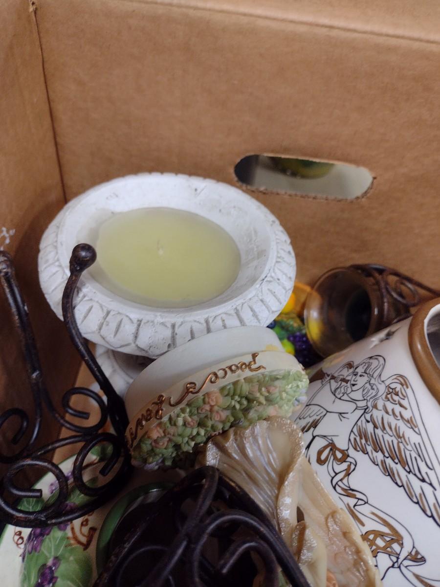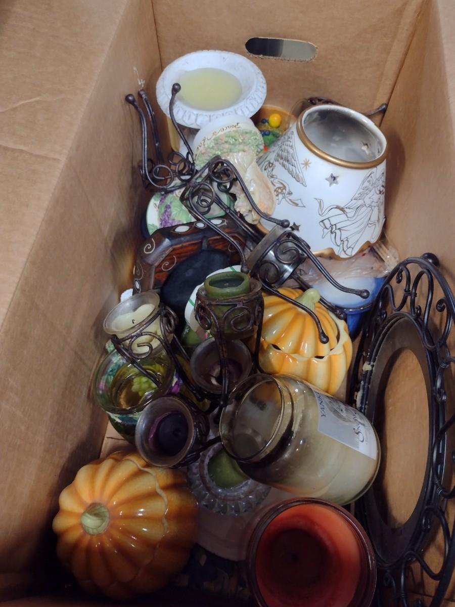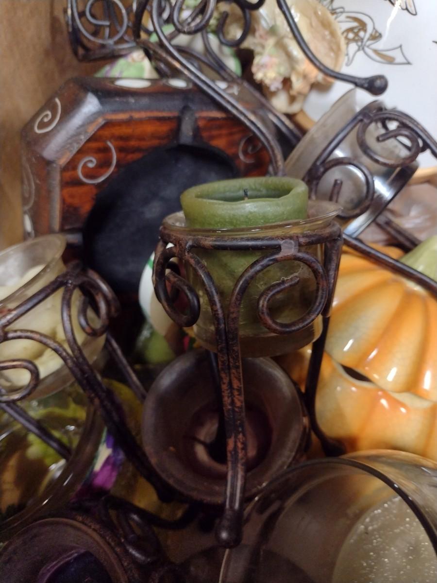Assortment of Candles and Holders. There are a couple of new Yankee Candles included- please see all pictures.
