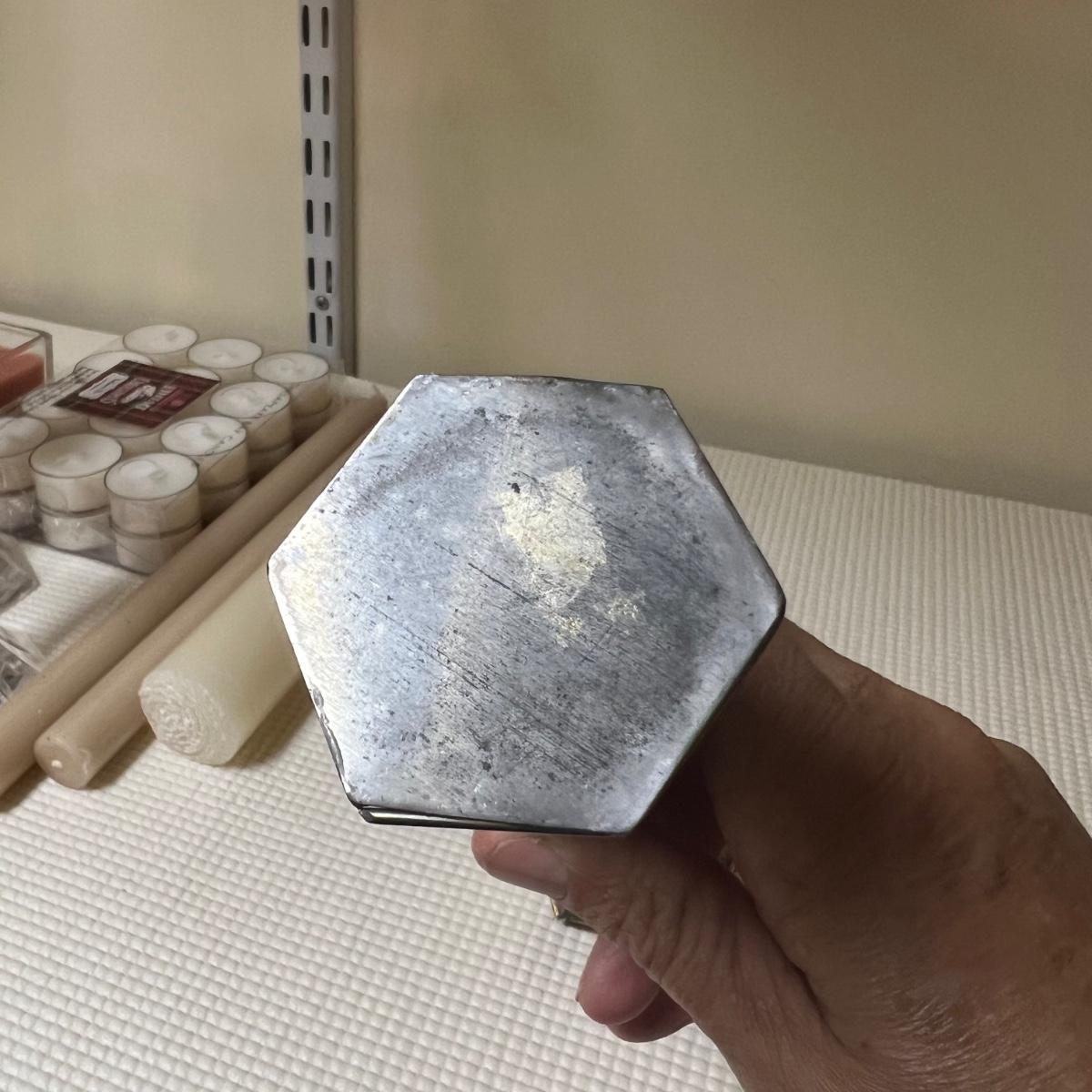 Large yellow four wick candle measures 3” x 12” x 3”H.