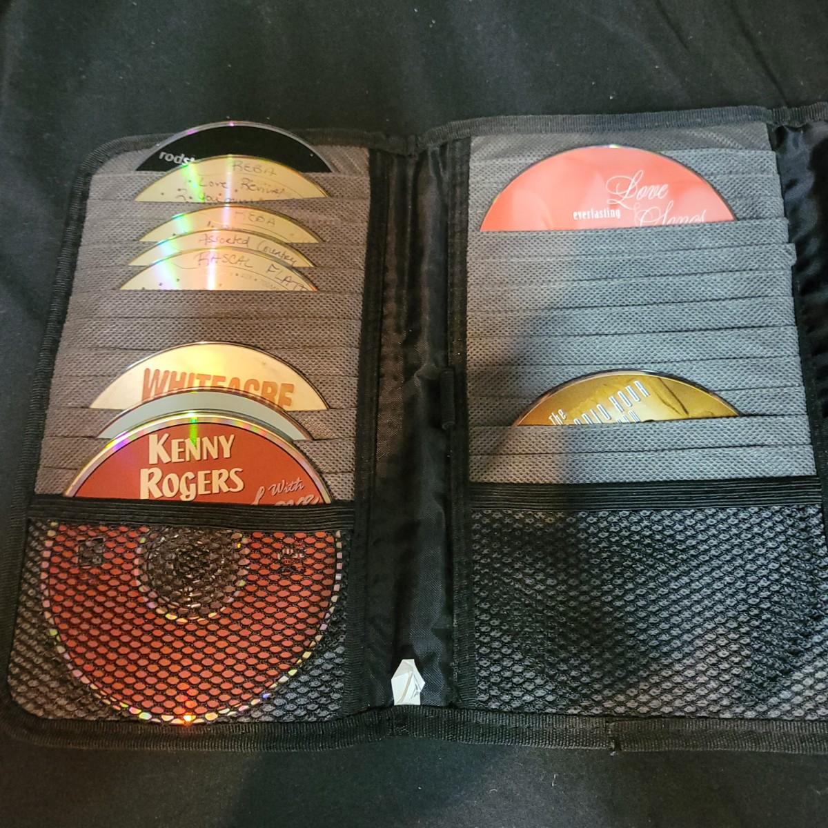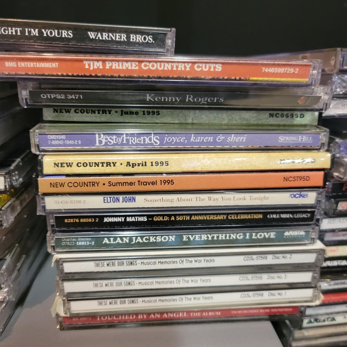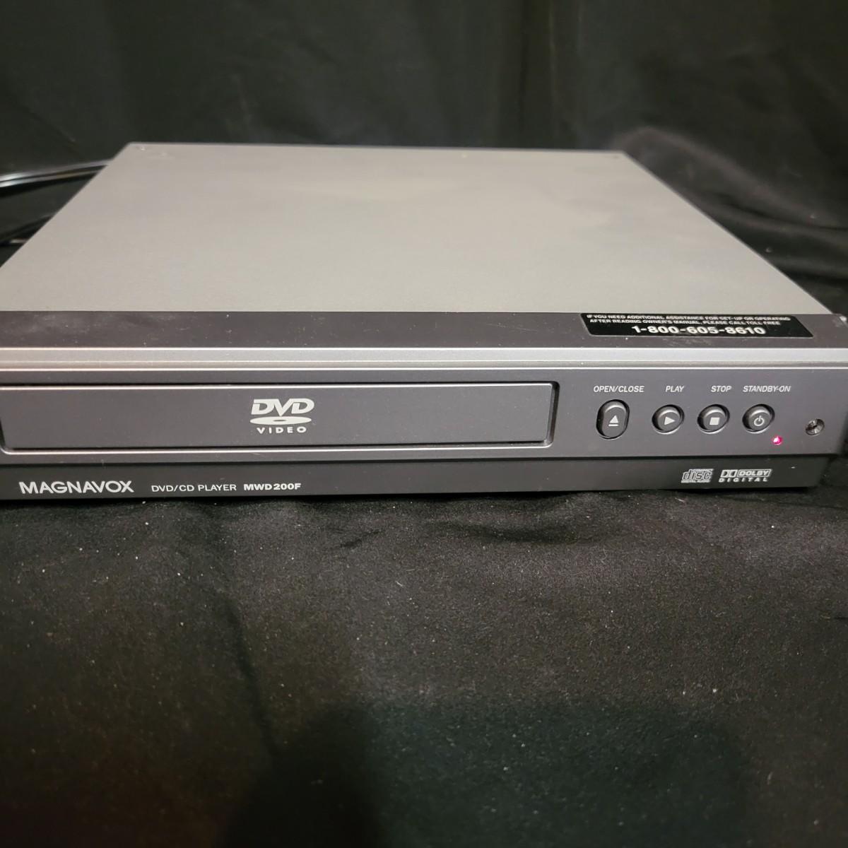 An assortment of CDs amd a Magnavod CD/DVD player. Over 60 CDs are included from artists like Alan Jackson, Alabama, George Micheal, Tom Jones and more. Also includes a Magnavox CD/DVD player, model # MWD200F, that powered on when plugged in. Local pickup only
