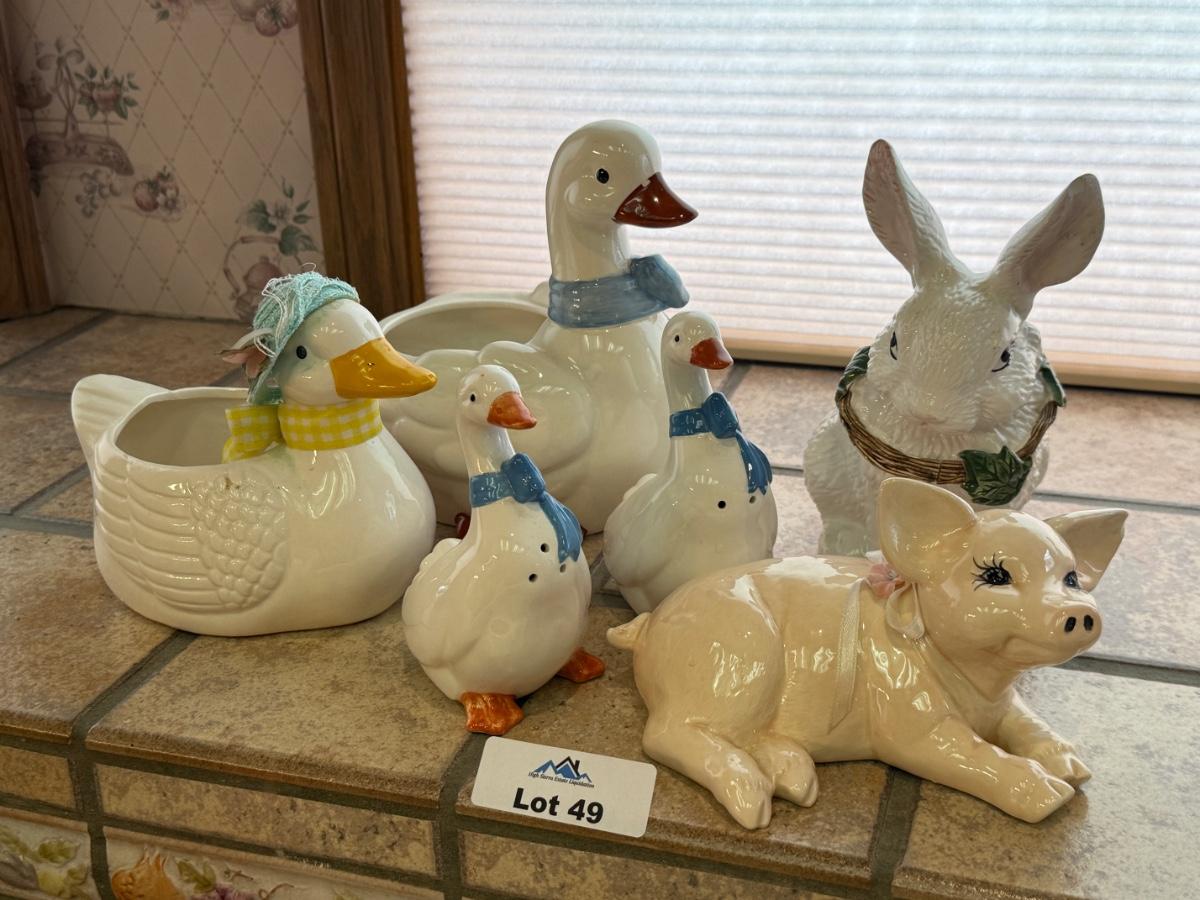 Assortment of Ceramic Animals - Geese/Rabbit/Pig/Ducks