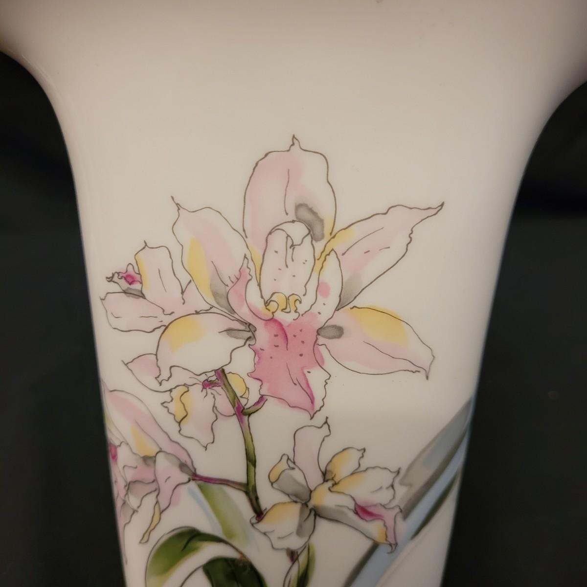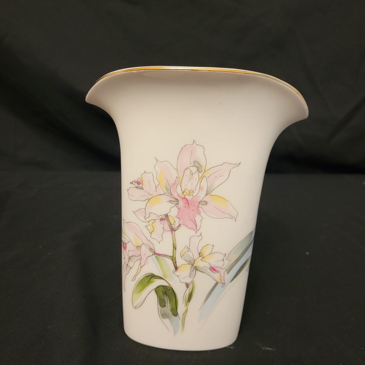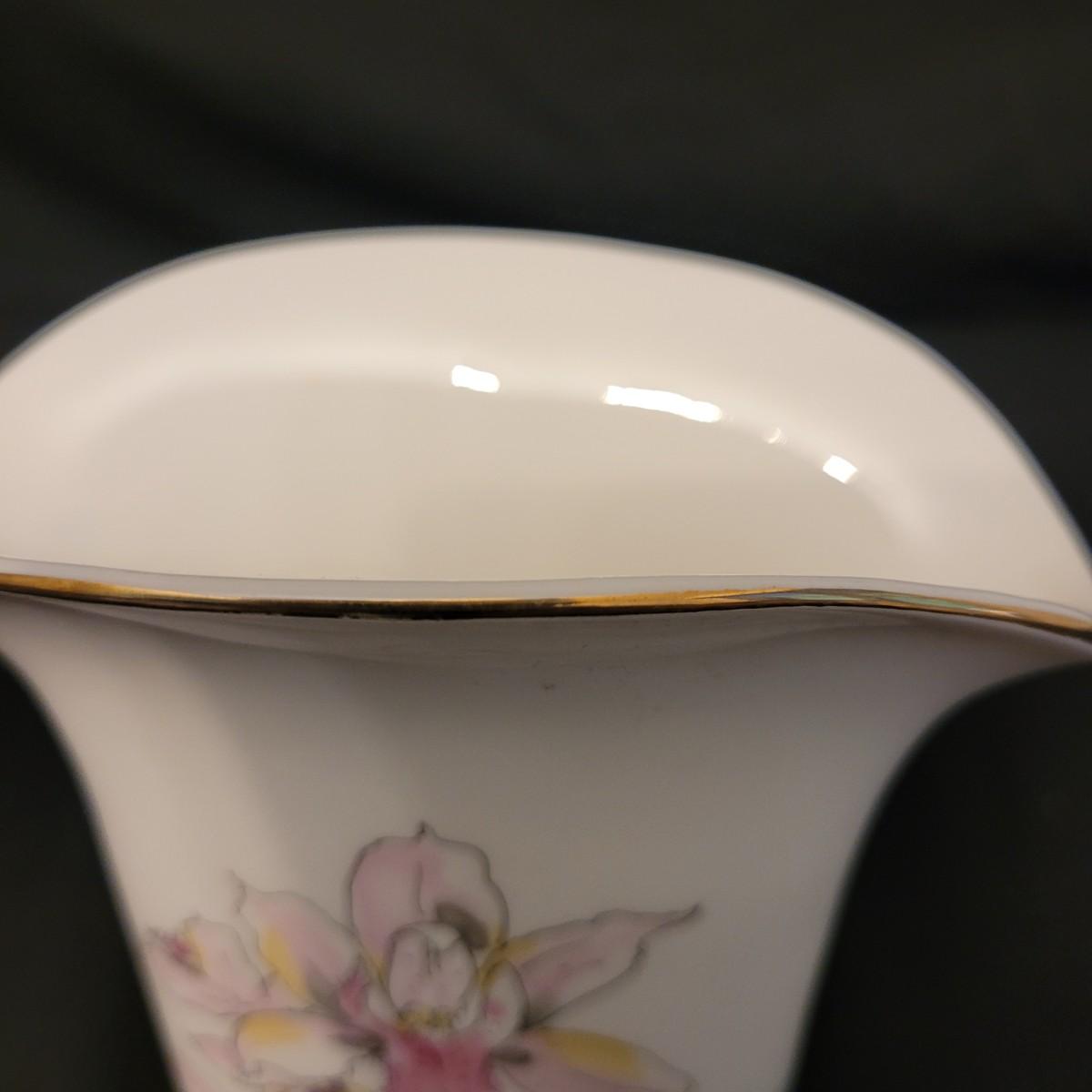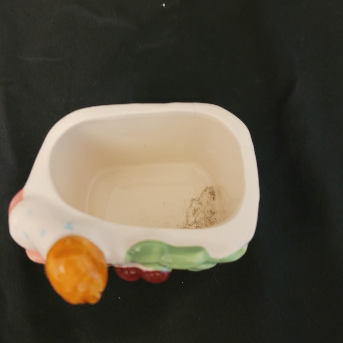 Well loved assortment of small painted ceramic vases and container. All items have accumulation of dust and grime, easily cleanable. Paint is chipped on many pieces, and one container has a crack (see photos). Tall flower vase measures approximately 5.5"W at mouth x7"H. Shipping available.
