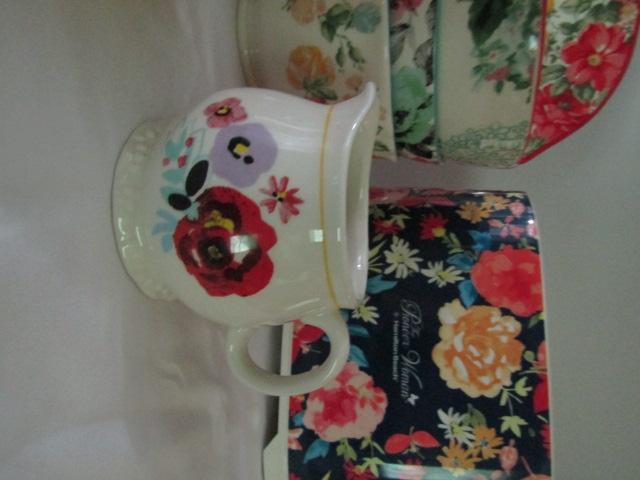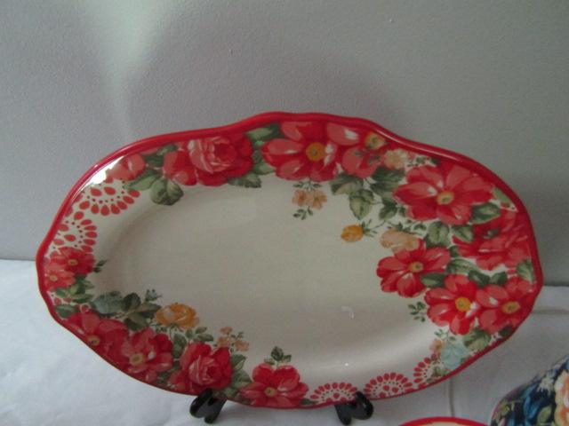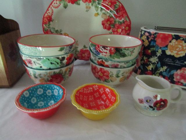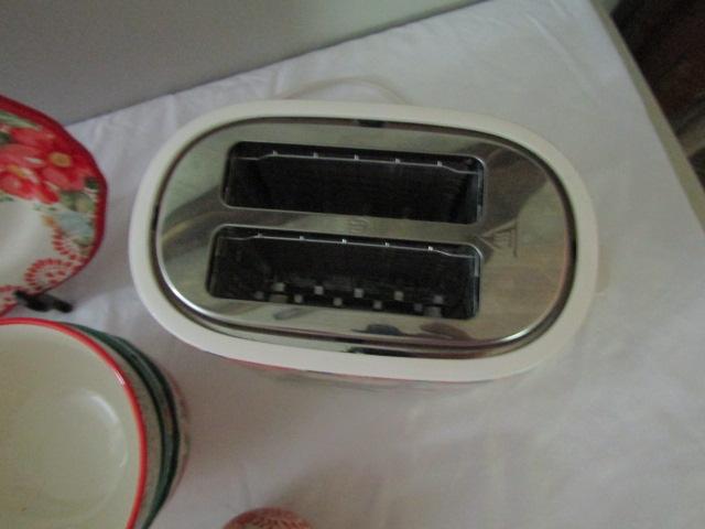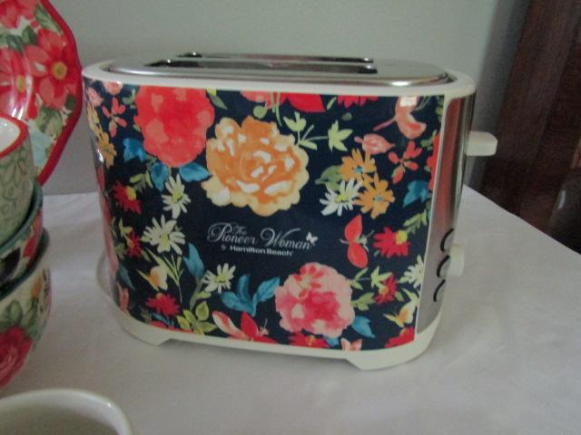 Assortment of Ceramic Pioneer Woman Kitchenware includes Toaster