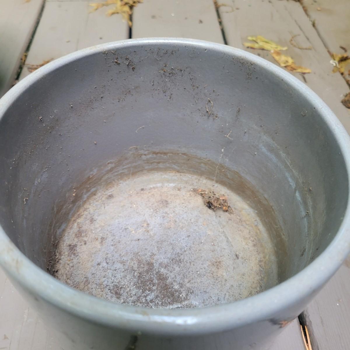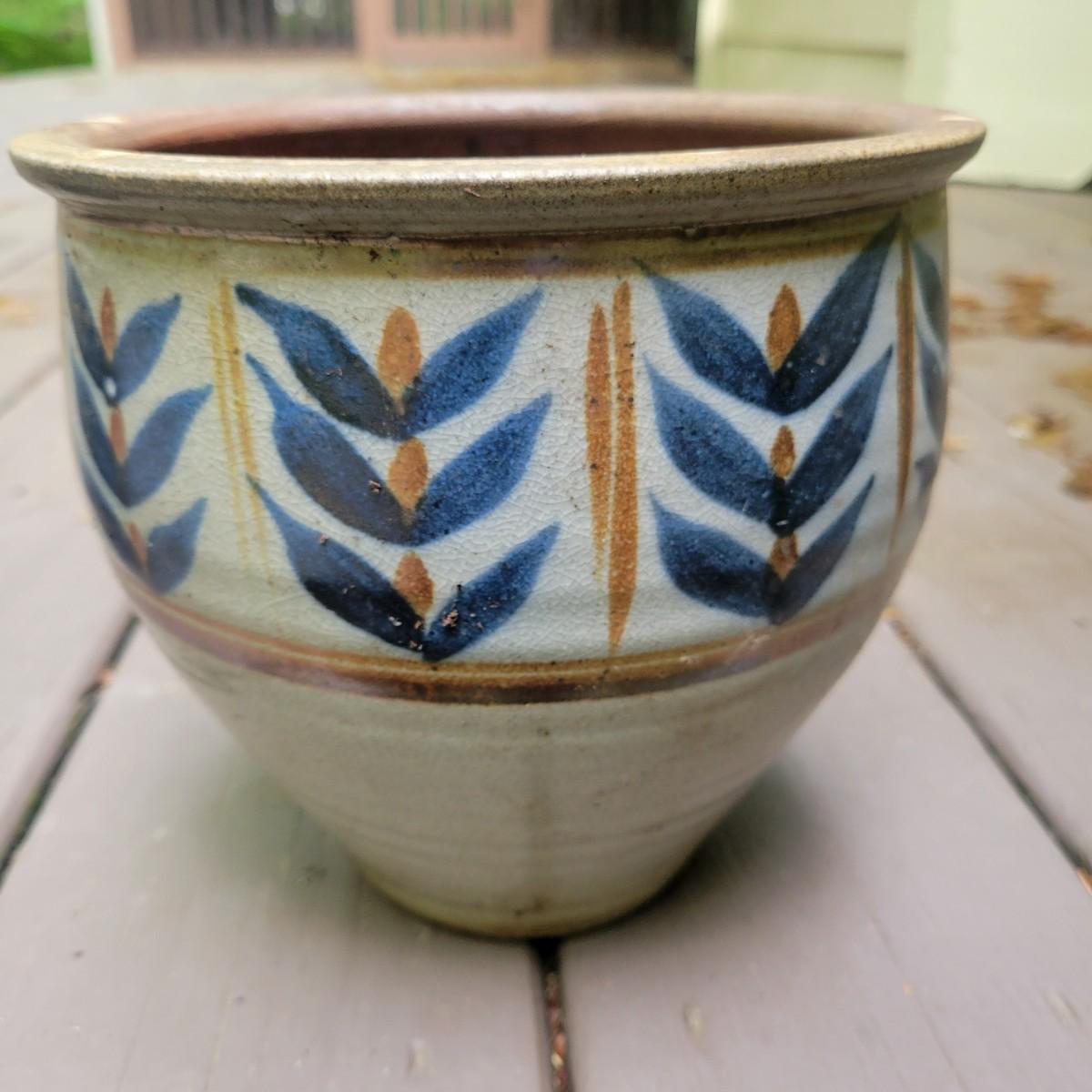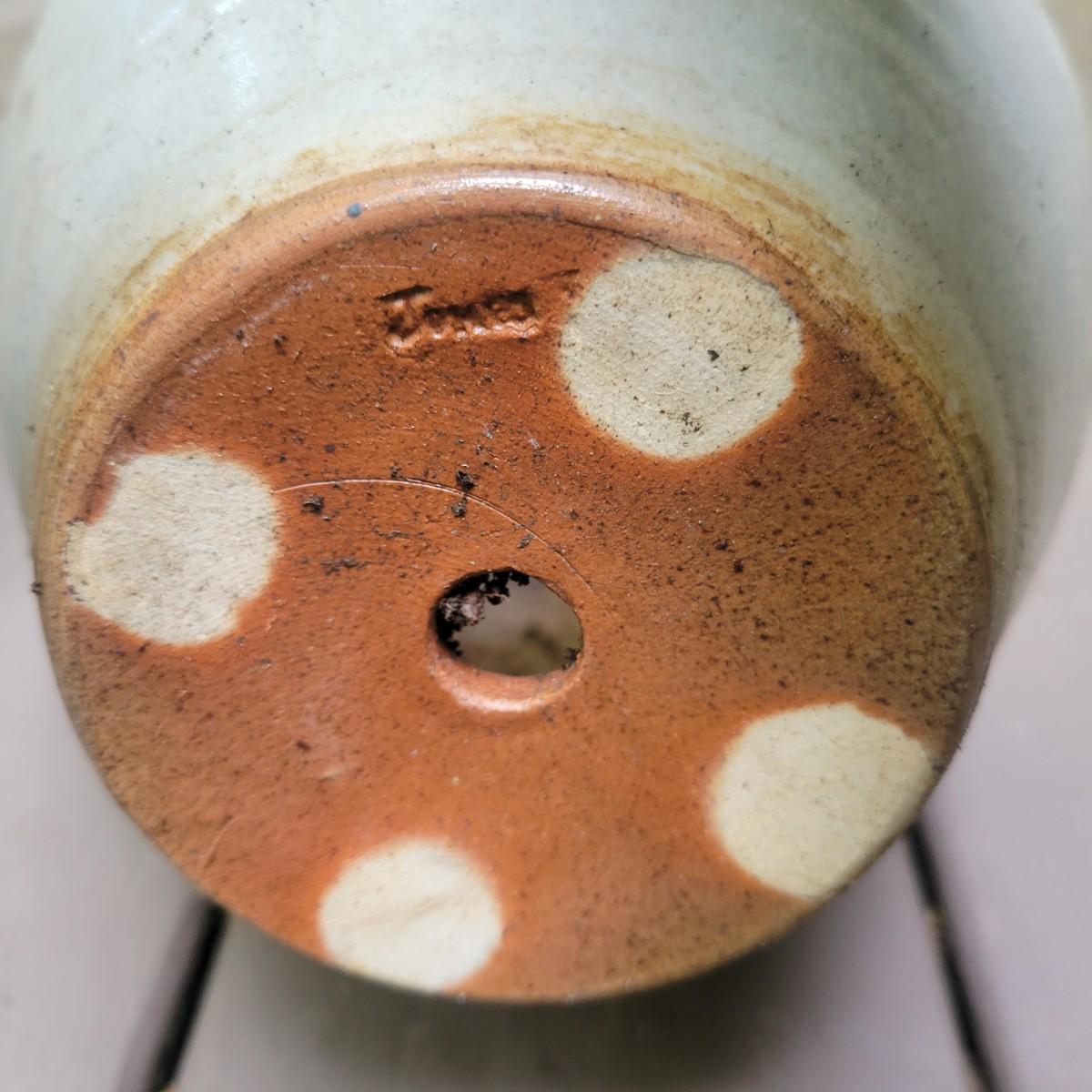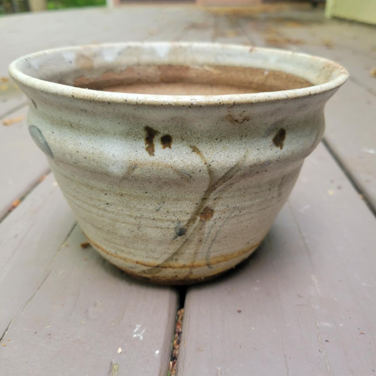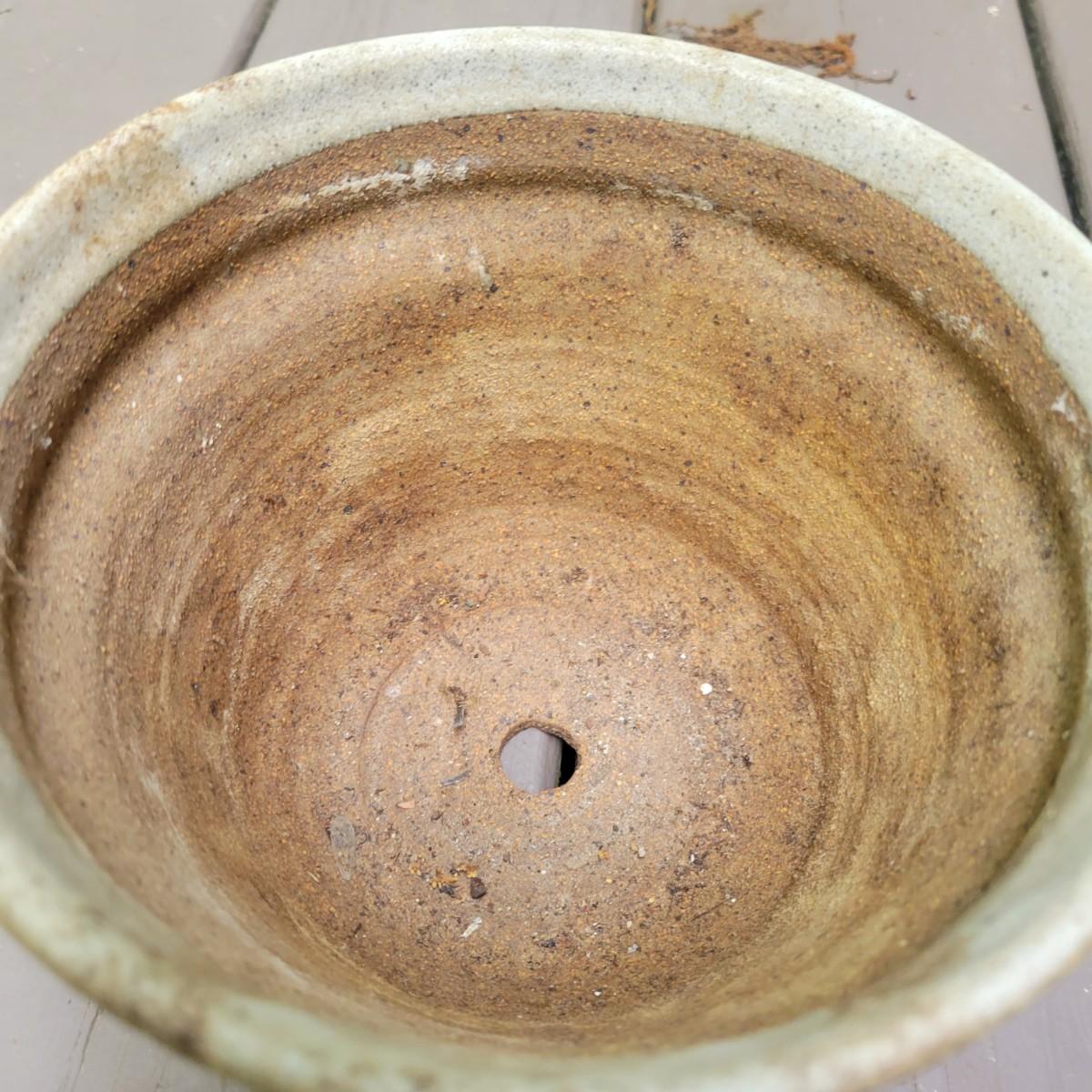 An assortment of ceramic planters in a variety of sizes. Most are signed or stamped. The largest grey planter measures approximately 8"D x 6"H. Local pickup only
