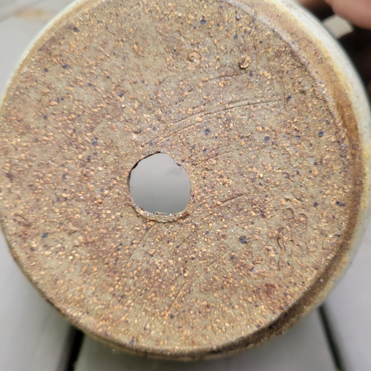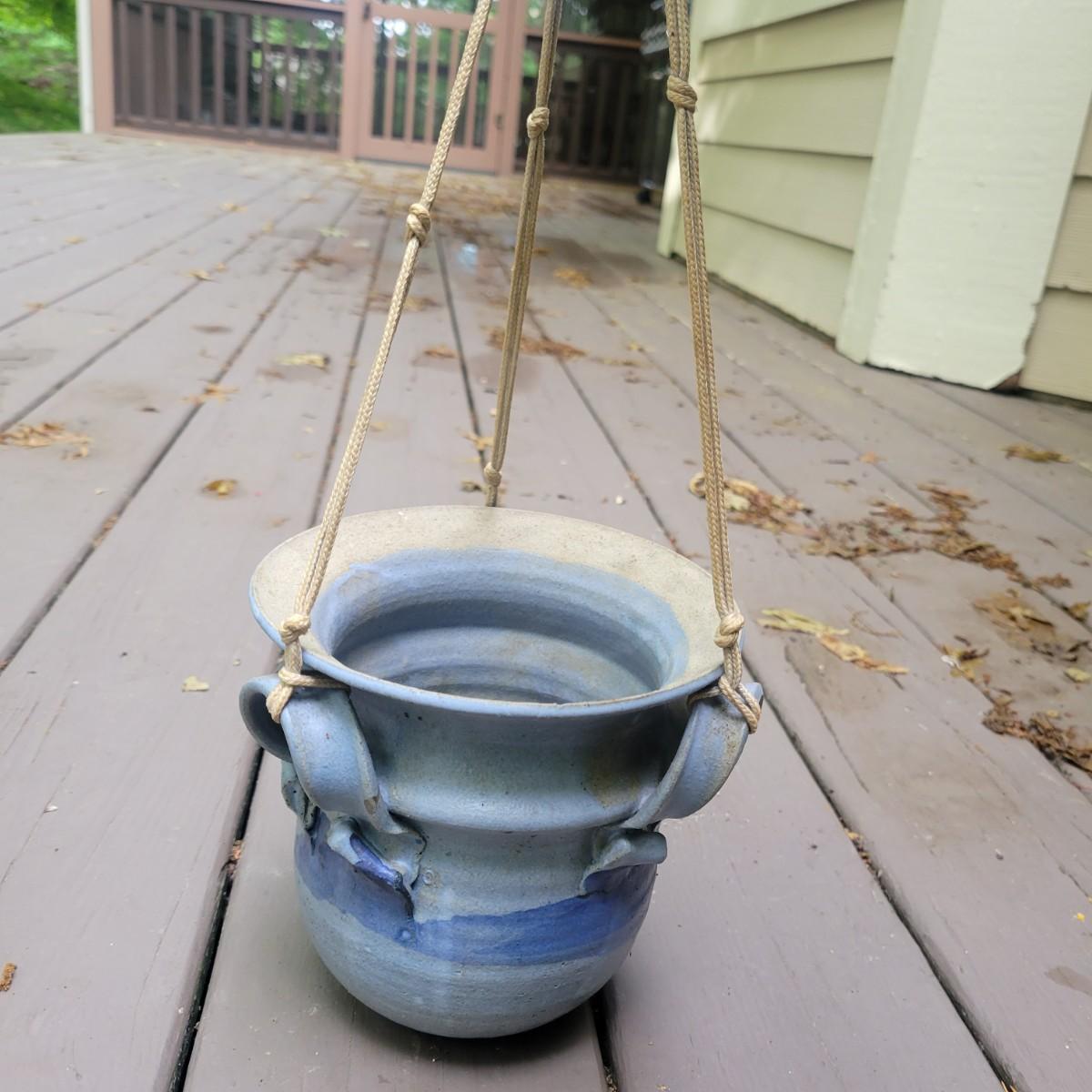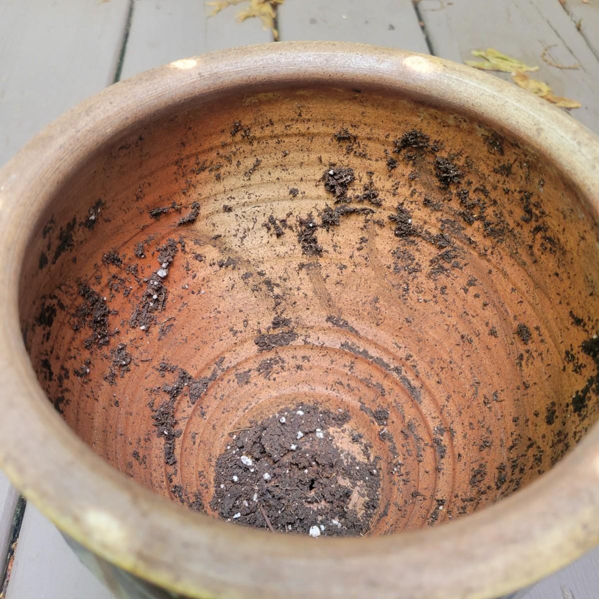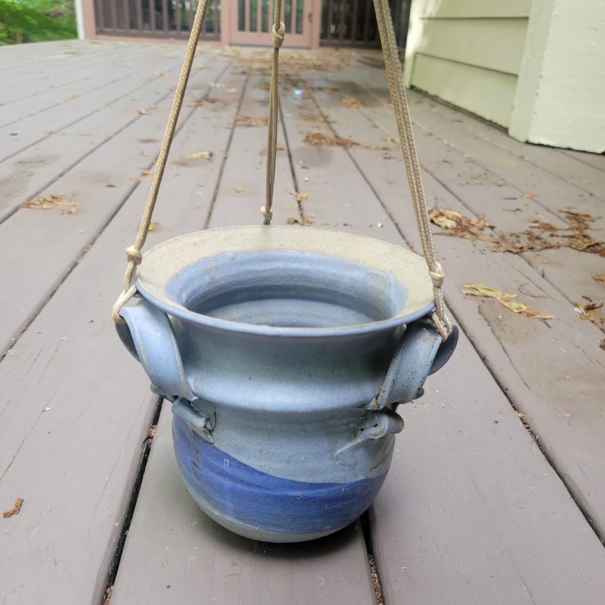 An assortment of ceramic planters in a variety of sizes. Most are signed or stamped. The largest grey planter measures approximately 8"D x 6"H. Local pickup only