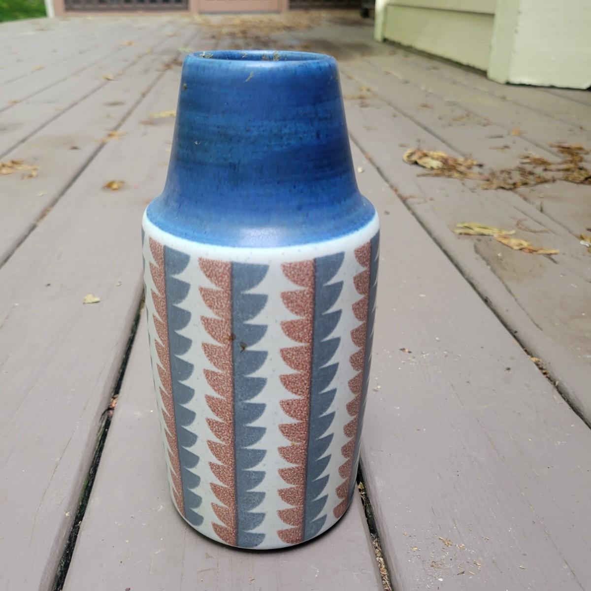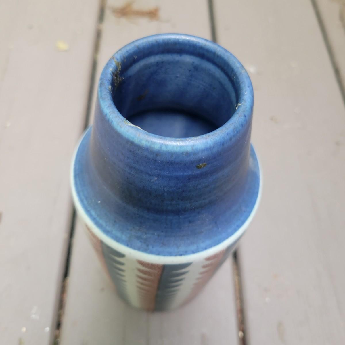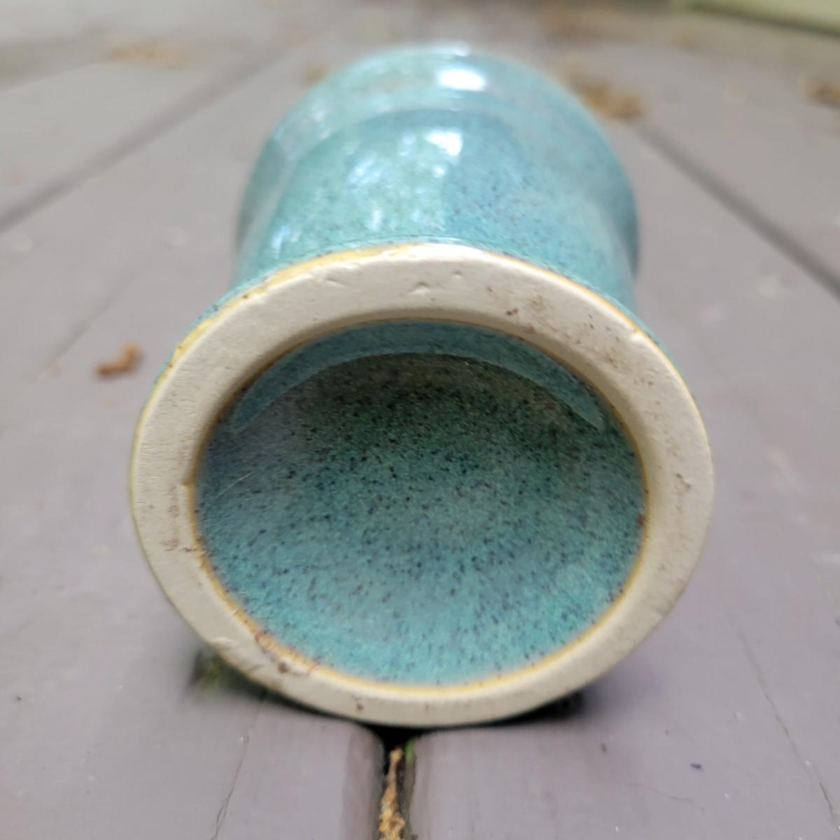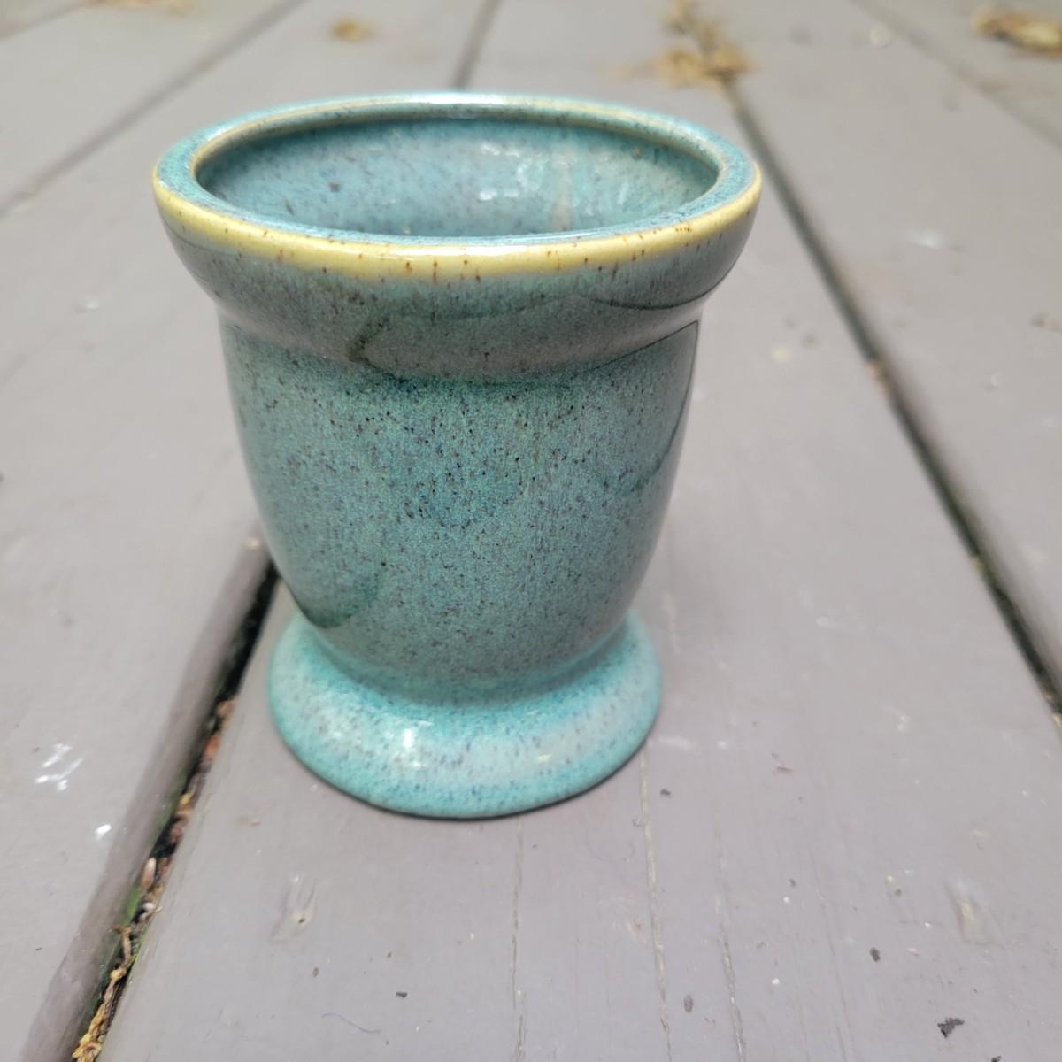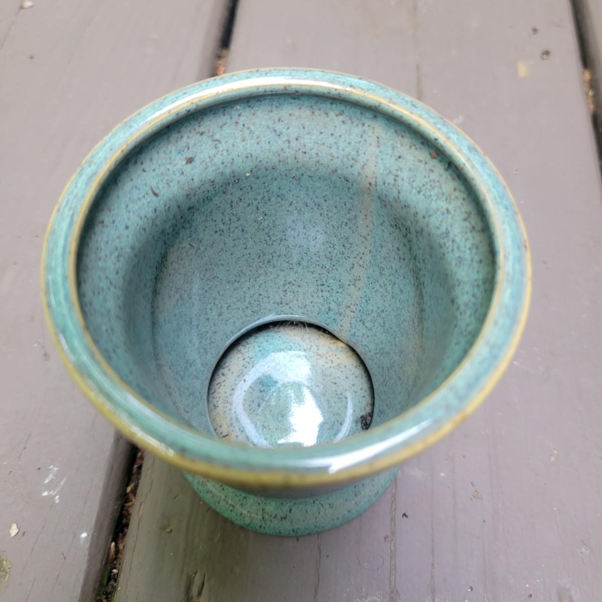 An assortment of ceramic planters in a variety of sizes. Most are signed or stamped. The largest grey planter measures approximately 8"D x 6"H. Local pickup only