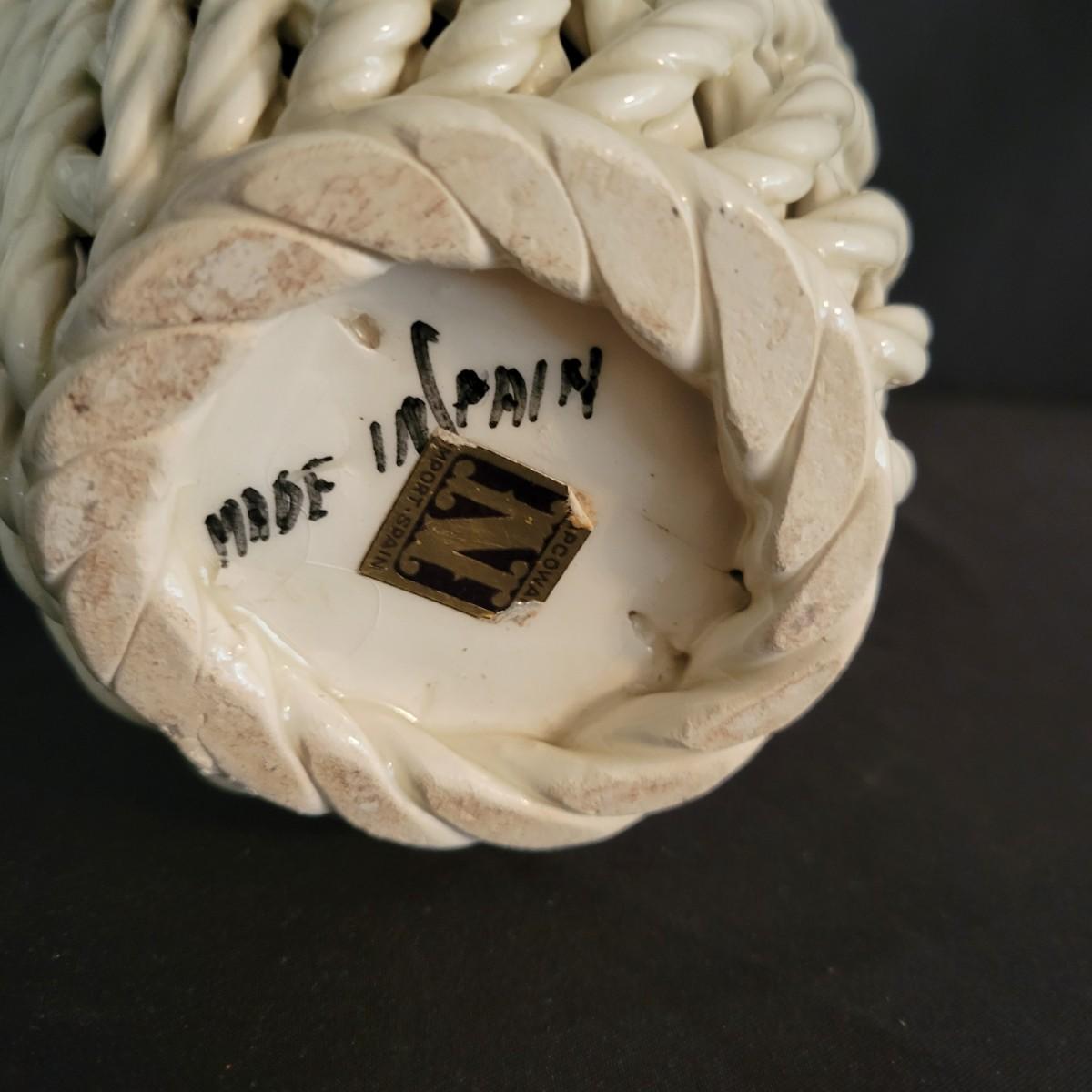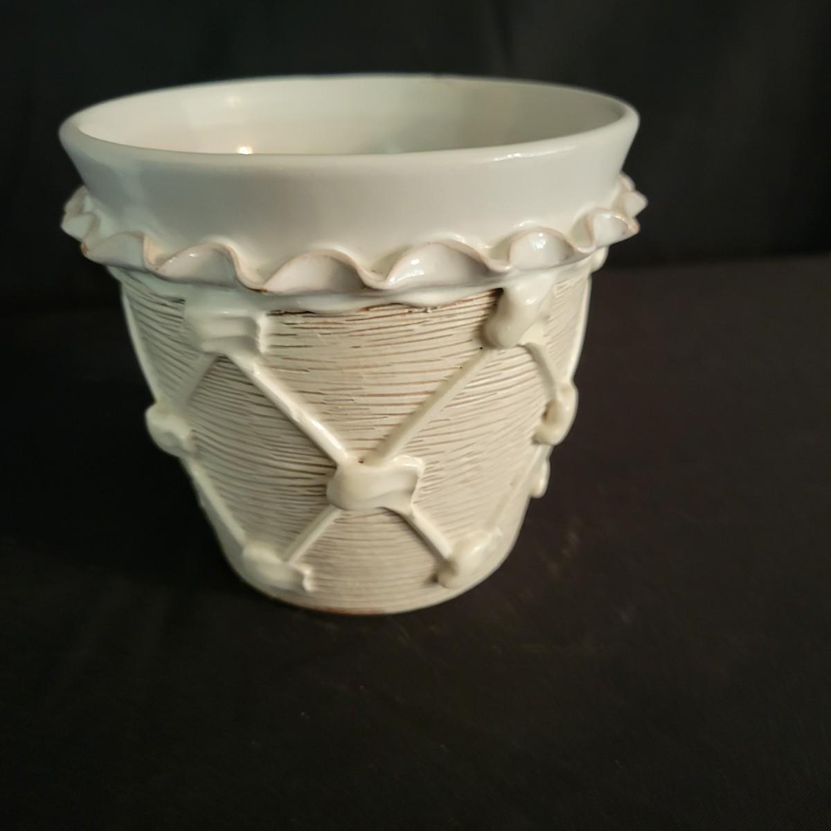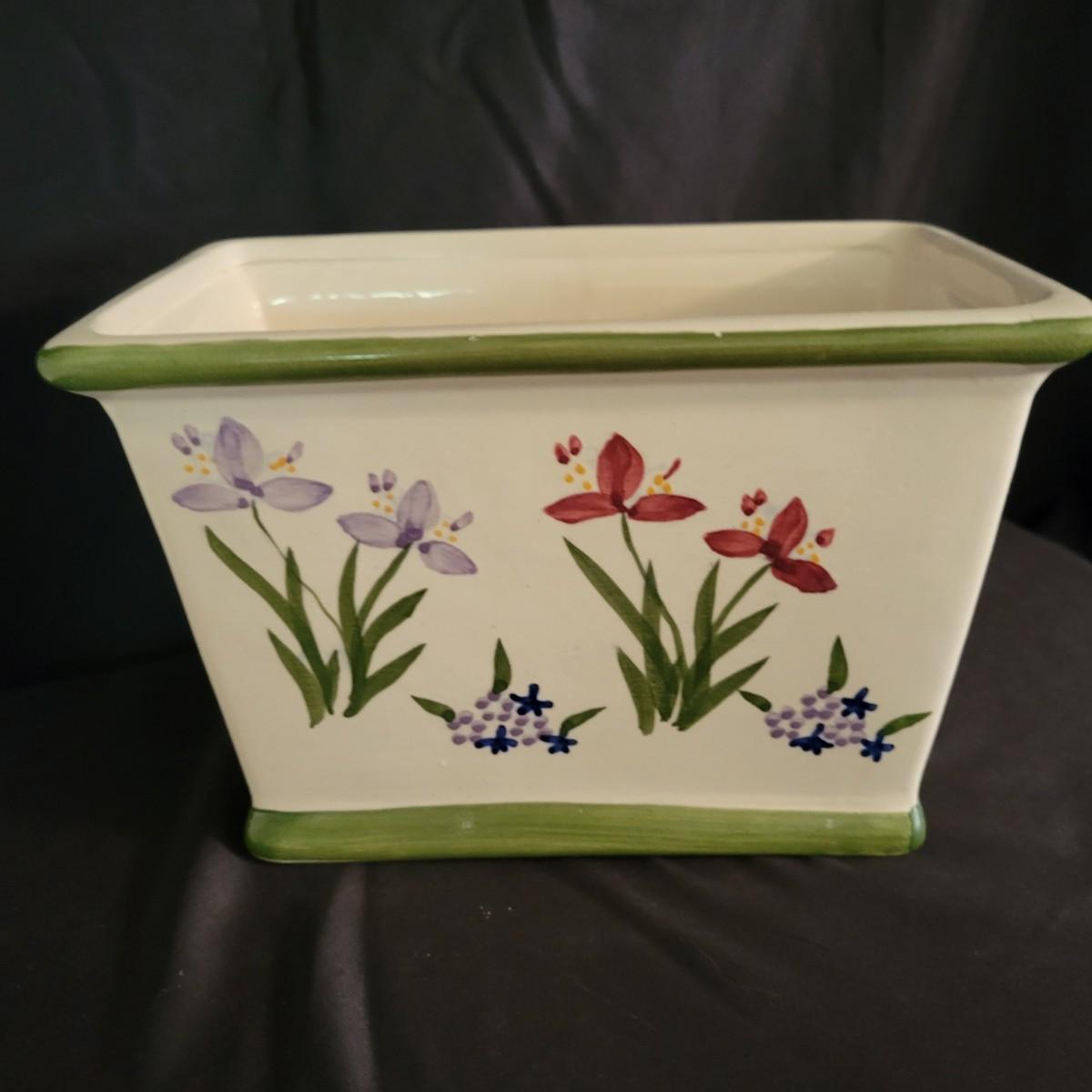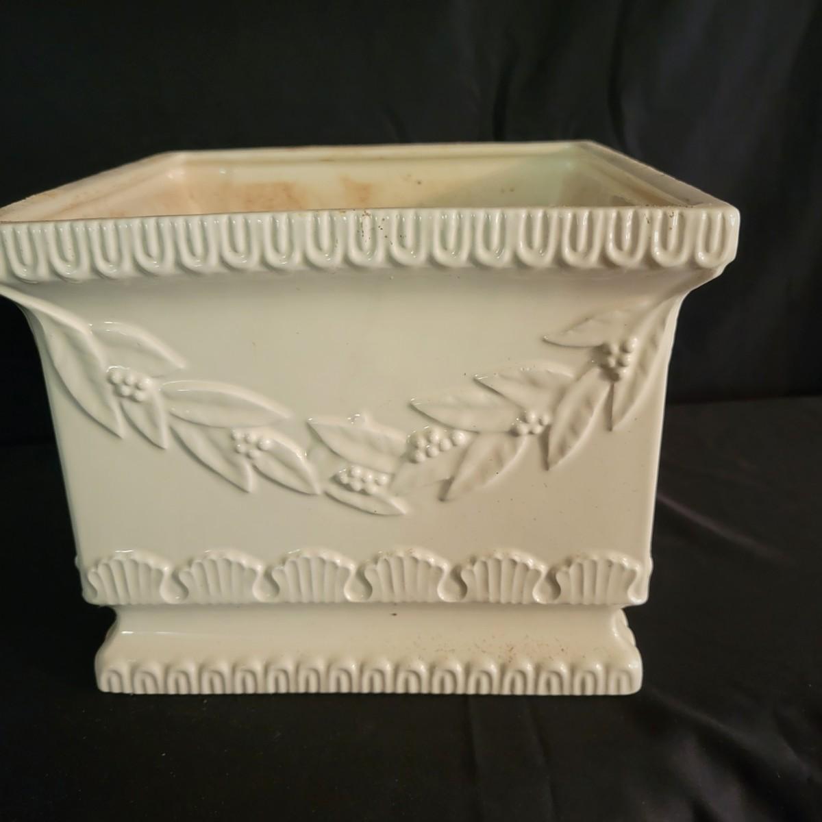 An assortment of ceramic pots in a variety of shapes and sizes. Some pieces are marked with their country of origin ranging from Japan to Portugal. The mister has a brass head. Large white pot measures approximately 9" x 9" x 7.5"H. Local pickup only