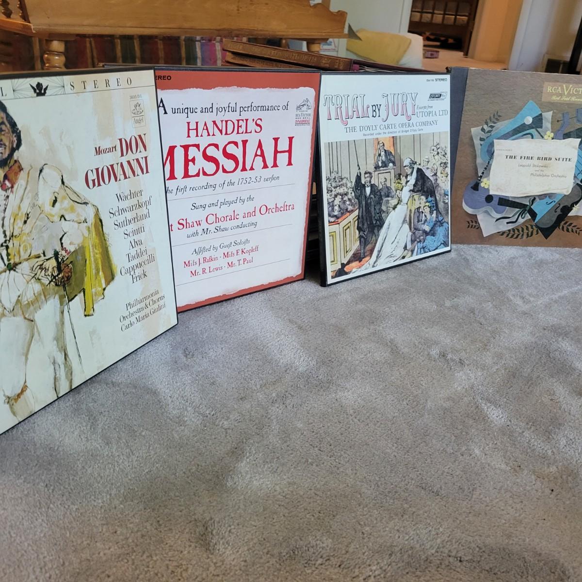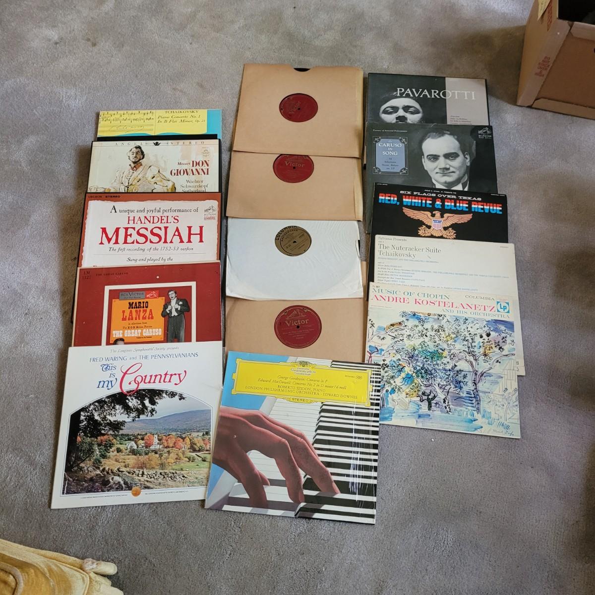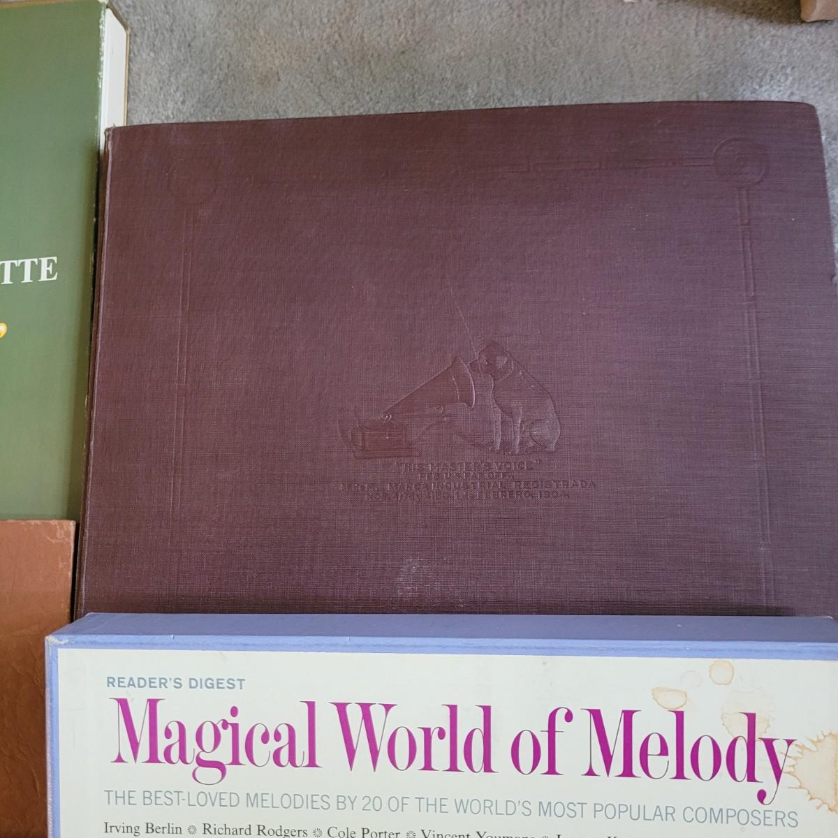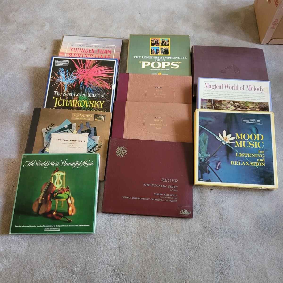 A large assortment of classical music vinyl. Lot includes numerous box sets of 10 albums. Some groups are in leather bound album covers. Artists include Tchaikovsky, Gershwin, Wagner and more. There are over 100 albums in this collection. Albums that were inspected are in good condition. Shipping available. Shipping can be costly please call UPS store at 828-252-6930 for quote