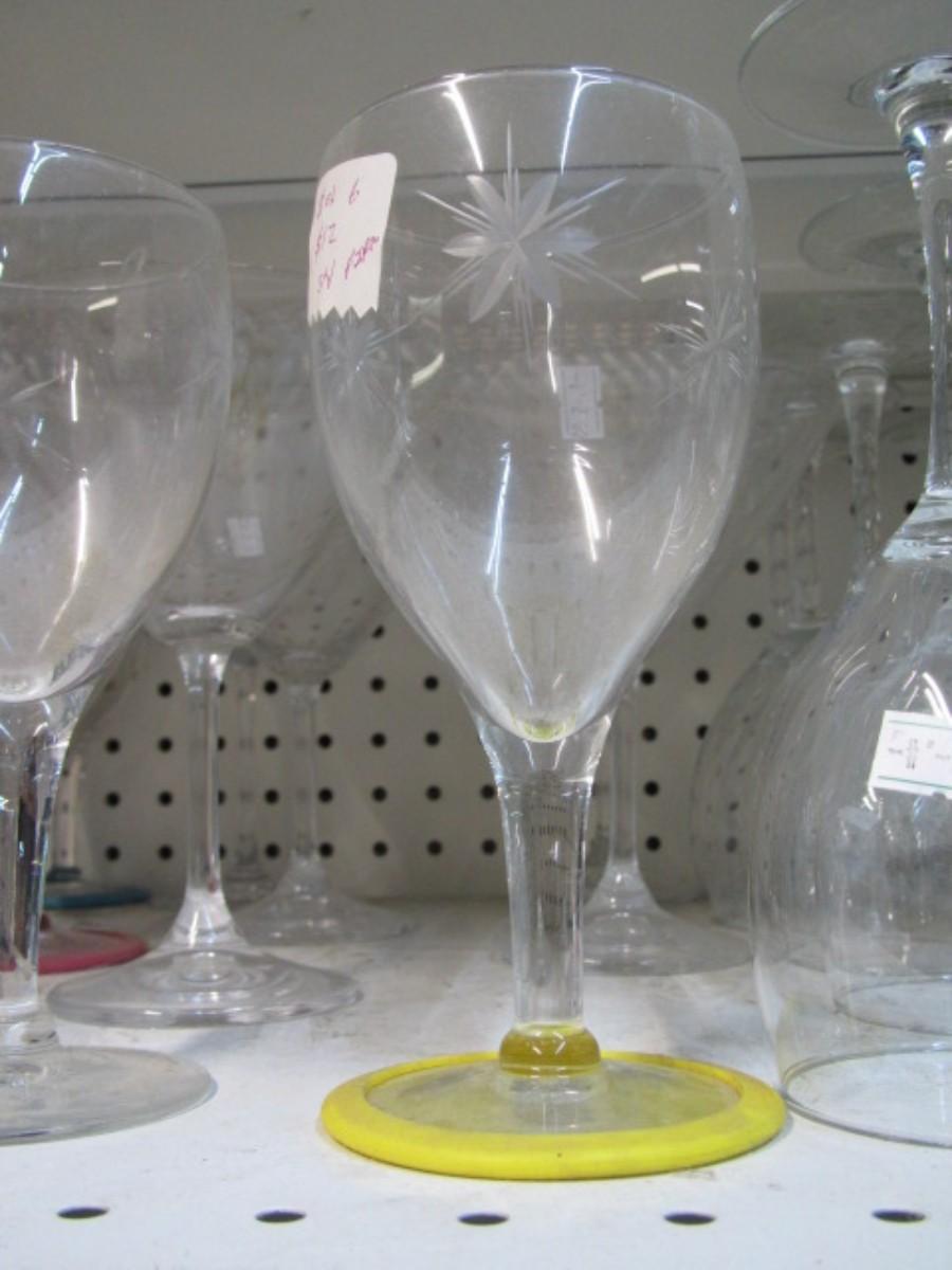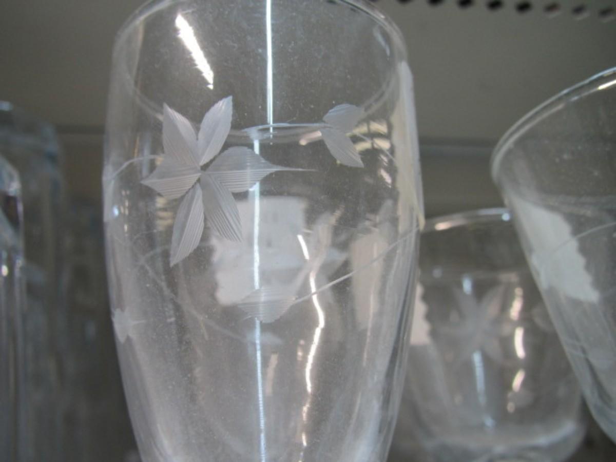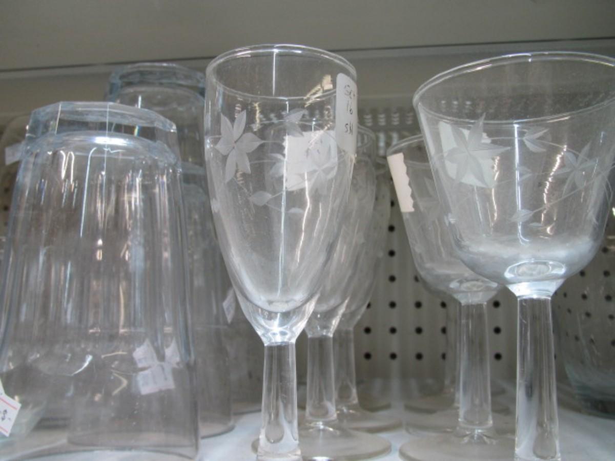 Assortment Of Clear Glass Drinking Glasses Some Etched