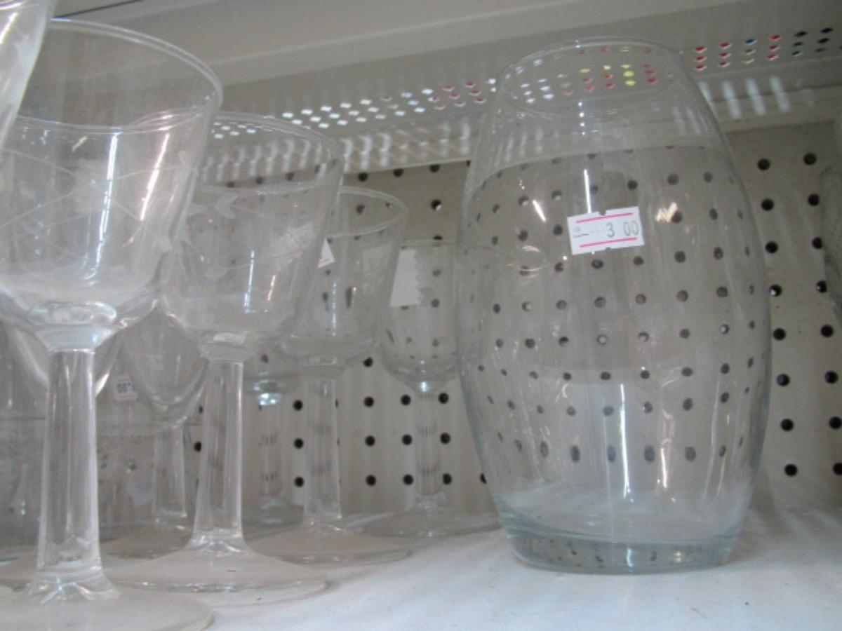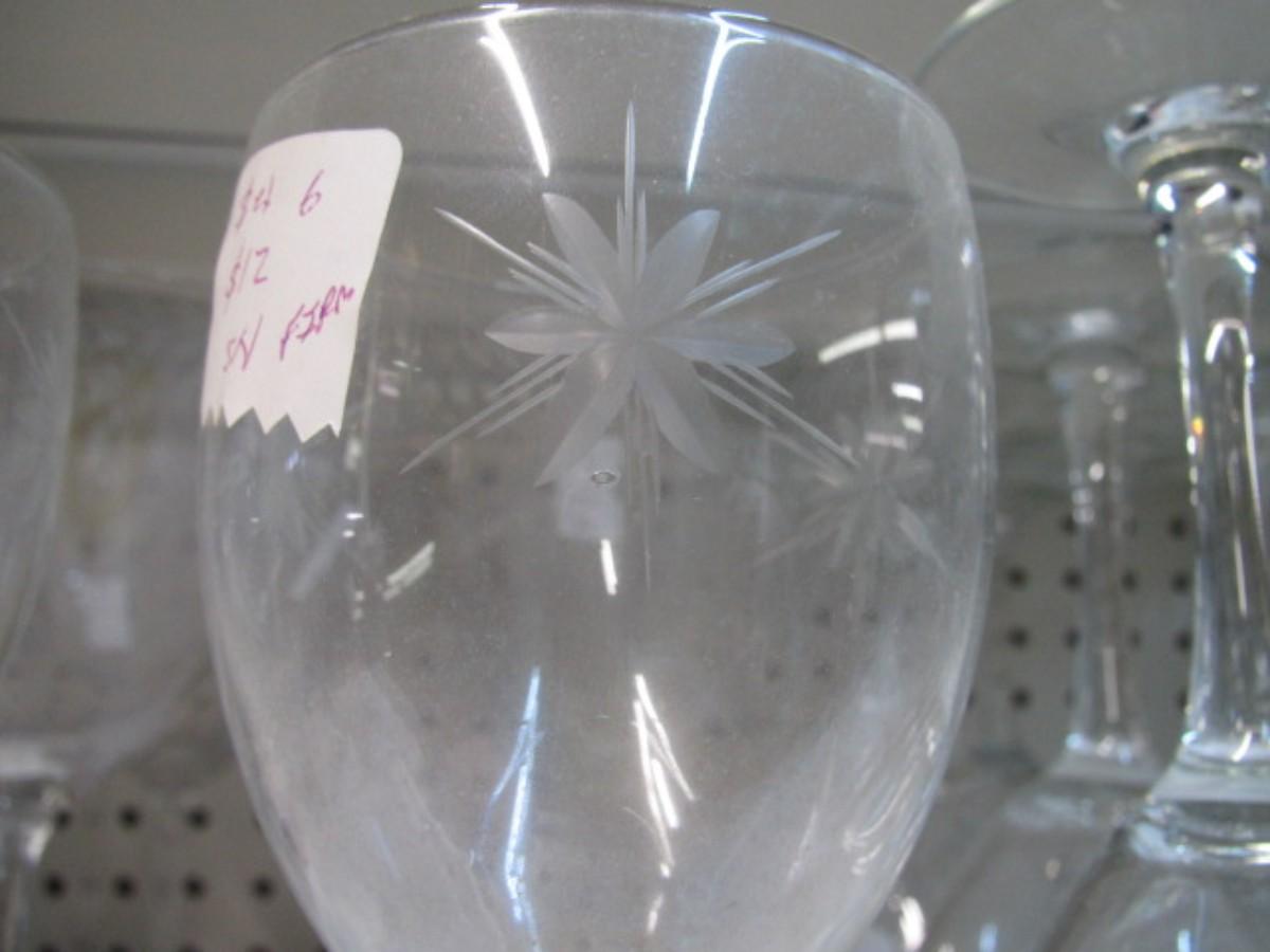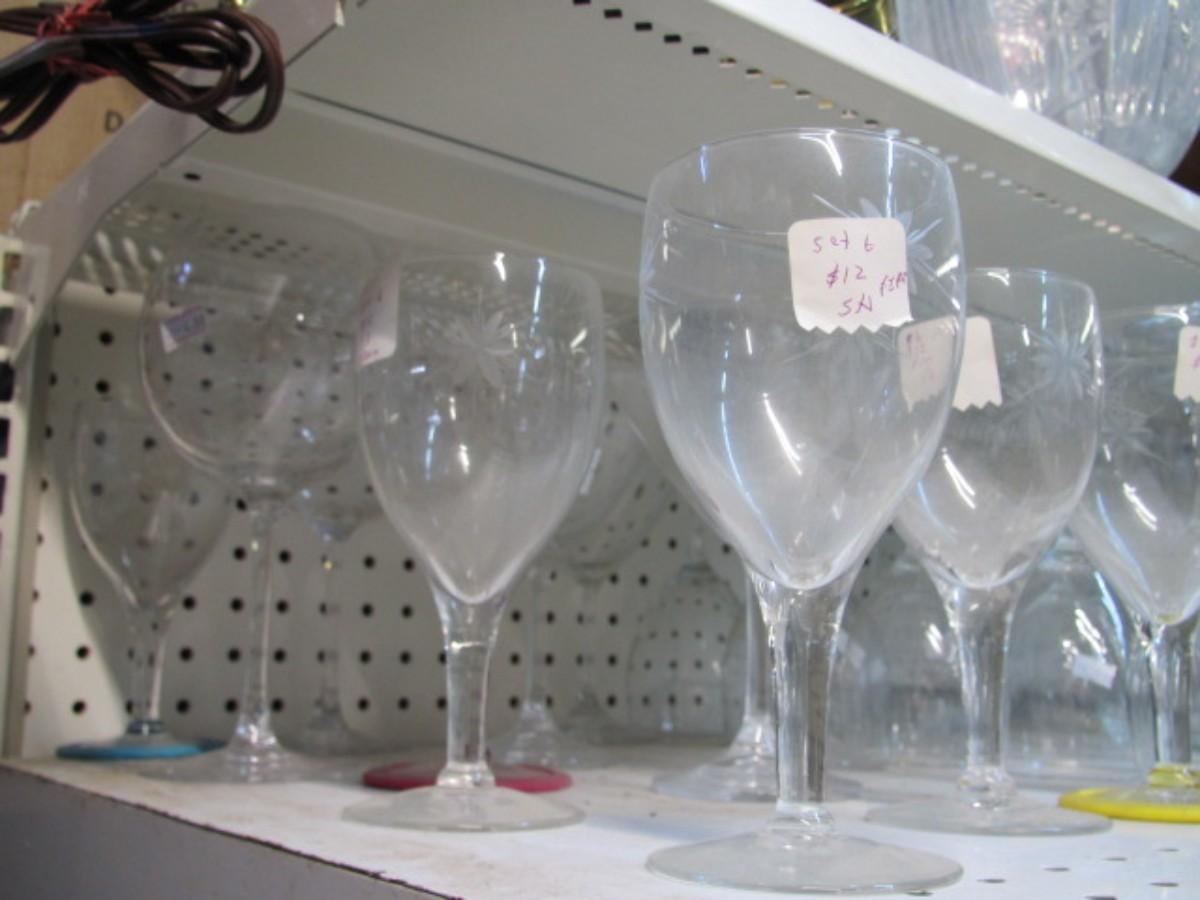 Assortment Of Clear Glass Drinking Glasses Some Etched