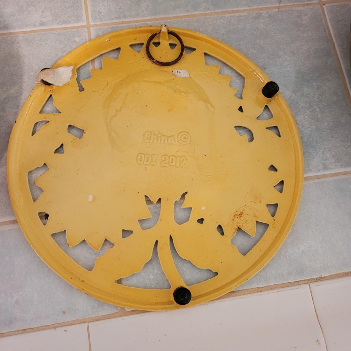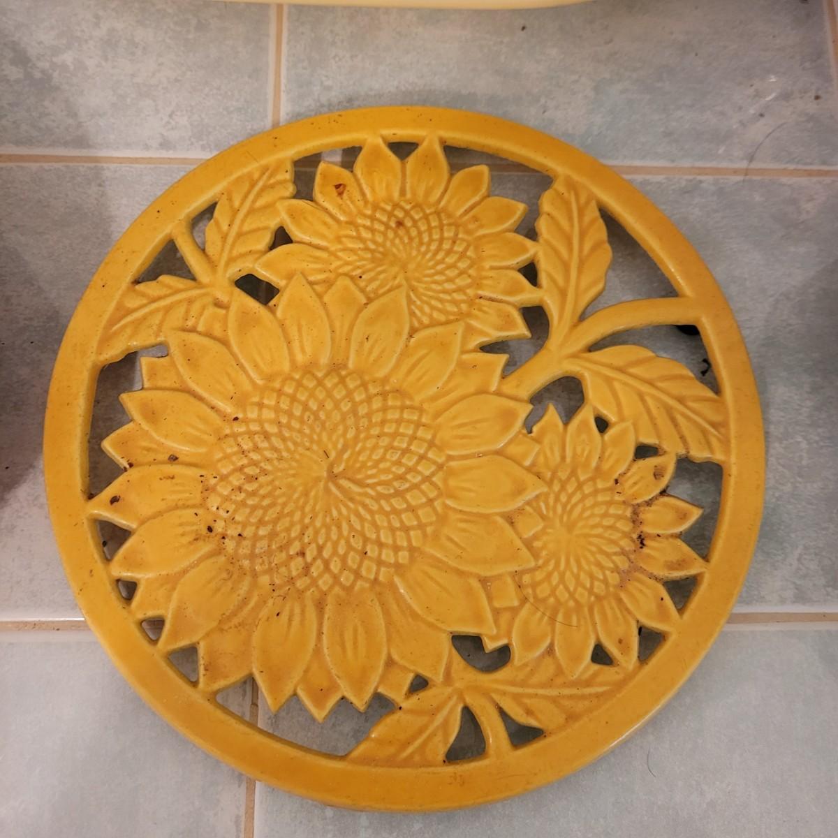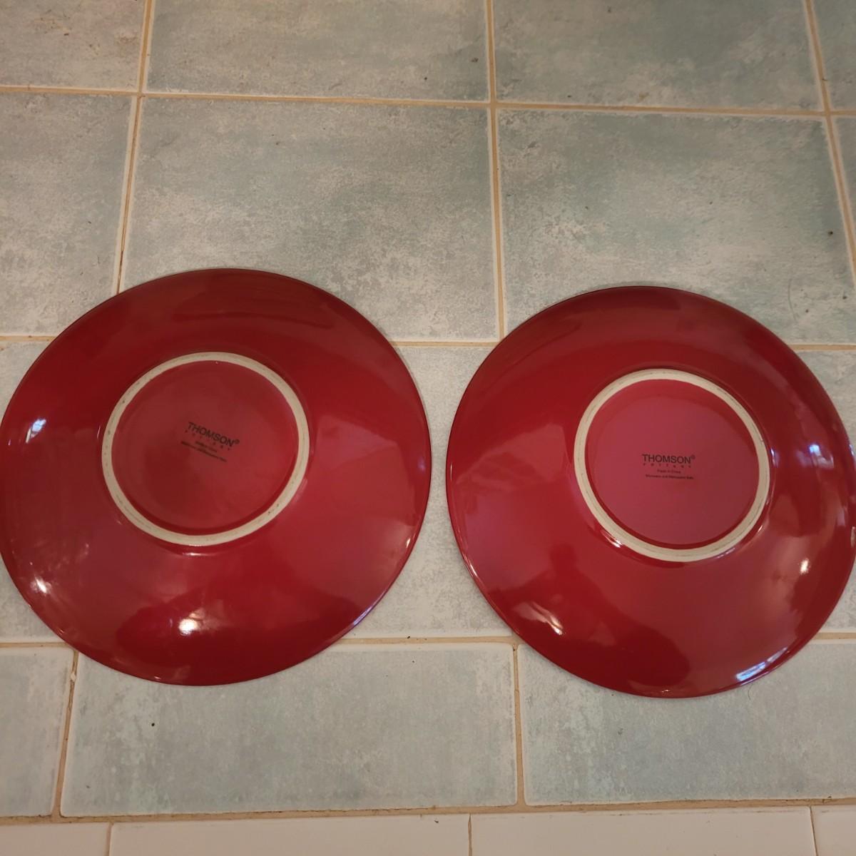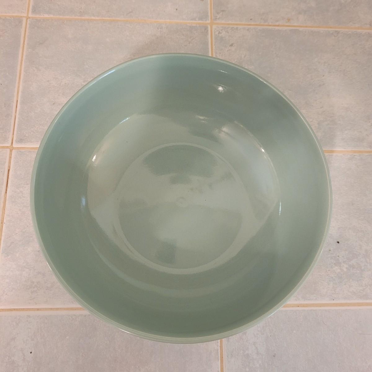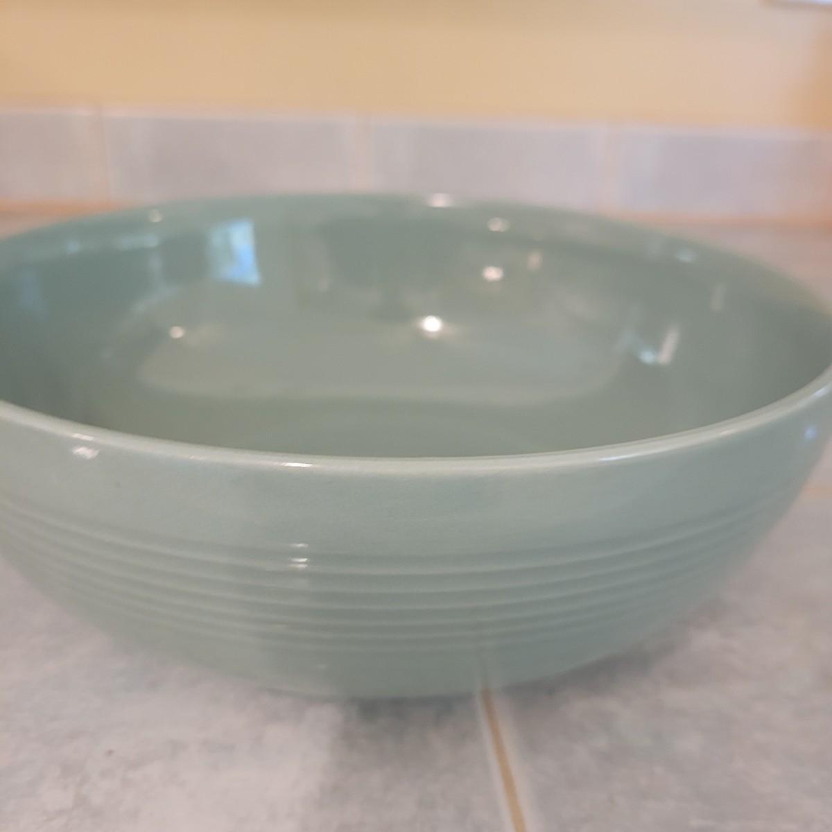 A colorful assortment of serving dishes, small plates, bowls, mug and trivet. All items in excellent condition, need to be cleaned. Large Gibson bowl measures approximately 9"DIA.