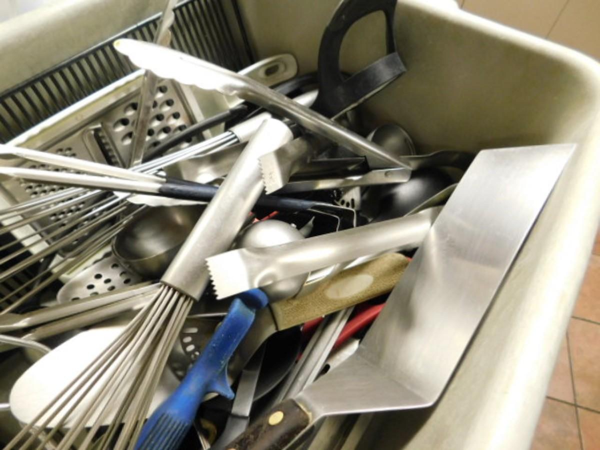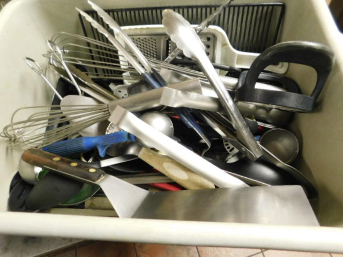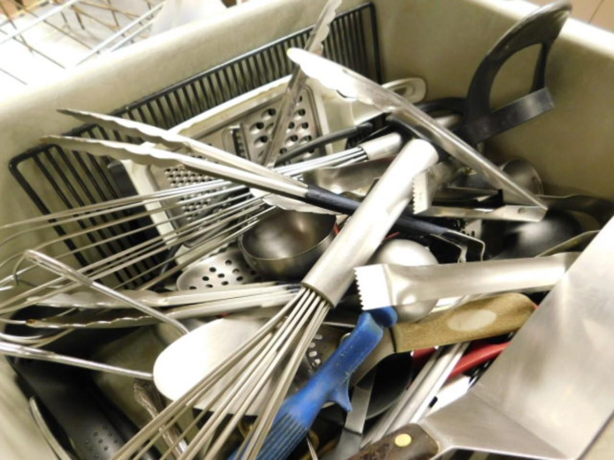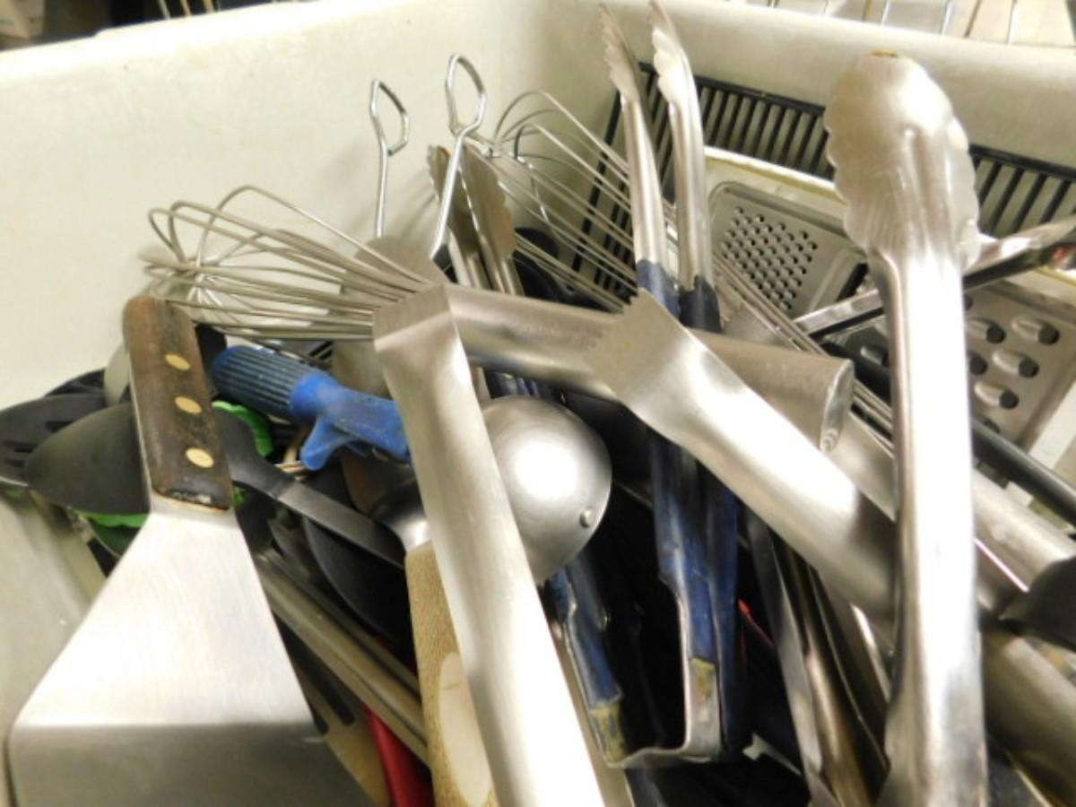 Assortment of Commercial Kitchen Hand Utensils and Food Prep Tools