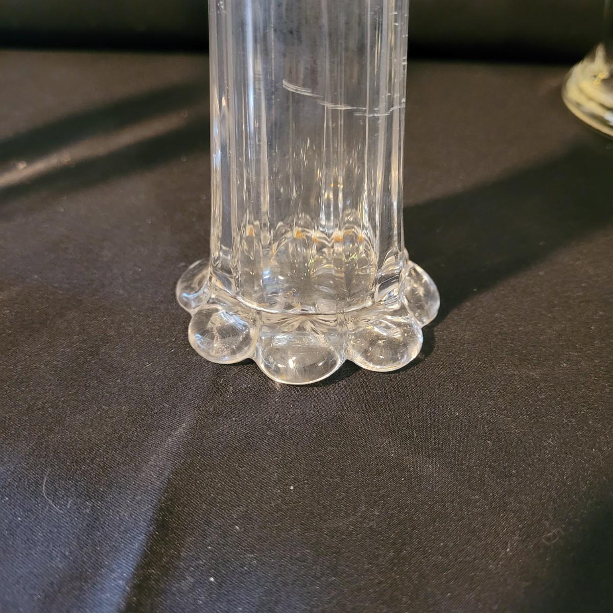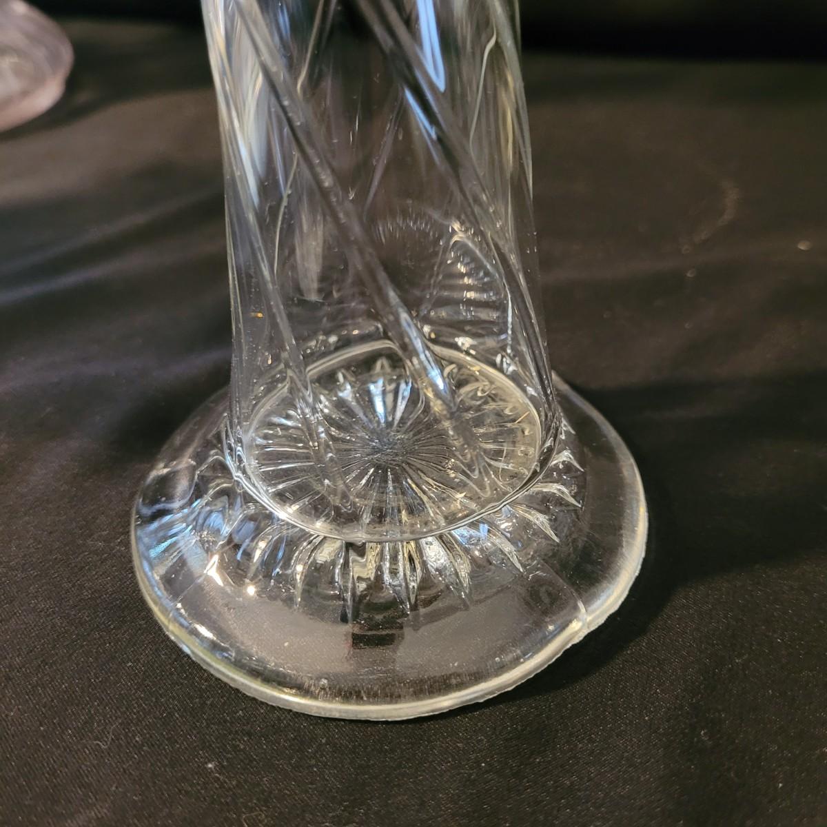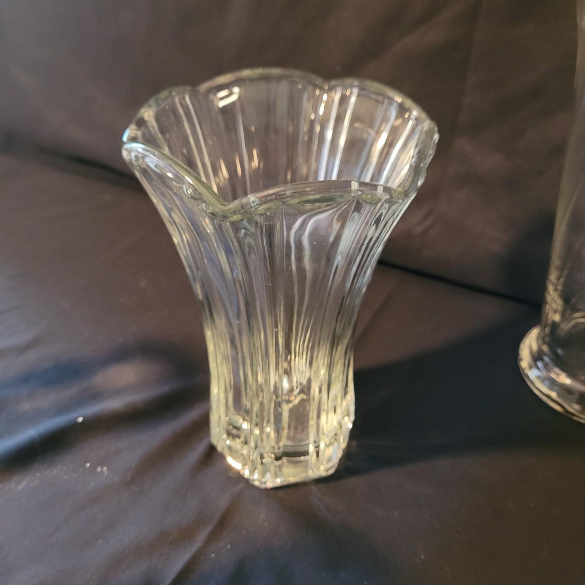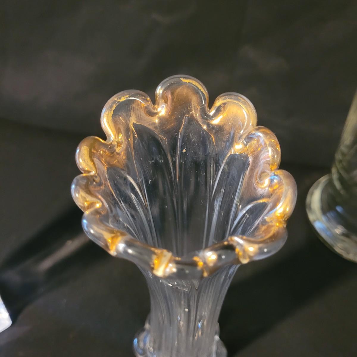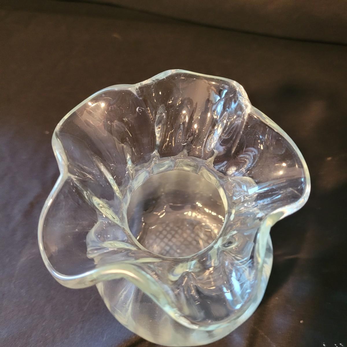 This large assortment of fourteen contemporary vases includes organic floral shaped edges, a variety of textures, iridescent hues, and all shapes and sizes. Some chips (see photos). Shorter trumpet lily style shaped vase in back center of photo measures approximately 9.5”DIA at mouth x 8”H. Shipping available.
