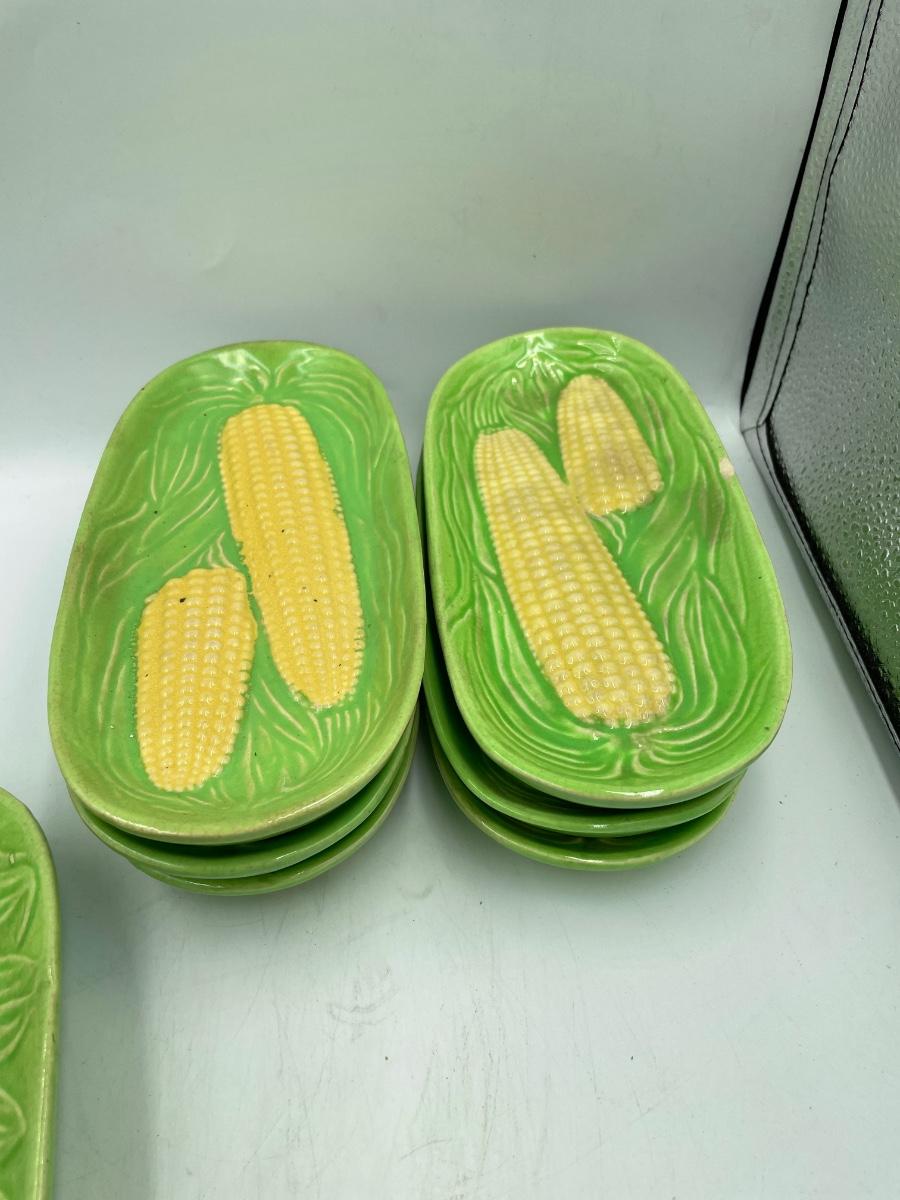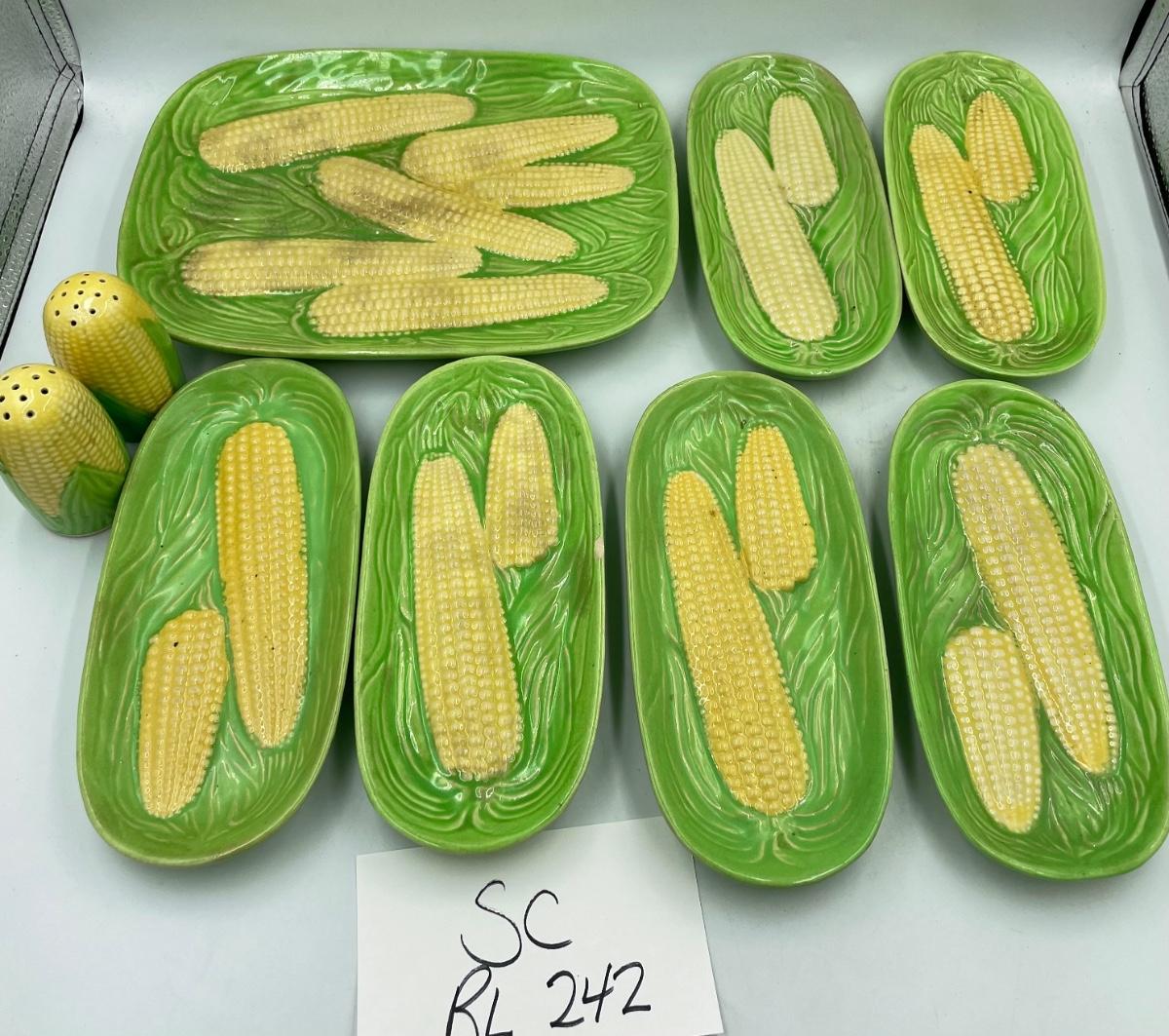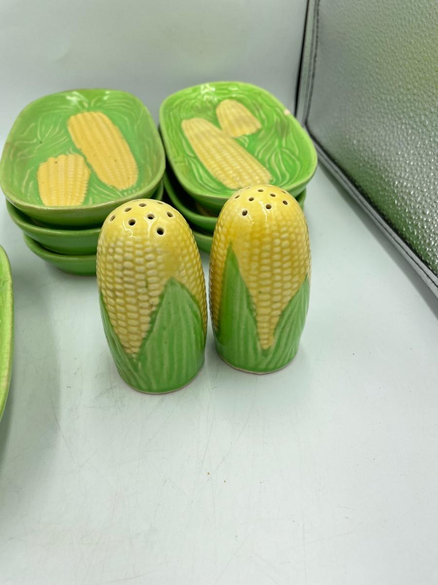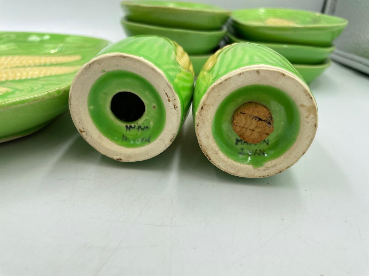 Corn platter, 6 corn plates and salt & pepper. Made in Japan