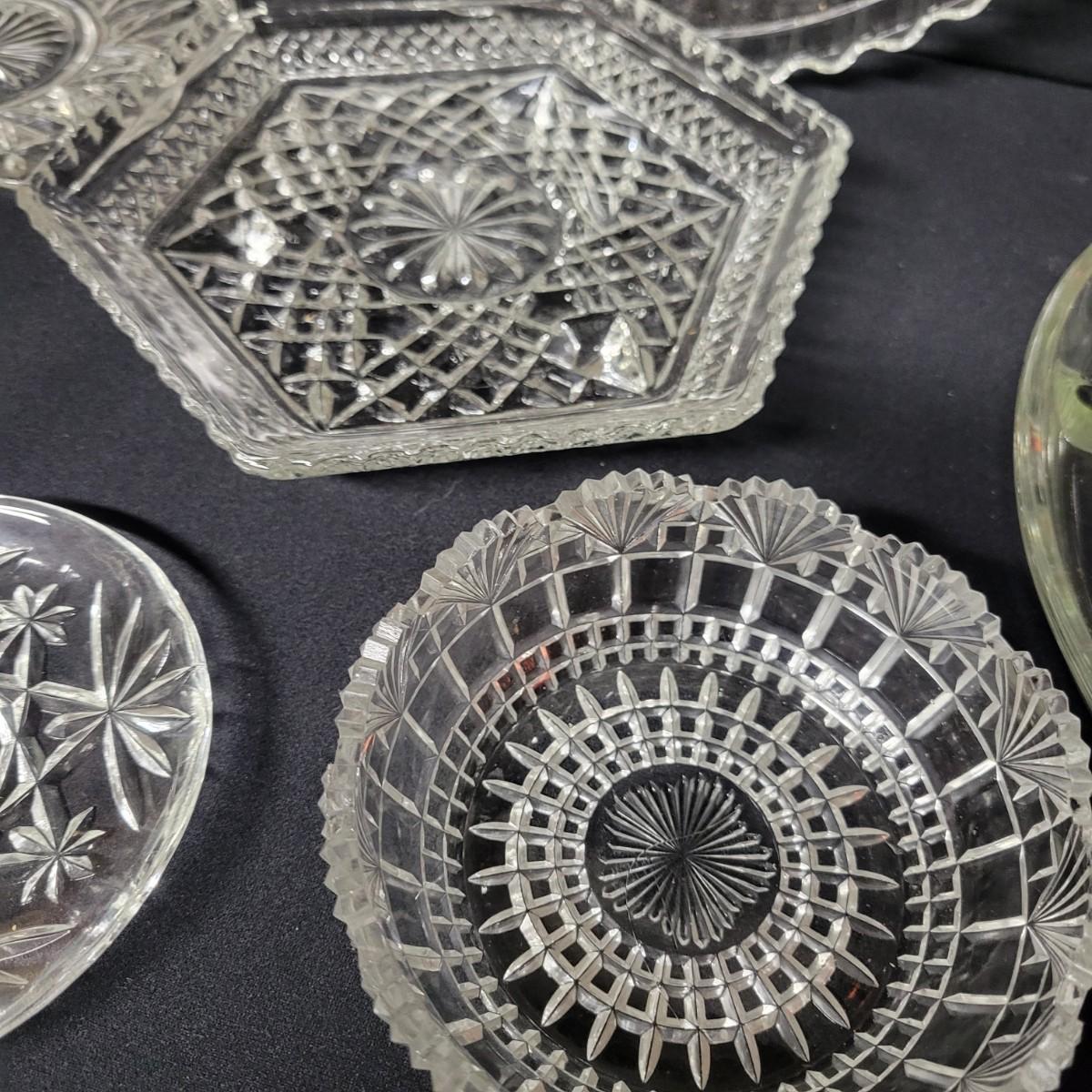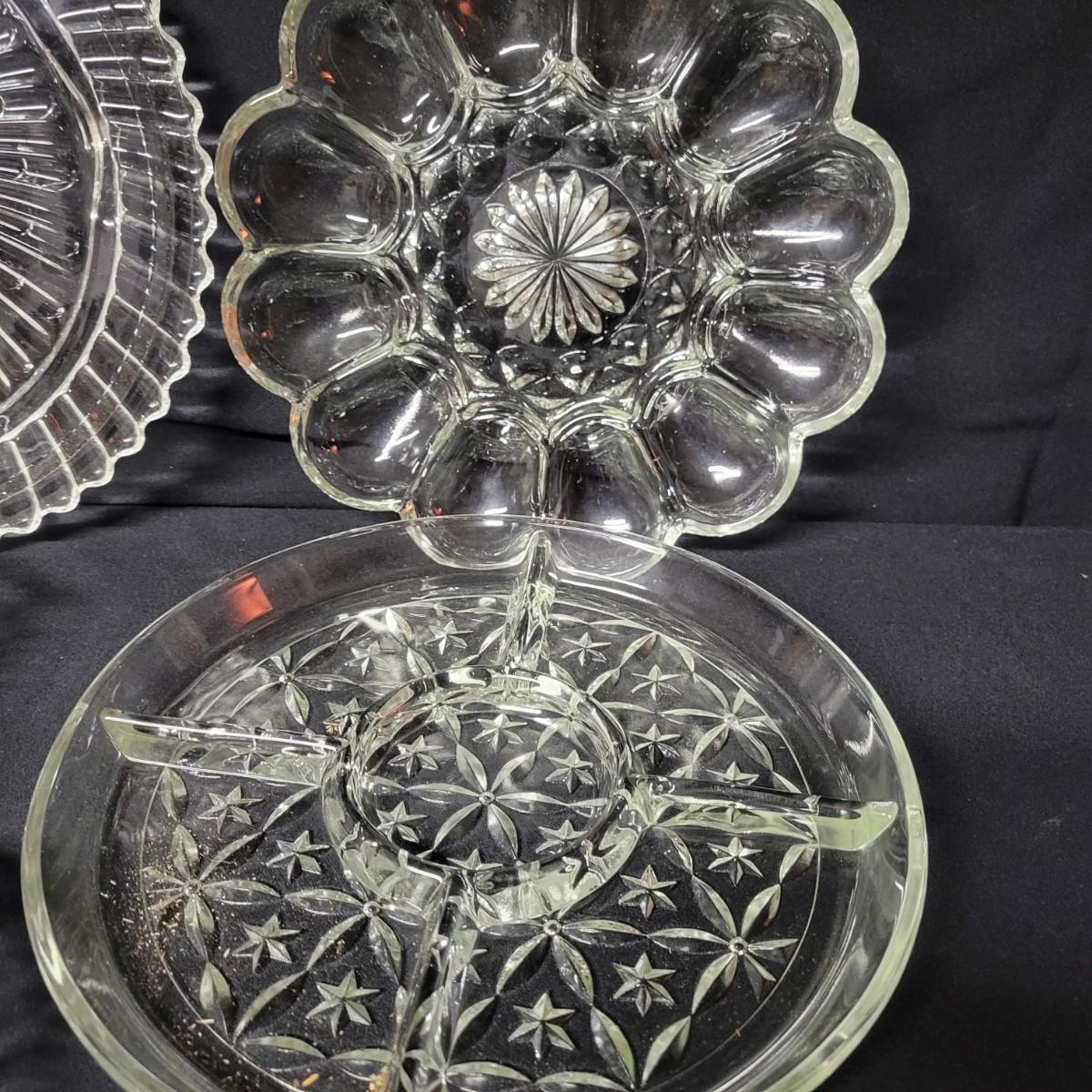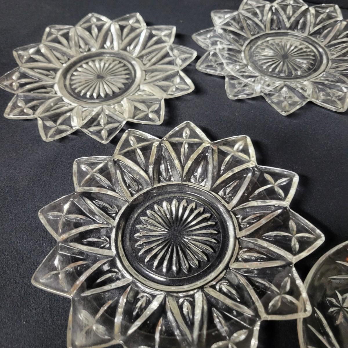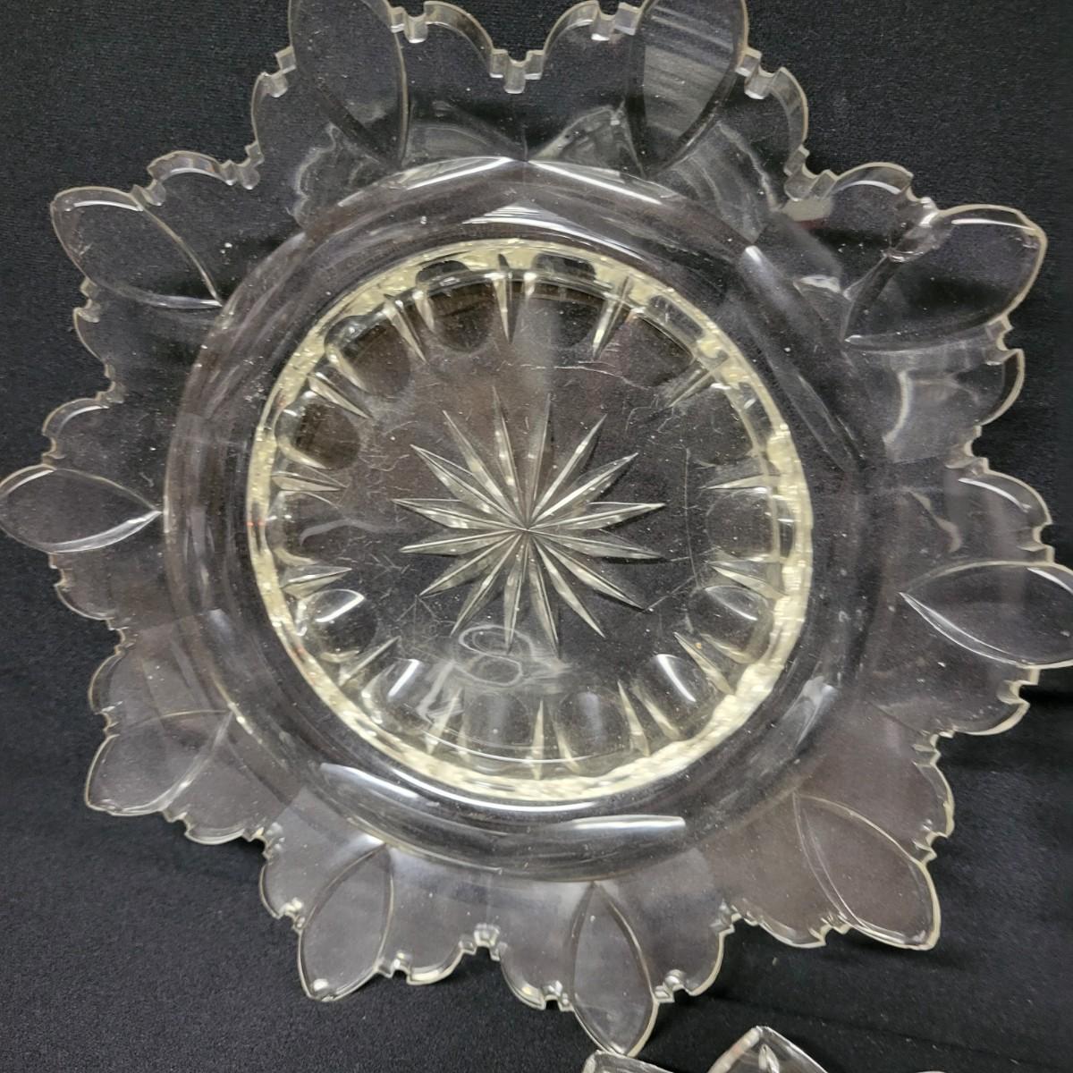 An assortment of thirteen crystal and glass platters and small plates in good condition. Most pieces are new, but a few have been used, but show no notable damage. Largest platter measures approximately 11.5" Shipping available