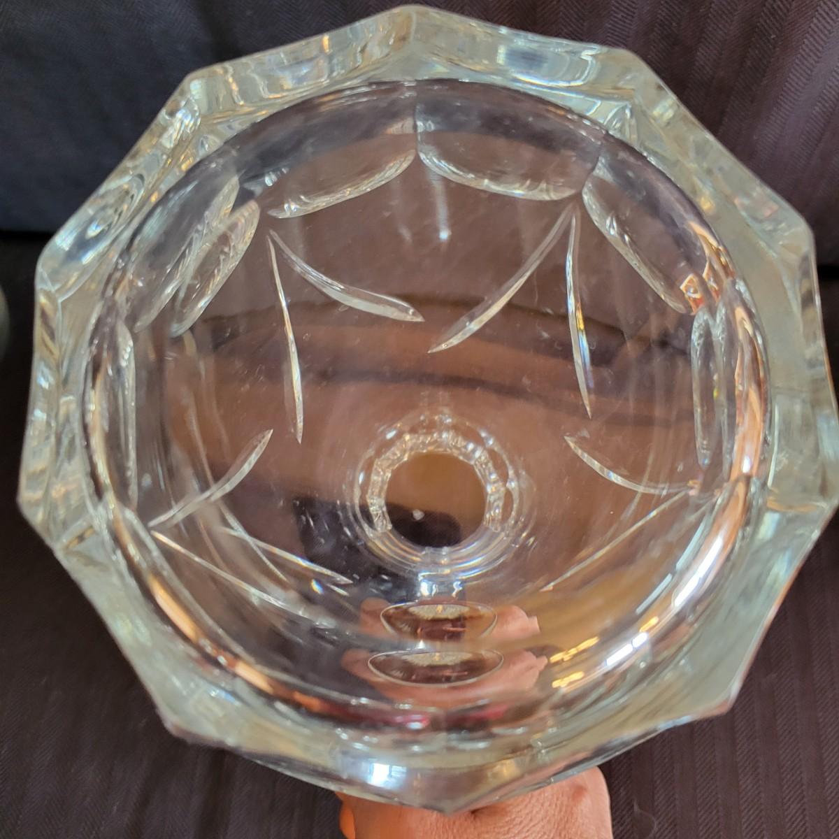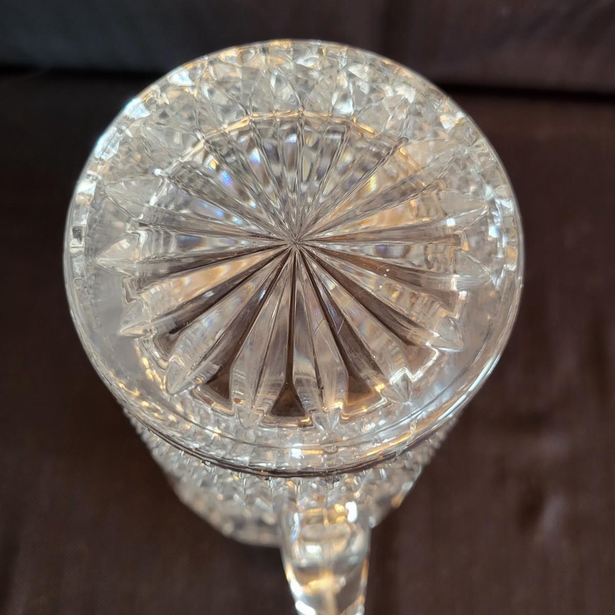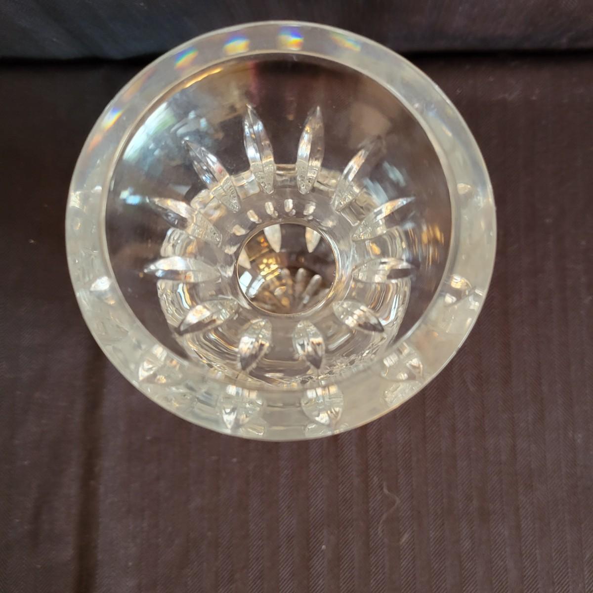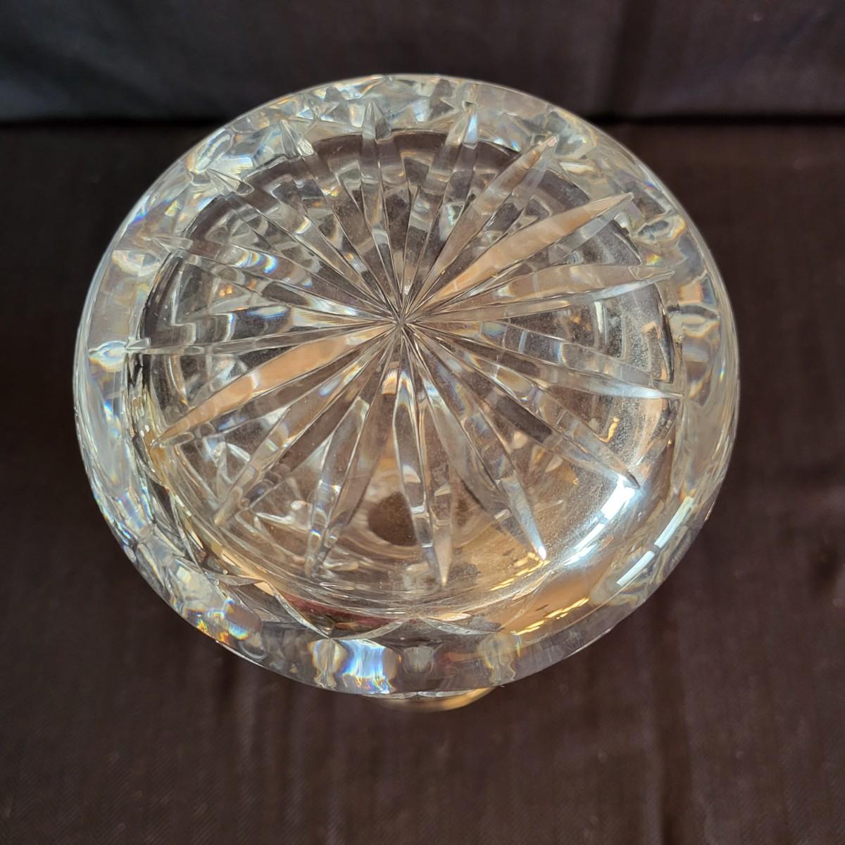 An assortment of seven crystal and glass vessels. Included is two Waterford crystal vases amd four other crystal pieces. The last vase pictured is molded glass. The tallest crystal vase measures approximately 4.5"D x 12.5"H. Shipping available