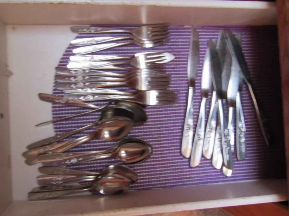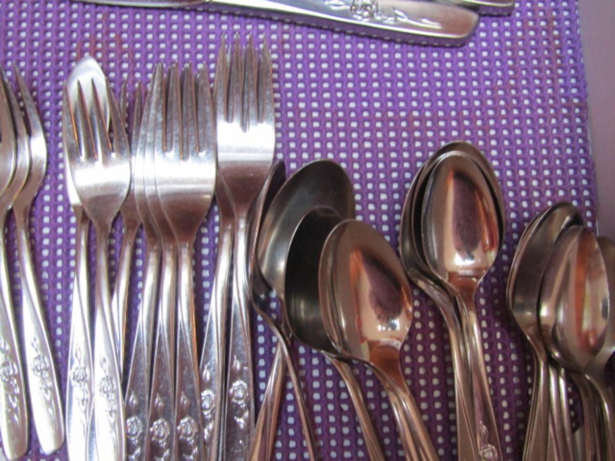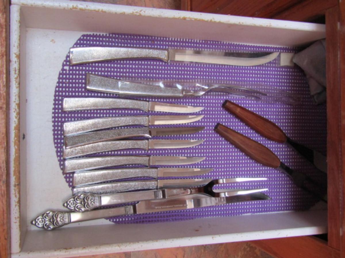 Assortment of Cutlery and Flatware. Most cutlery is Carvel Hall. Flatware is WM Rogers and there are approx 40 pieces.