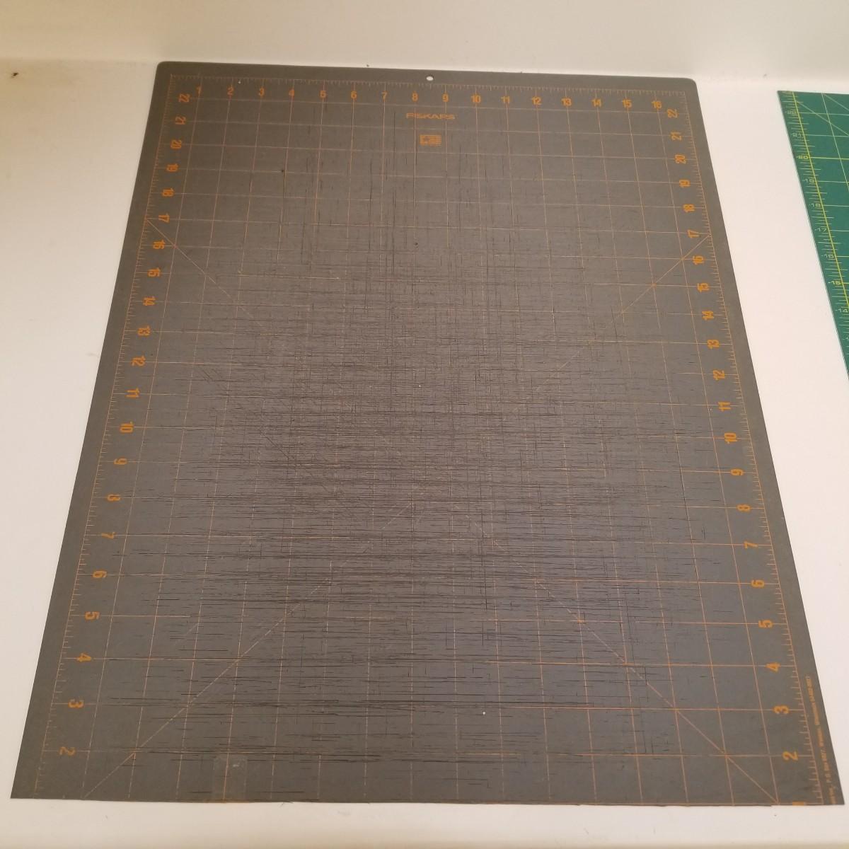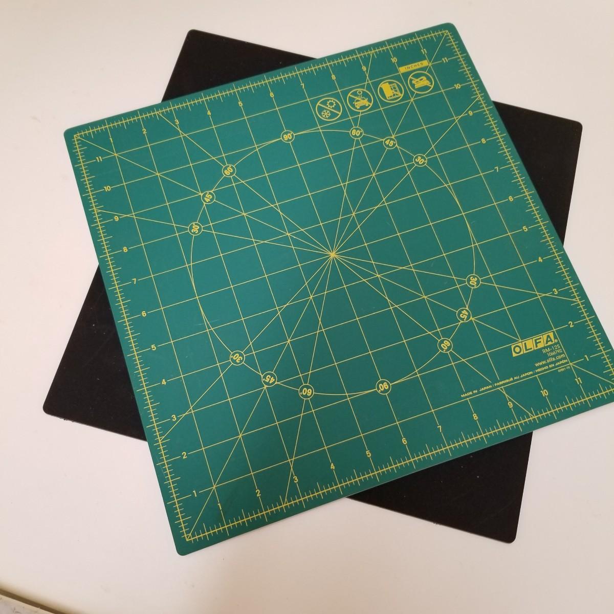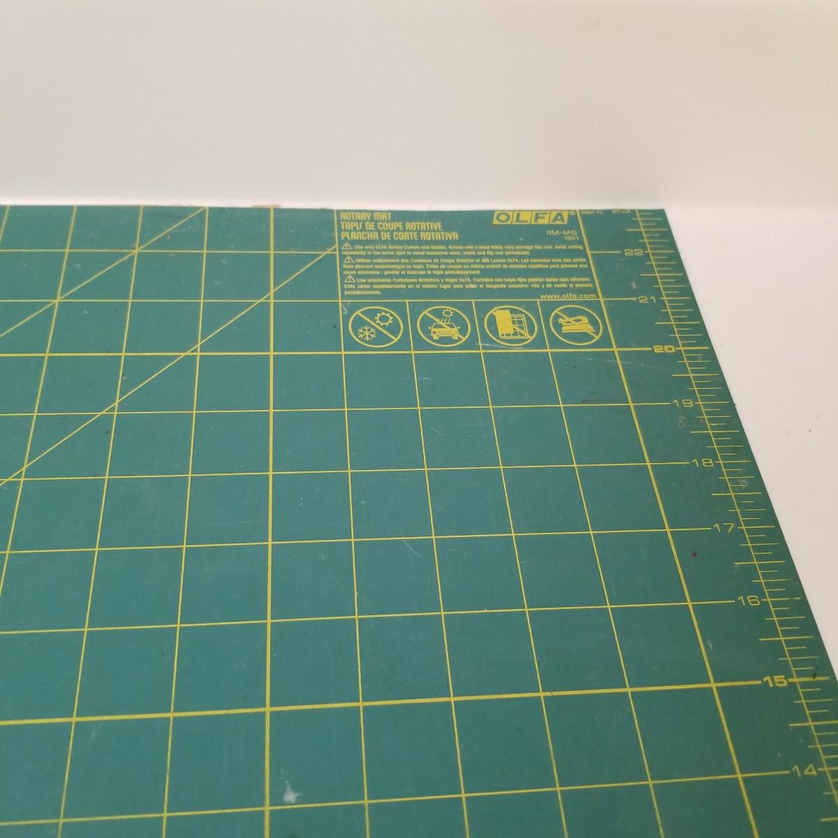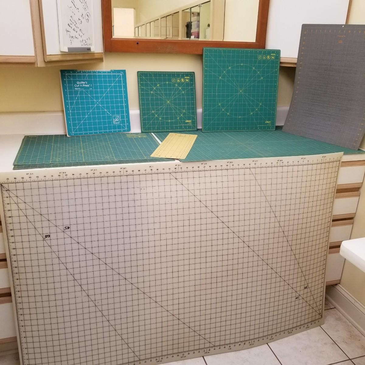 Several different sizes of self healing cutting mats. Olfa, Fiskars and June Tailor are represented here. Some mats have been cut down from larger sizes. 36.5"x59", 18"x24", 18"x22.5", 17.5" sq with spin base, 12.5" sq with spin base, 6"x18" and one June Tailor Cut n Press two side mat, 12"13". See photos for details. Local pickup only.