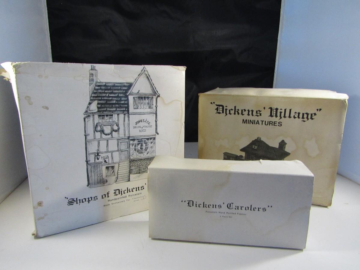 Assortment of Department 56 Shops of Dicken's Village, Miniatures, and Carolers #11