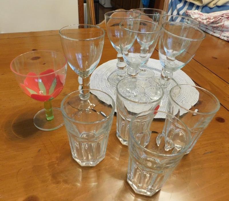 Assortment of Drinking Glasses Including Pottery Barn Brands