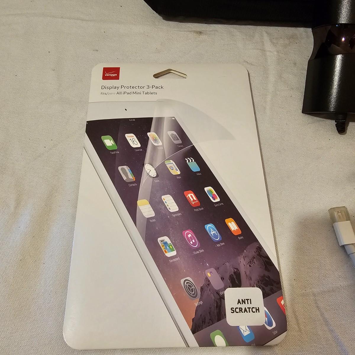 Several pieces of electronic equipment. Some Apple cords and a mouse, Samsung wireless charging pad, one Case Logic laptop case, 16" x 2" x 12"H. A 3-pack of mini screen protectors, one ProControl ProLinkz control processor, and a Belkin wireless router. No testing on electronic items. See photos for details. Shipping available.