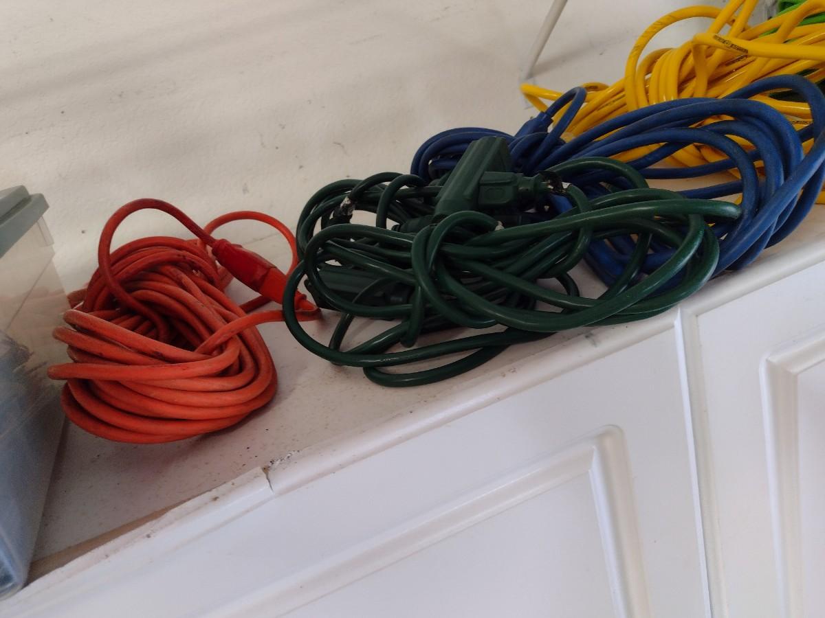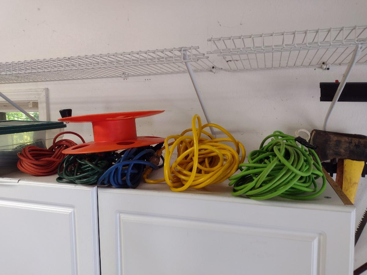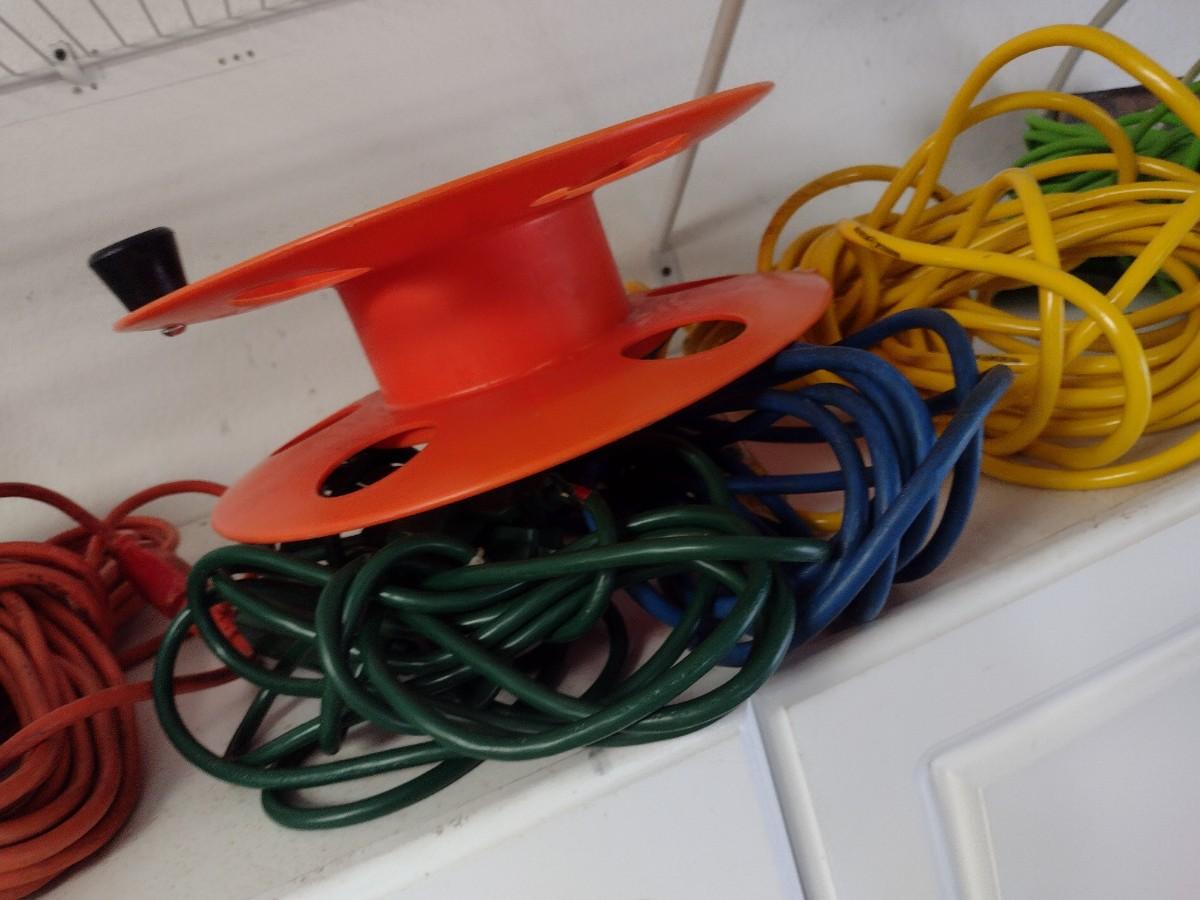 Assortment of Extension Cords and Reel