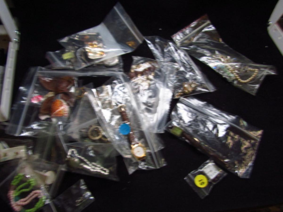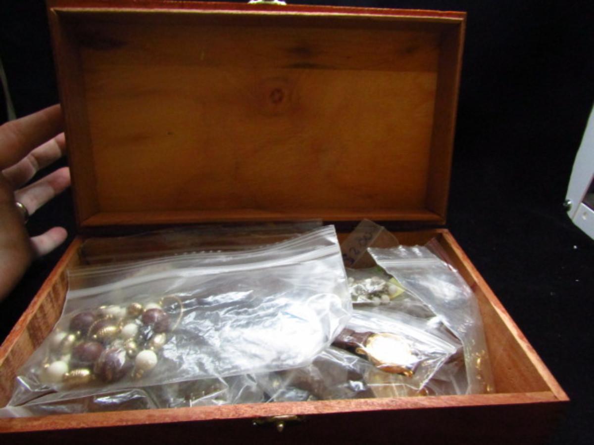 Assortment of Fashion Jewelry with Wooden Jose Cuervo 1800 Storage Box (#563)