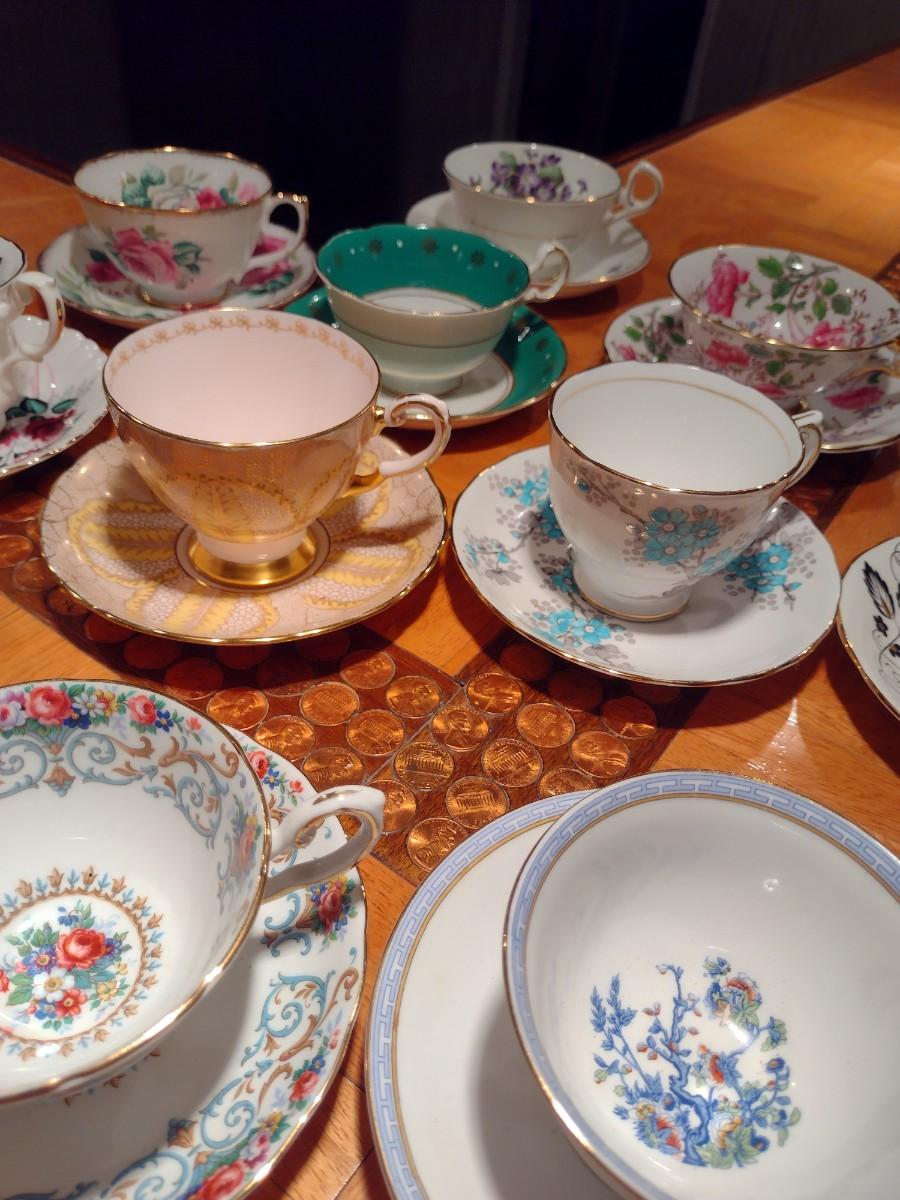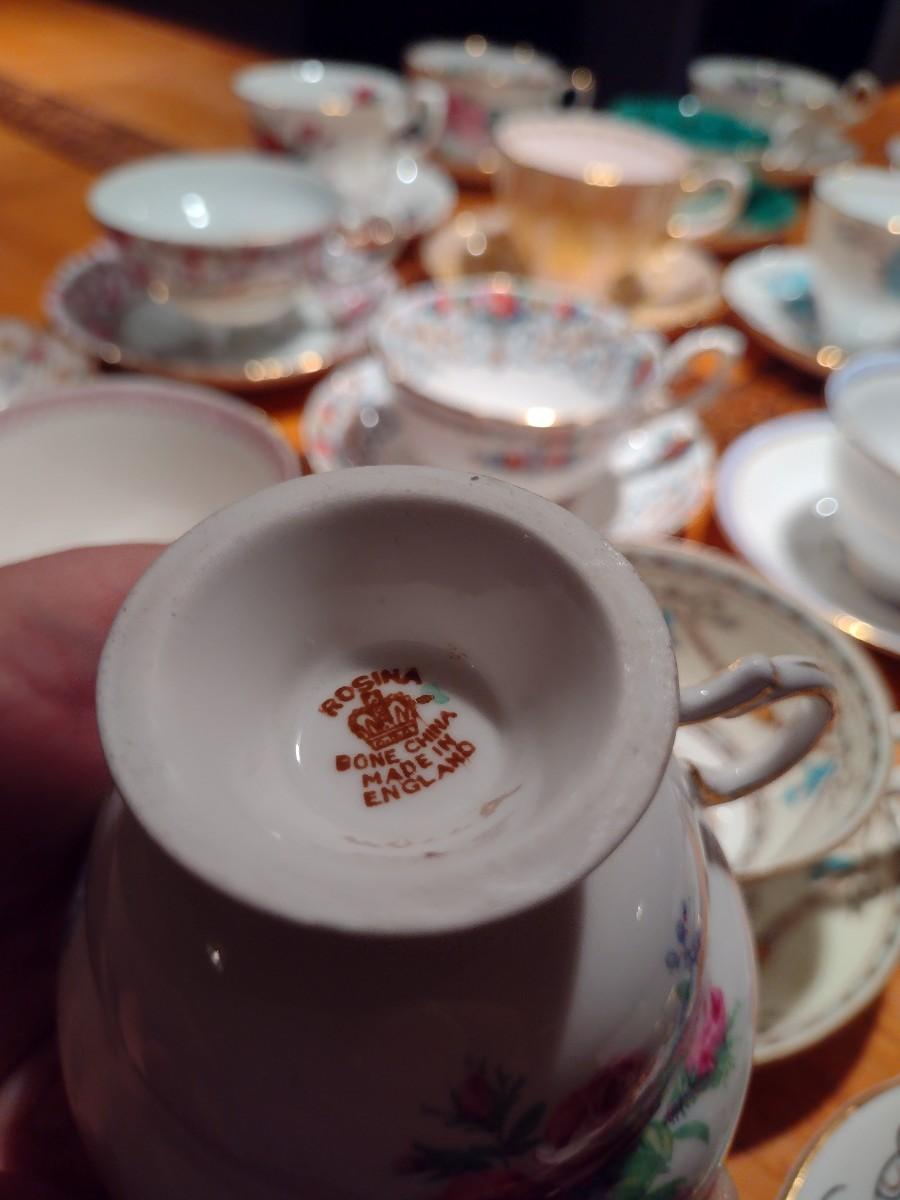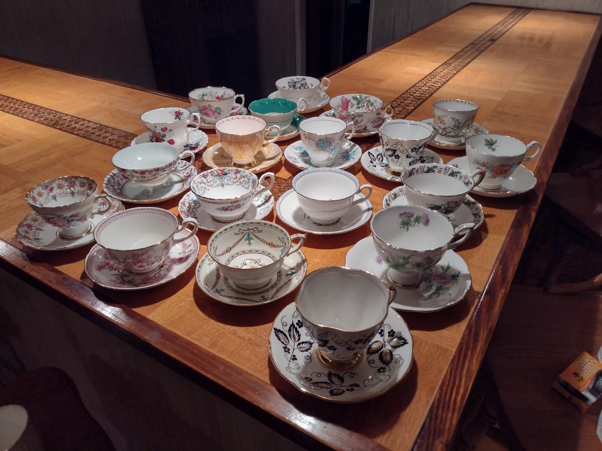Assortment of Fine Bone China Cups with Saucers. Approx 19 sets.