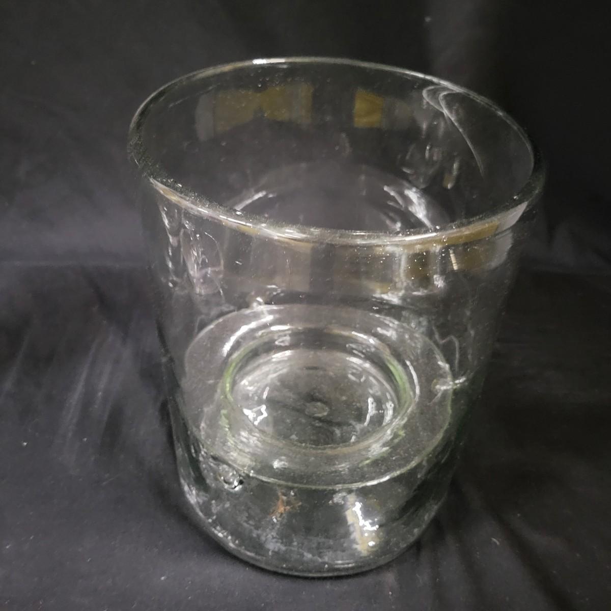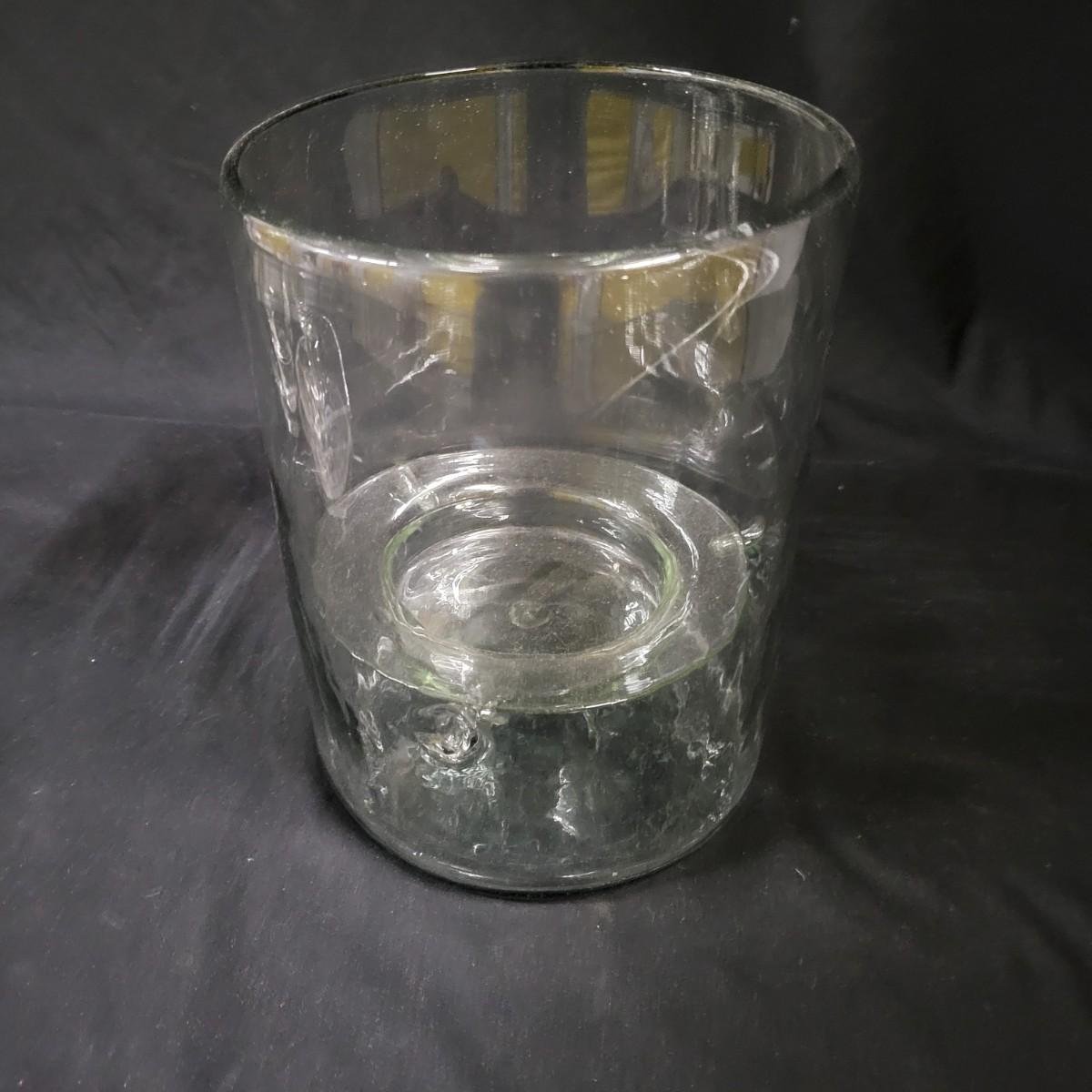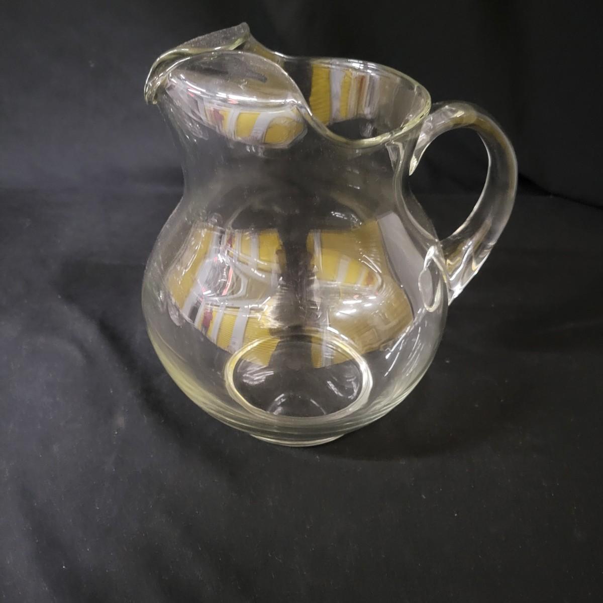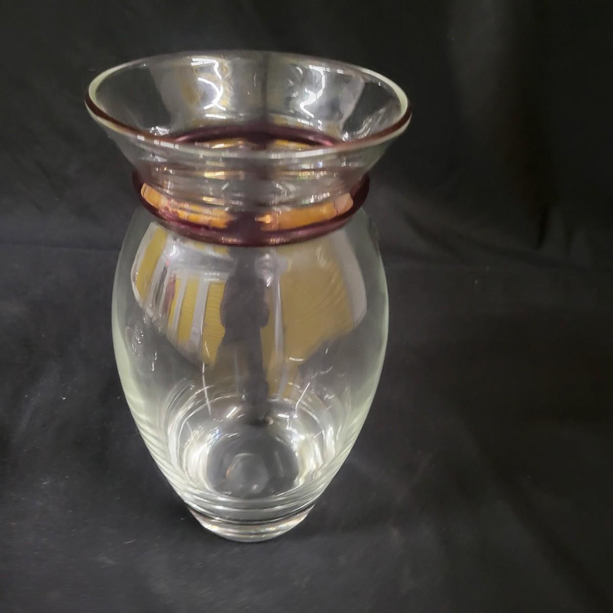 An assortment of five glass pieces in good condition with no notable damage. Lot includes multiple vases, a pitcher, a candle holder and a heart shaped candy dish. Large candle holder measures approximately 7" x 9.5" Shipping available. Shipping can be costly please call UPS store at 828-252-6930 for quote