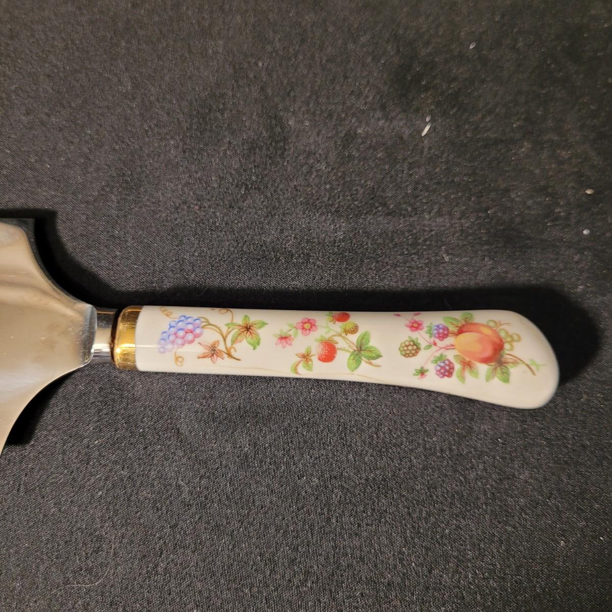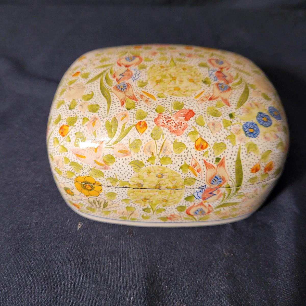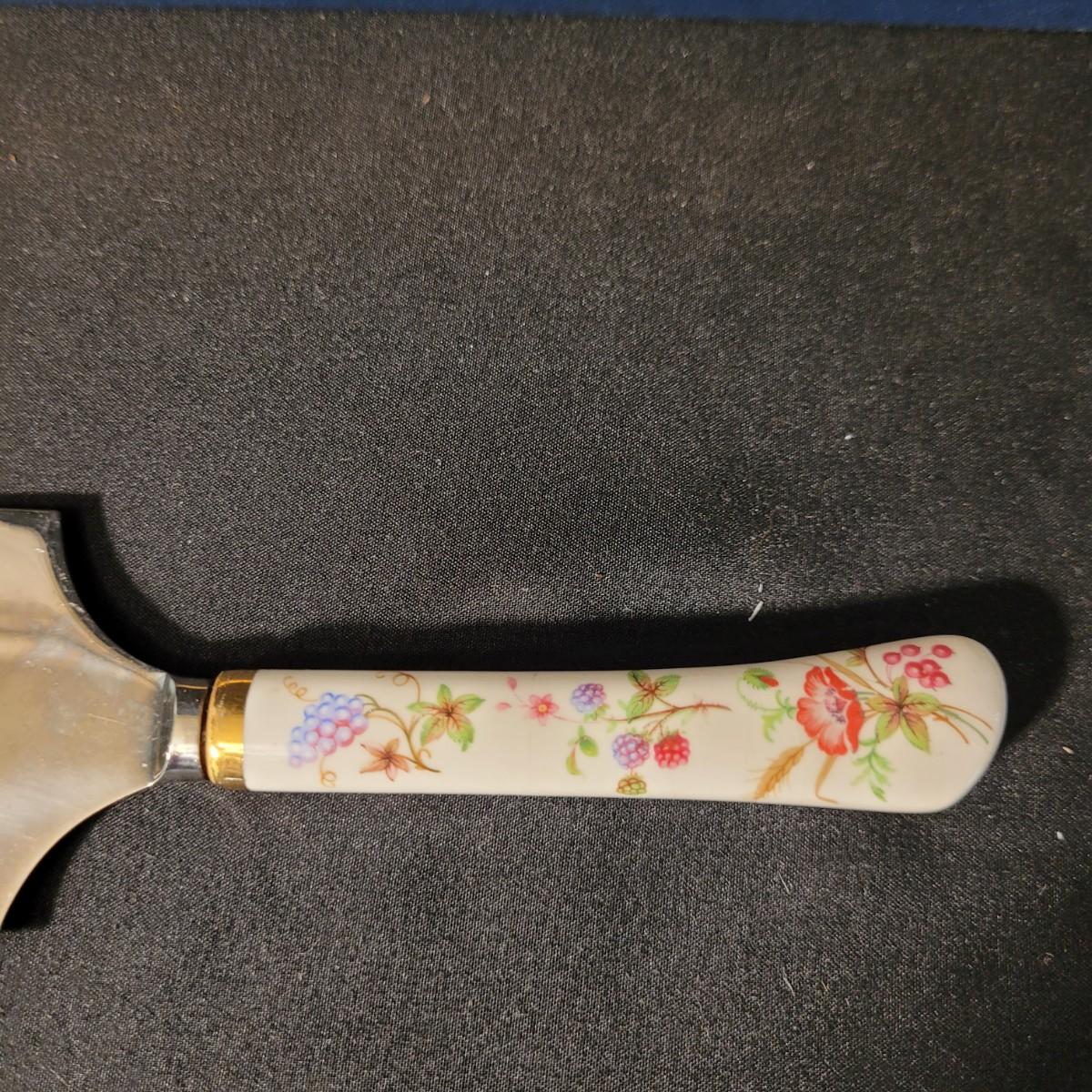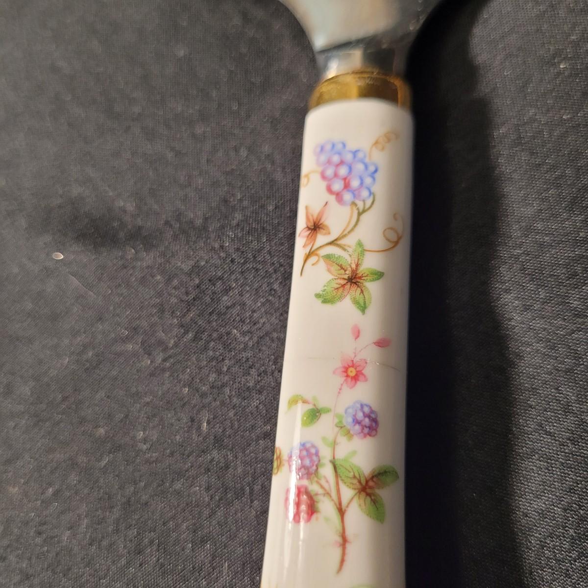 Assortment of charming vintage floral themed items, including a cotton handkerchief by Lehner of Sweden in excellent condition, a mini gift wrapped magnet with sweet message attached, an Asian style blossom print small ceramic vase, Scandinavian folk art style ceramic vase, 70's era mug, delicate floral painted wooden box from India, and a Coalport England serving knife with bone china handle. Knife is in good condition with slight tarnishing and a small crack in the handle (see photos). Knife box measures approximately 10.5"L x3"W. Shipping available.