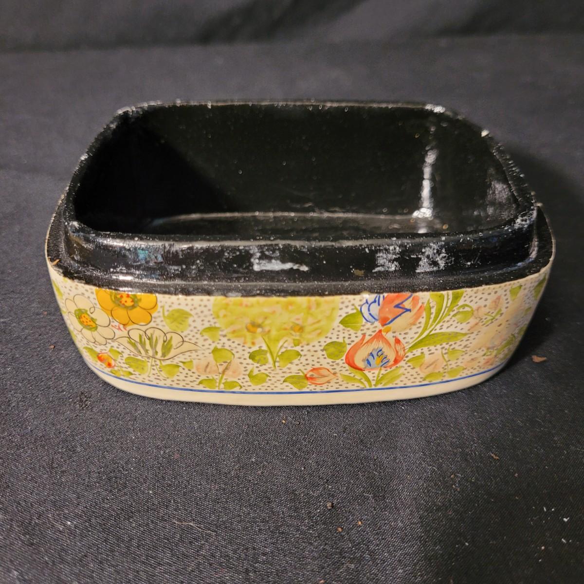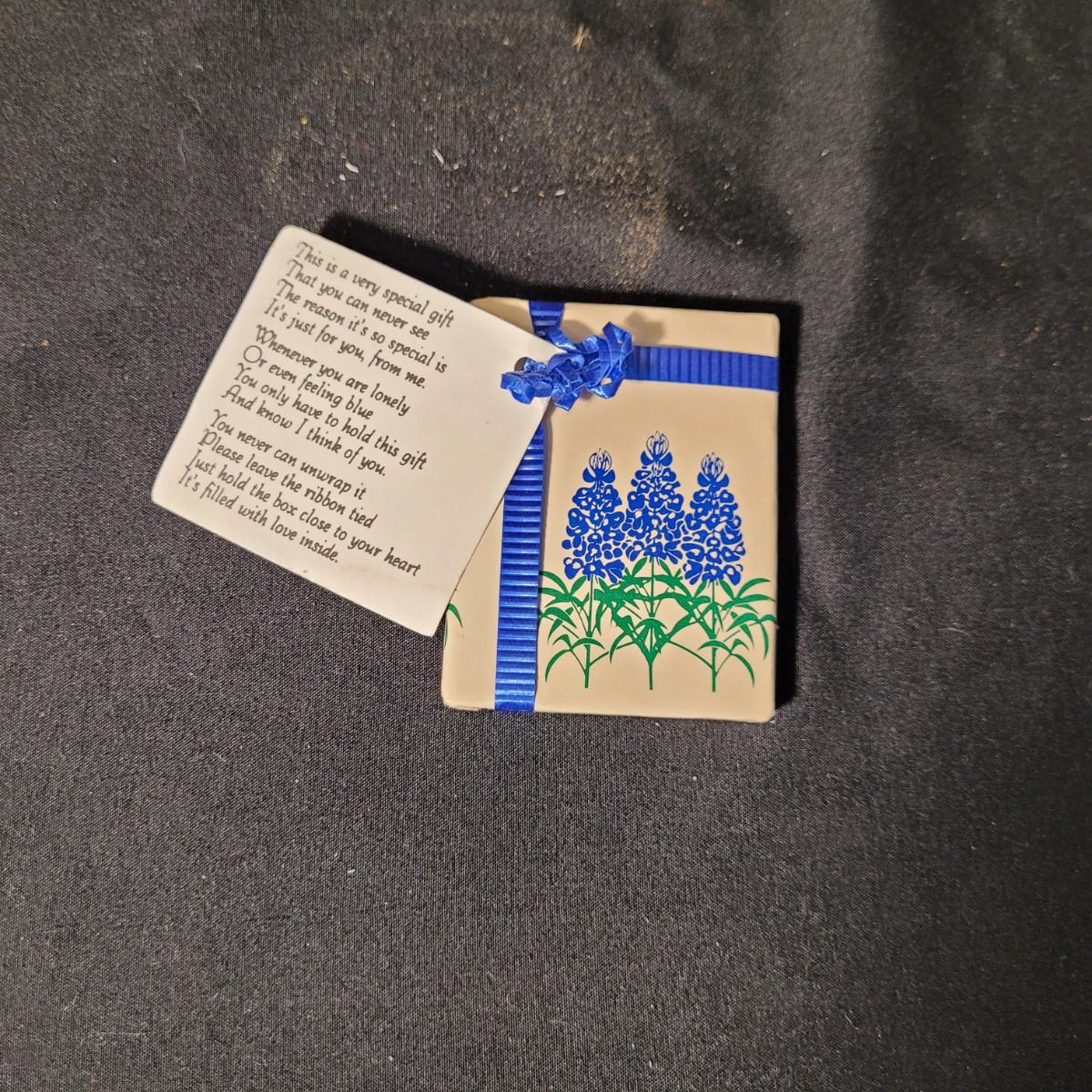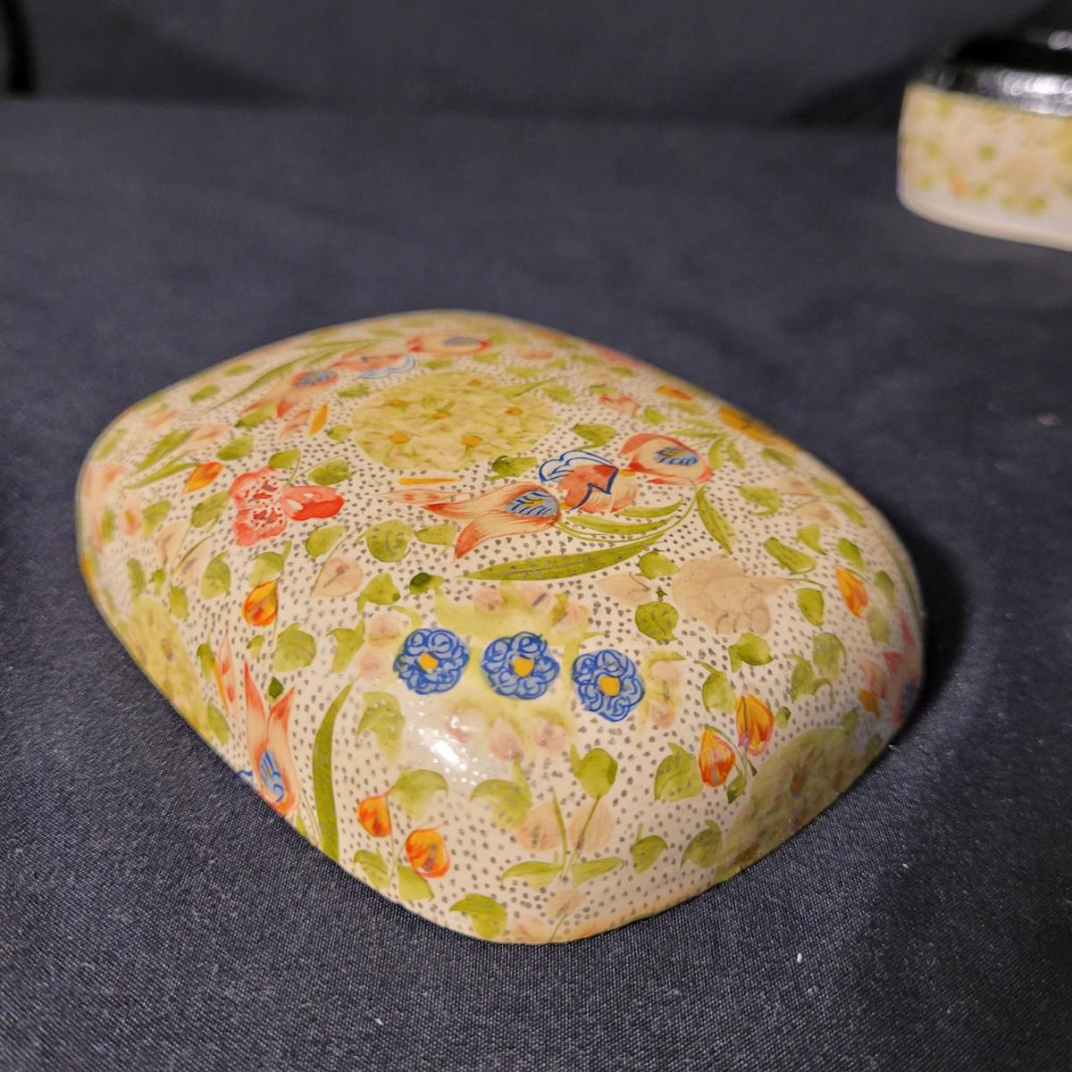 Assortment of charming vintage floral themed items, including a cotton handkerchief by Lehner of Sweden in excellent condition, a mini gift wrapped magnet with sweet message attached, an Asian style blossom print small ceramic vase, Scandinavian folk art style ceramic vase, 70's era mug, delicate floral painted wooden box from India, and a Coalport England serving knife with bone china handle. Knife is in good condition with slight tarnishing and a small crack in the handle (see photos). Knife box measures approximately 10.5"L x3"W. Shipping available.