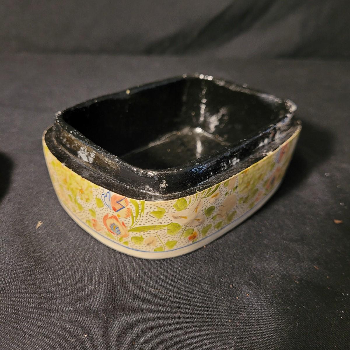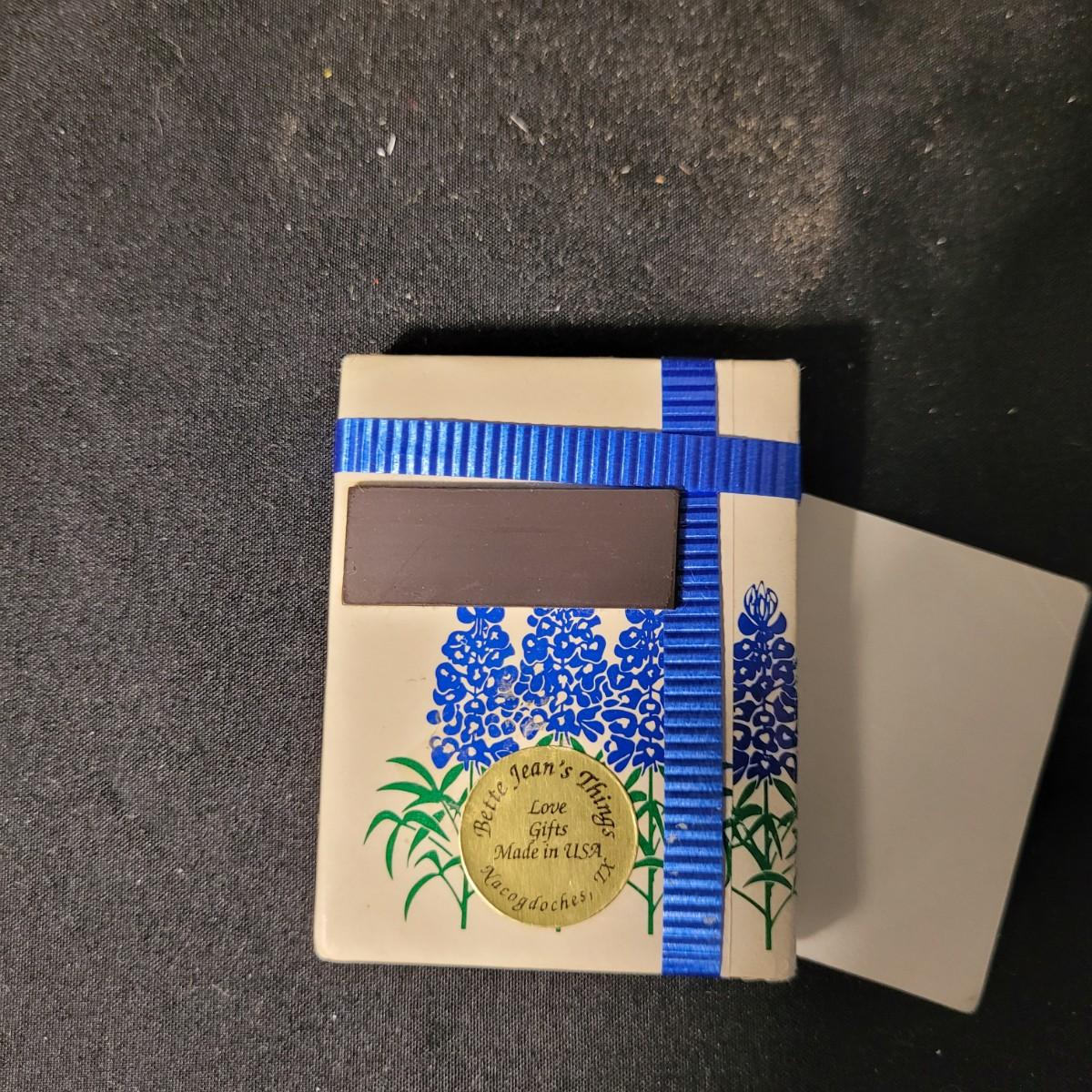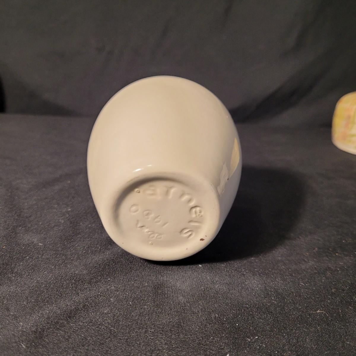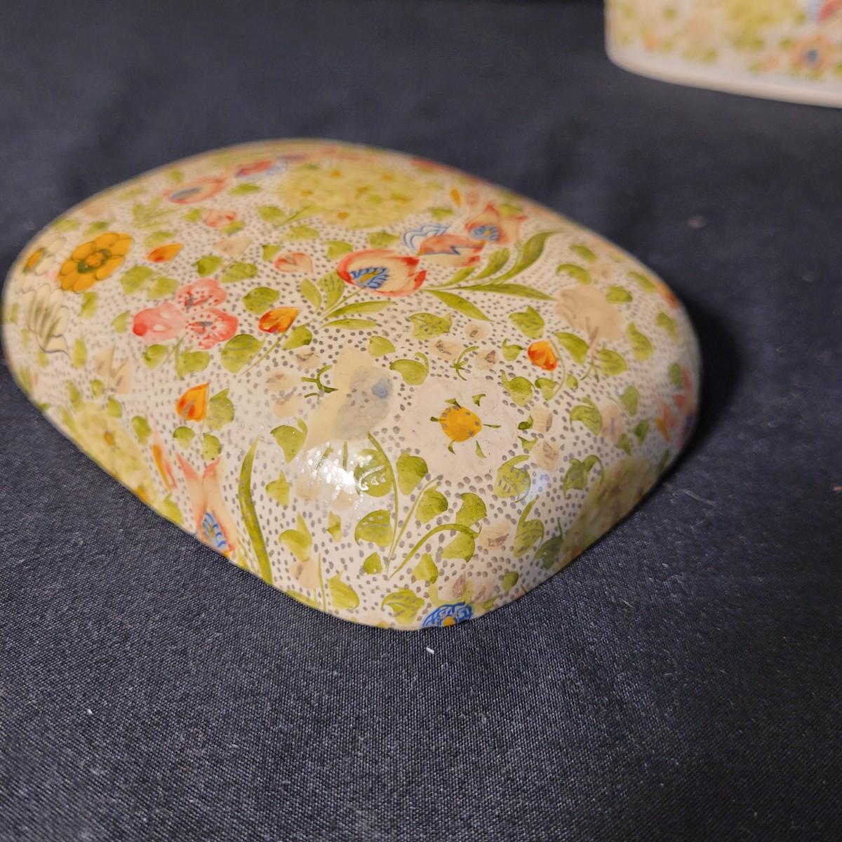 Assortment of charming vintage floral themed items, including a cotton handkerchief by Lehner of Sweden in excellent condition, a mini gift wrapped magnet with sweet message attached, an Asian style blossom print small ceramic vase, Scandinavian folk art style ceramic vase, 70's era mug, delicate floral painted wooden box from India, and a Coalport England serving knife with bone china handle. Knife is in good condition with slight tarnishing and a small crack in the handle (see photos). Knife box measures approximately 10.5"L x3"W. Shipping available.