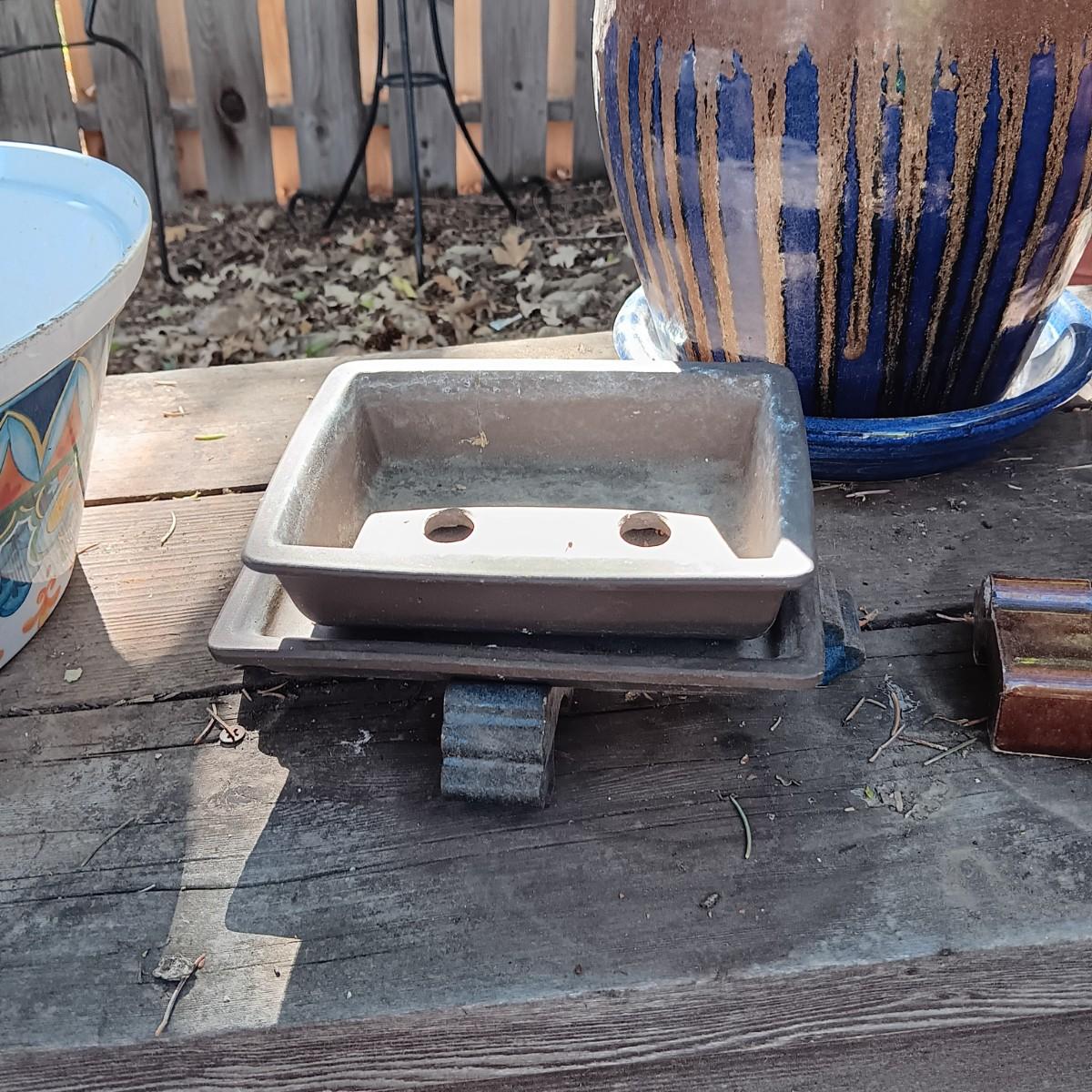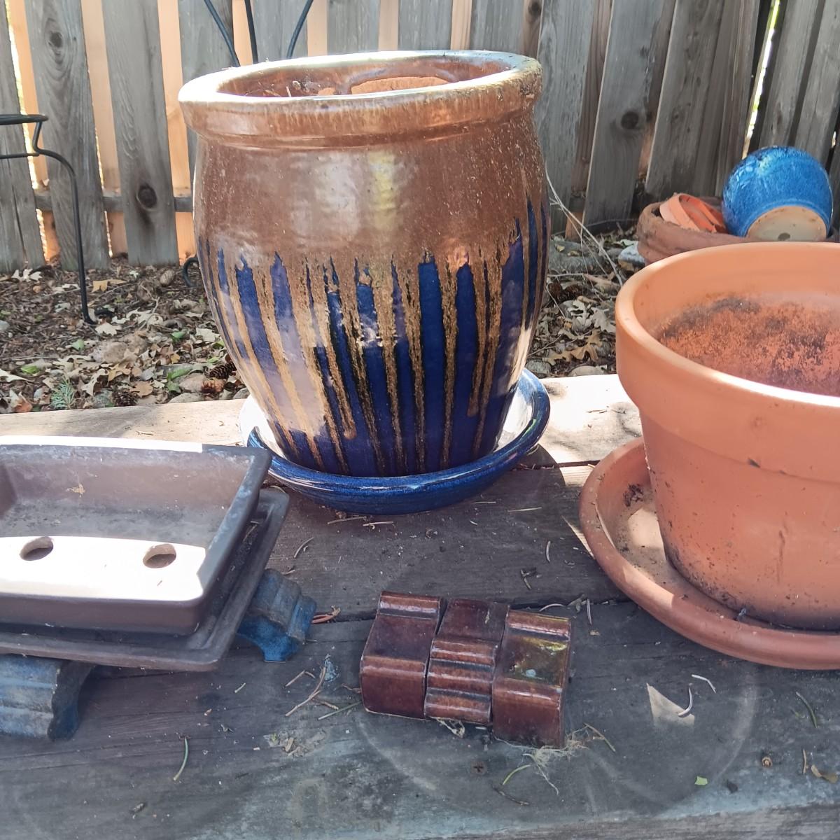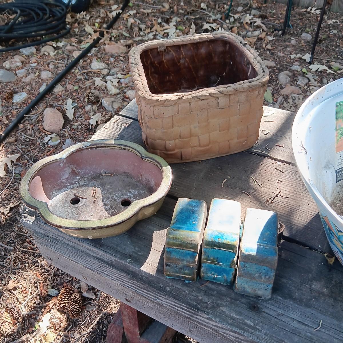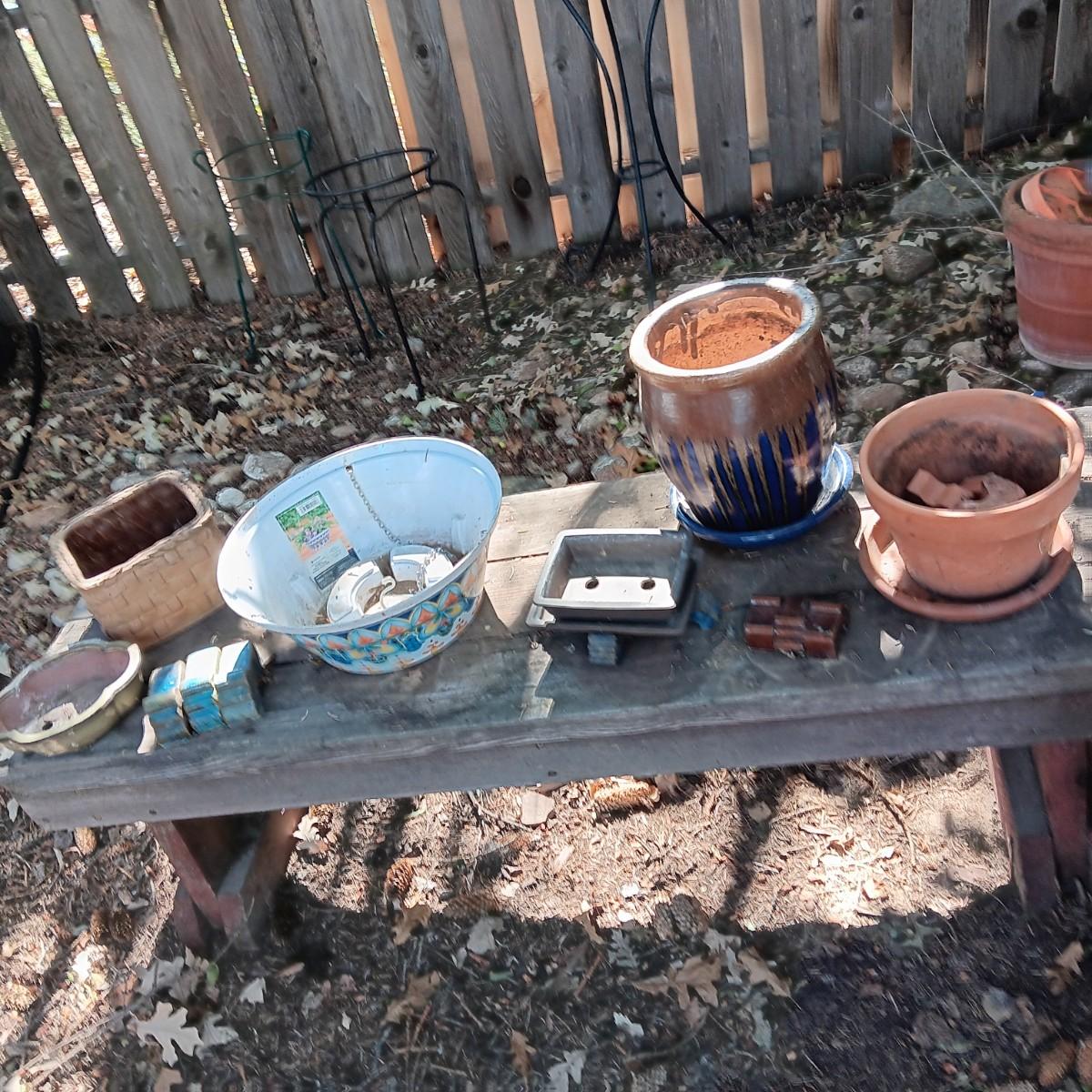 ASSORTMENT OF FLOWER POTS AND CLAY FEET FOR POTS