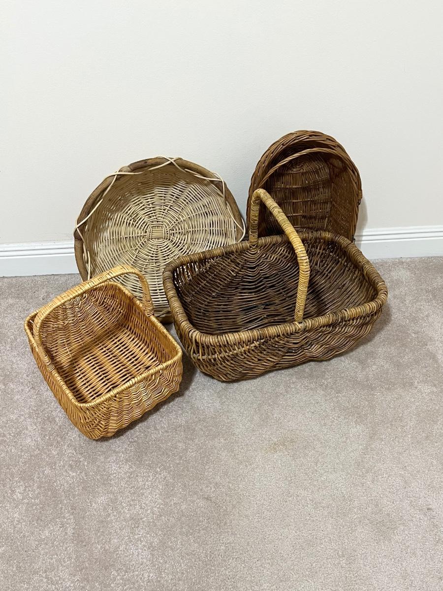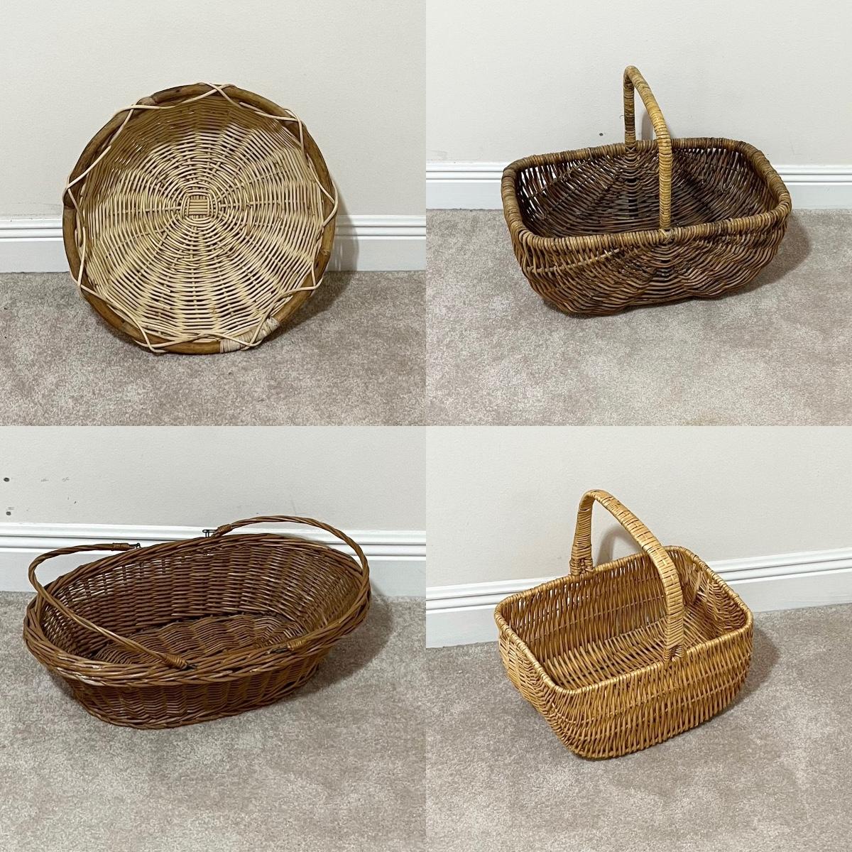 Round basket = 7” H 19” round ~ oval basket = 6” H x 21” W x 13” D ~ square basket = 14.5” H x 15” W x 12” D ~ Oblong basket = 17” H x 23” W x 14.5” D