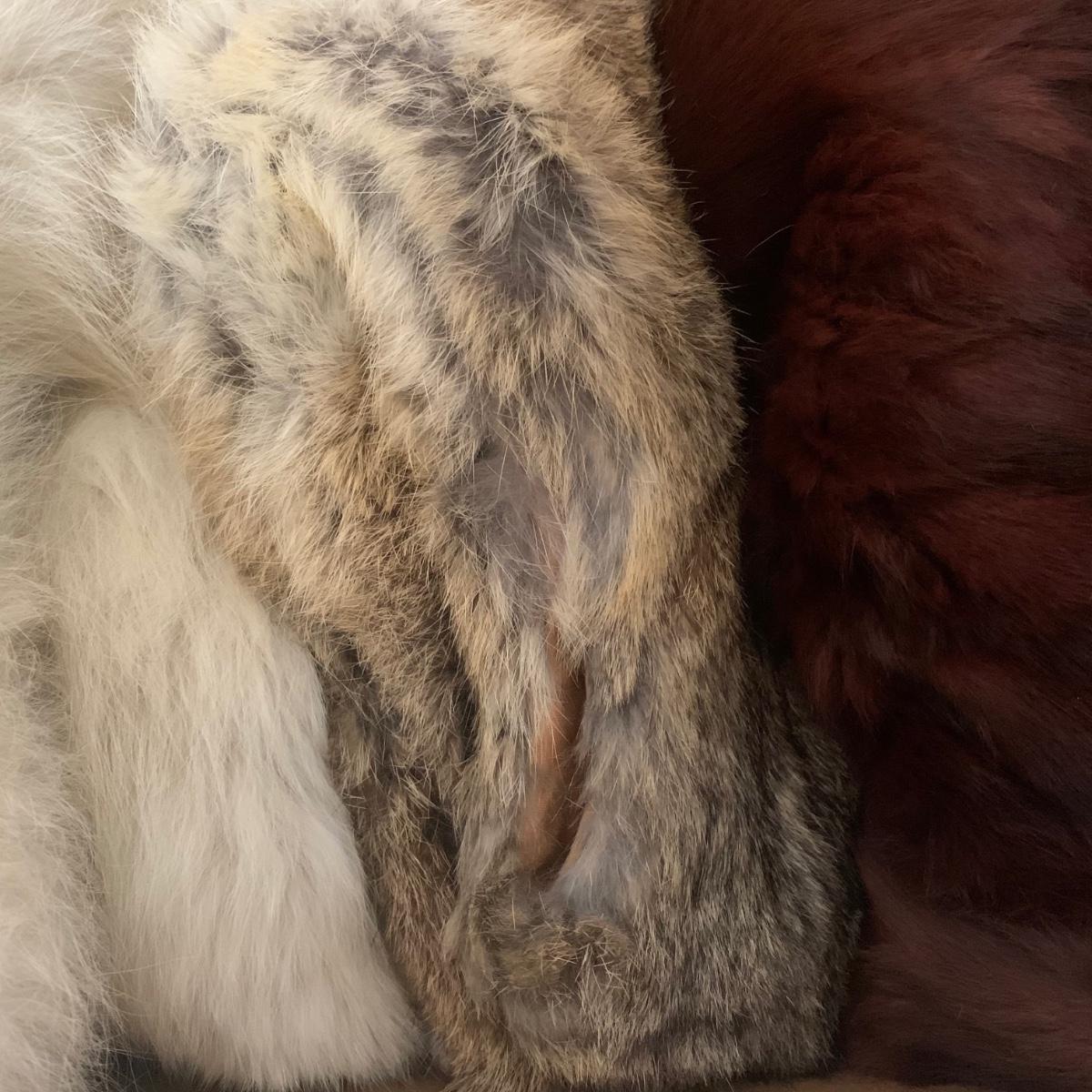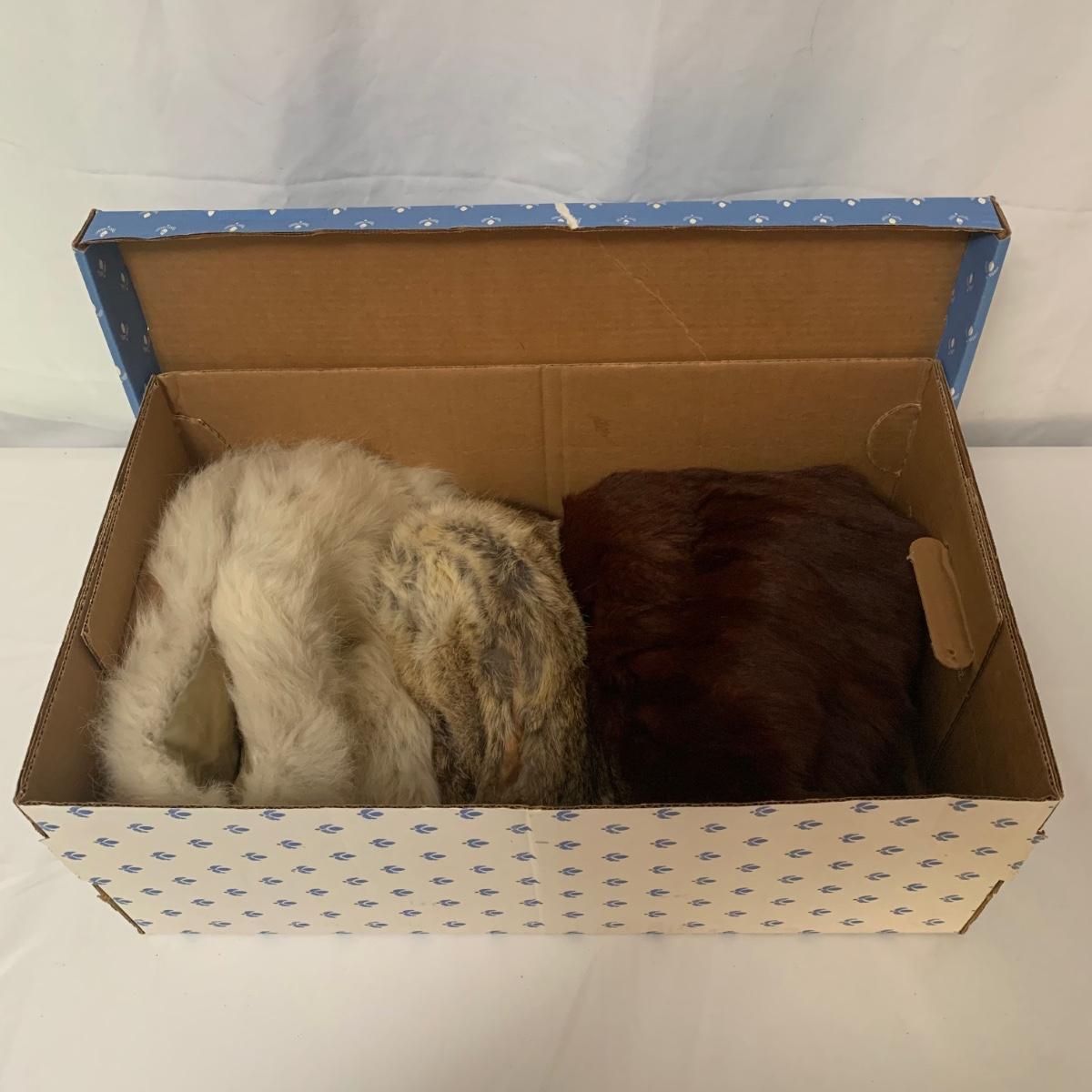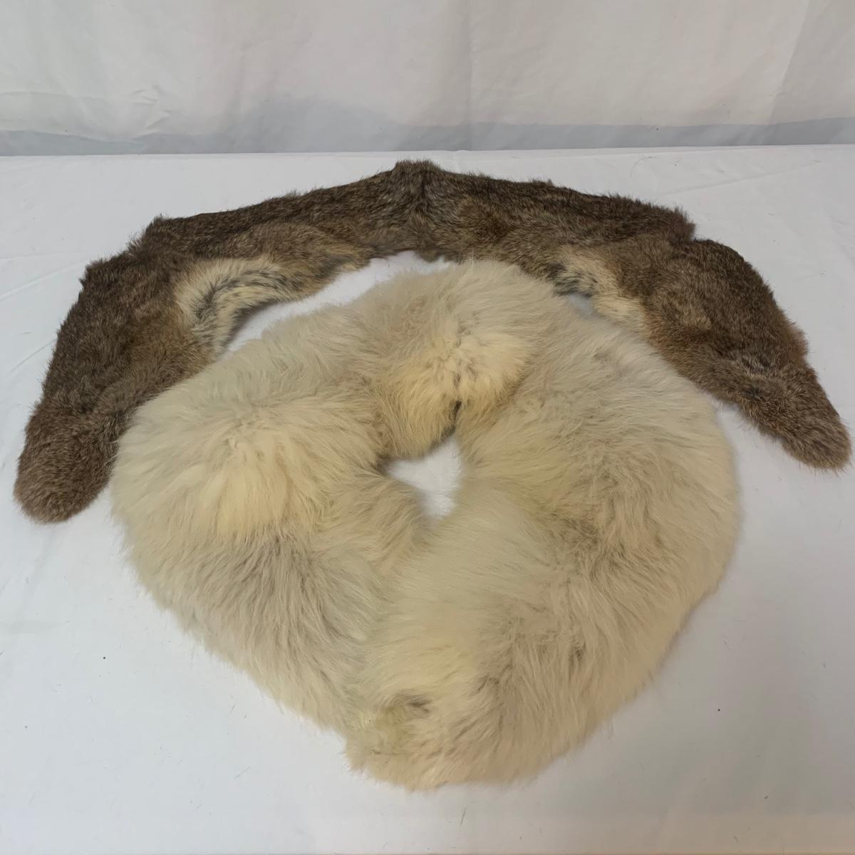 This lot includes three fur shoulder shawls with silk-like backing. Fur is in good condition, but will likely require a bit of cleaning due to storage.