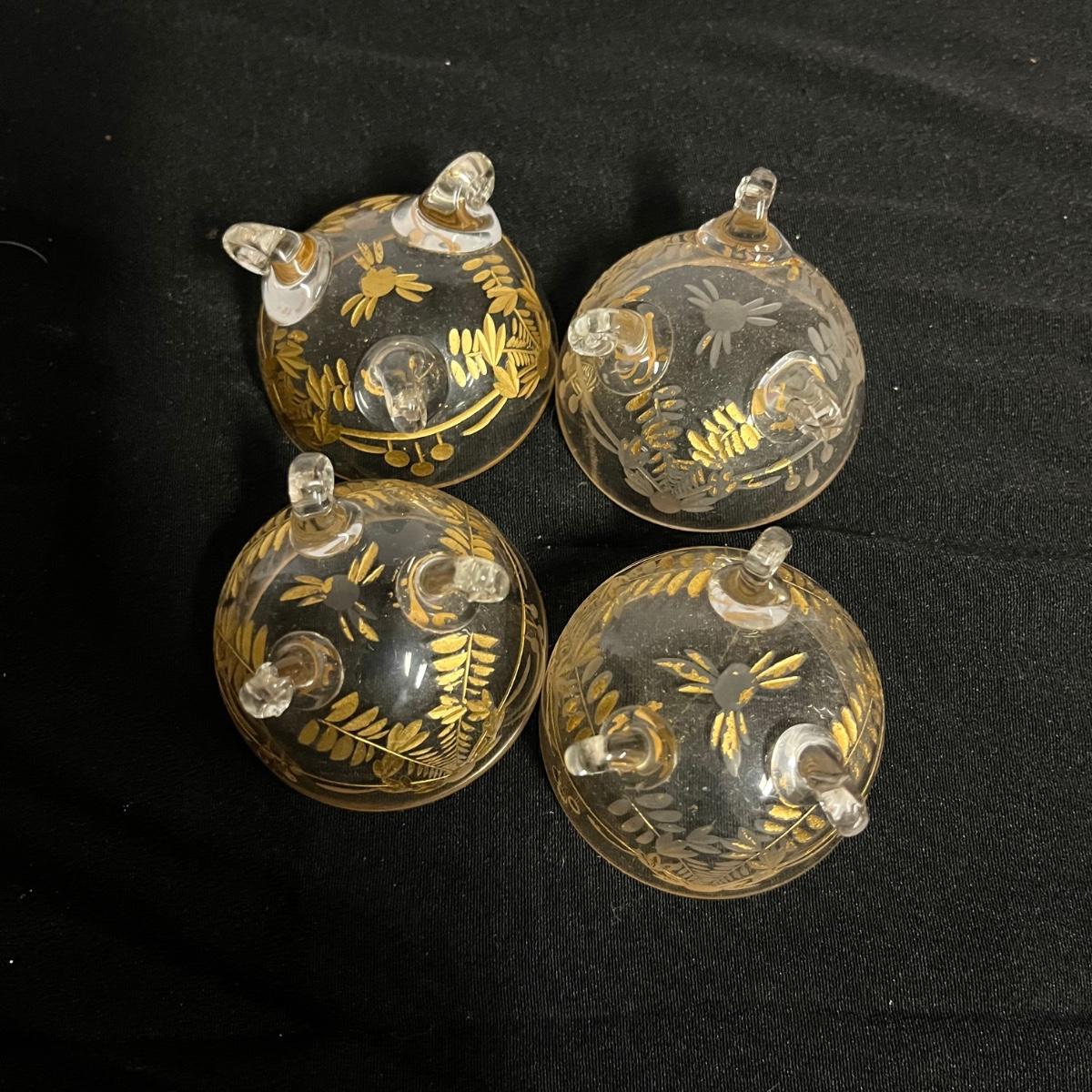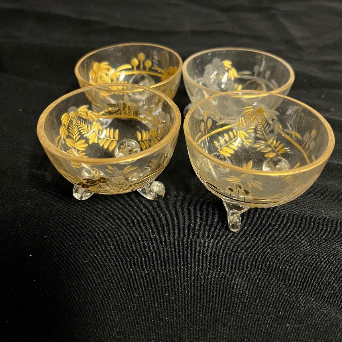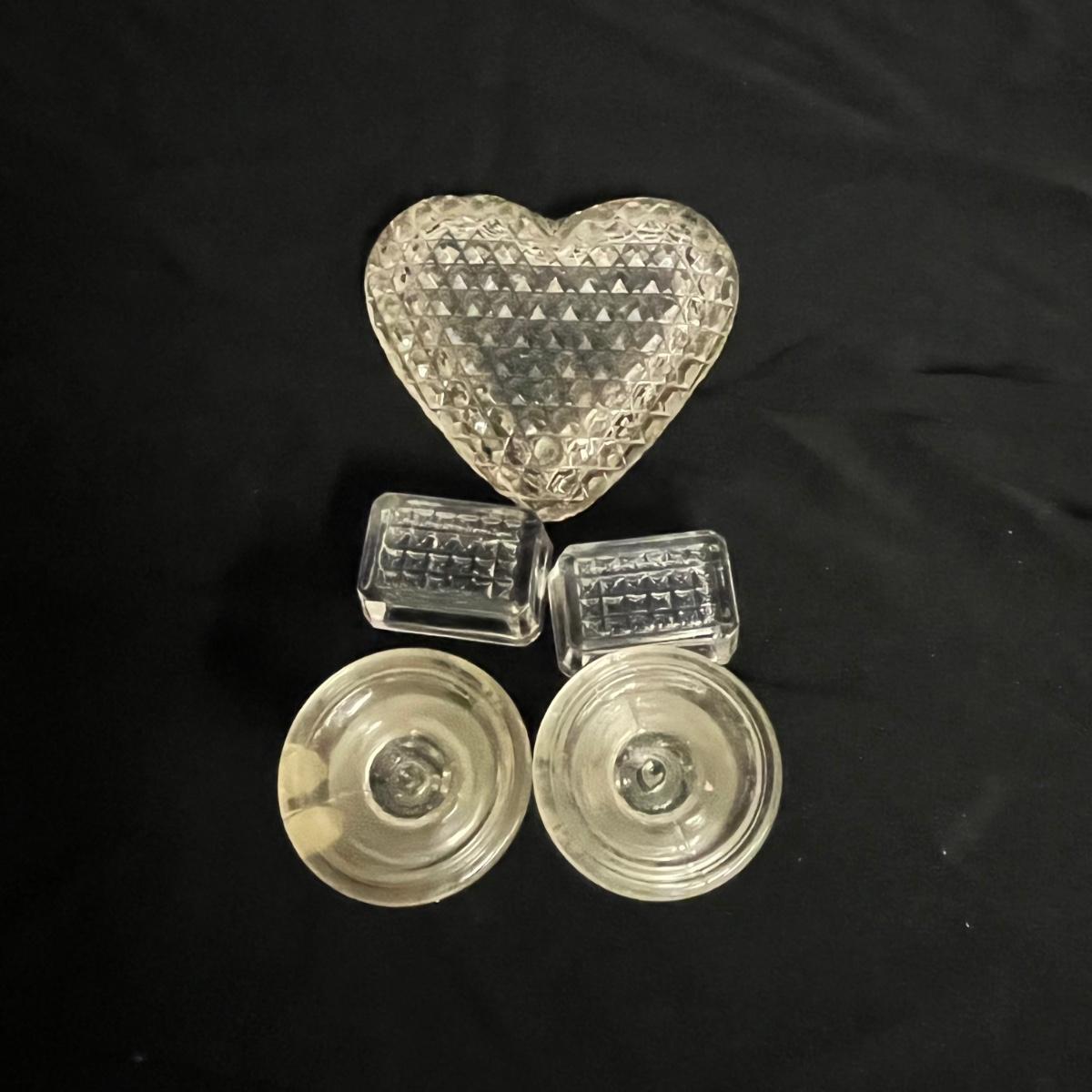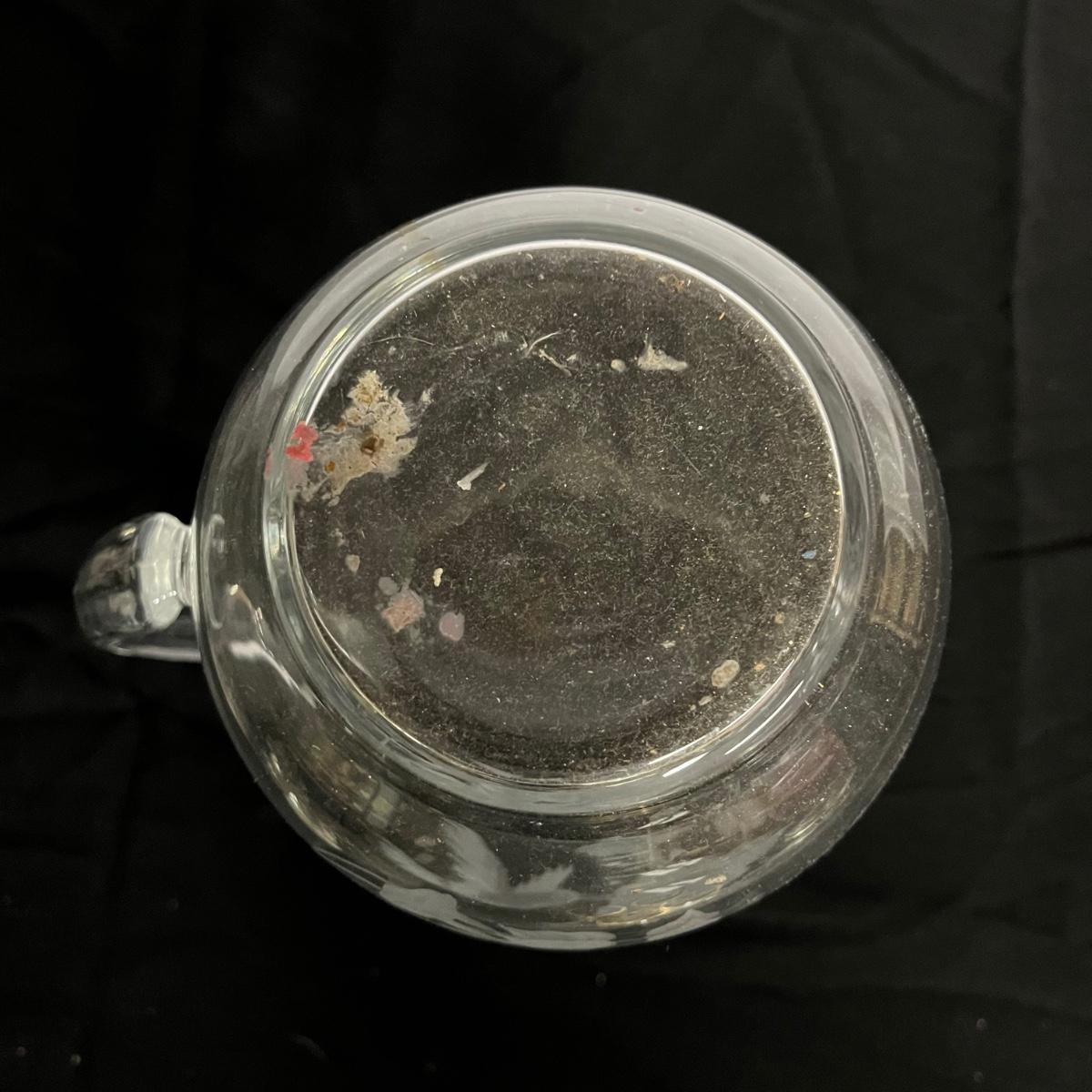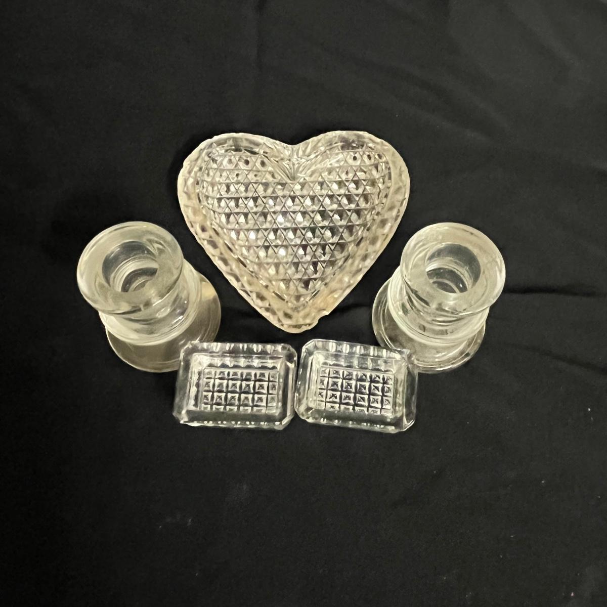 Lot includes two hand blown glass globe candle holders, etched glass pitcher, tumbler and carafe, four footed ramekins two candleholders, footed bowl and more. Pitcher measures 5”D x 8” tall without handle.