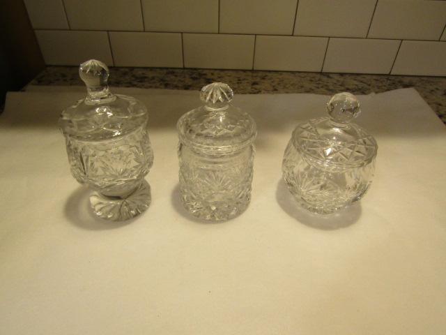 Assortment of Glass/Crystal Mustard Pots with Lids
