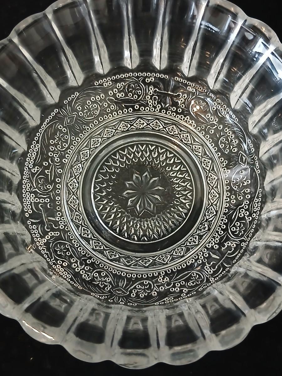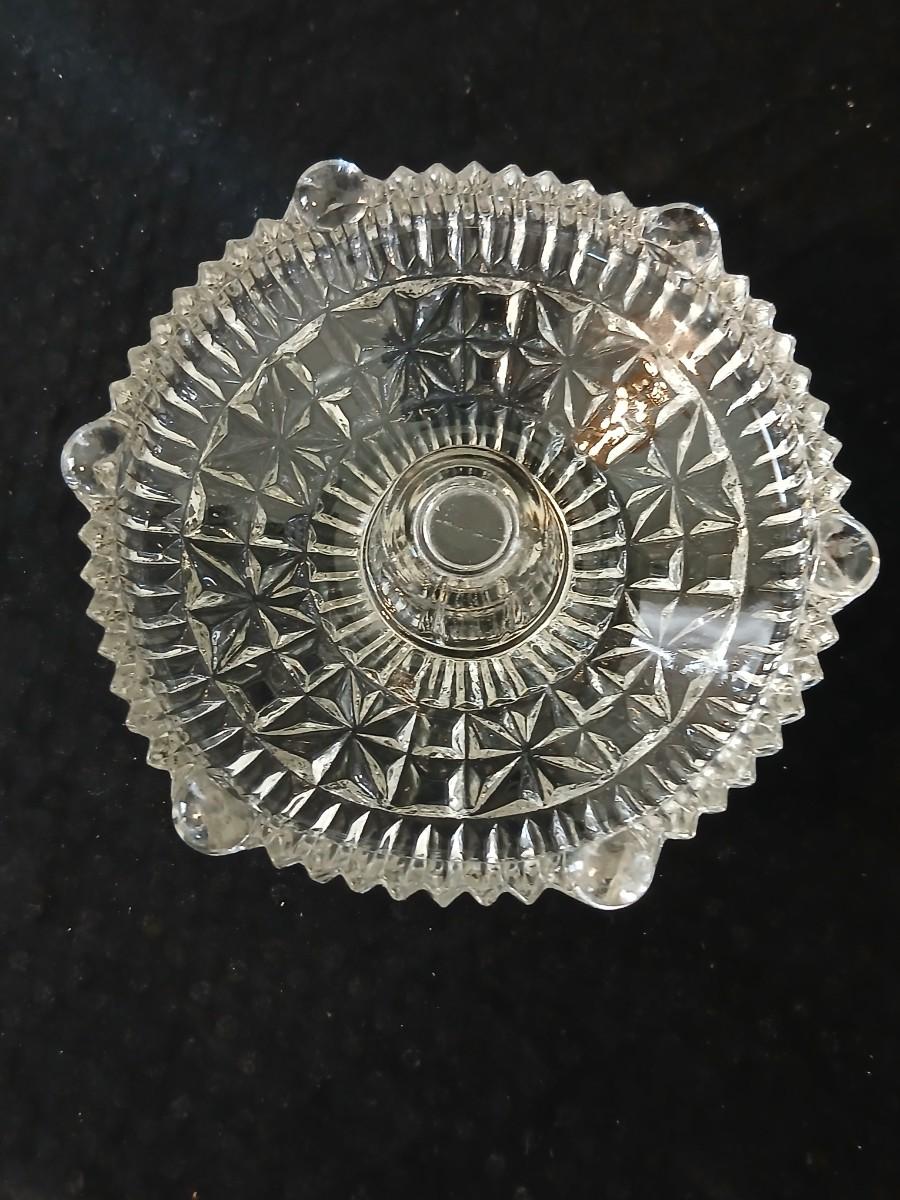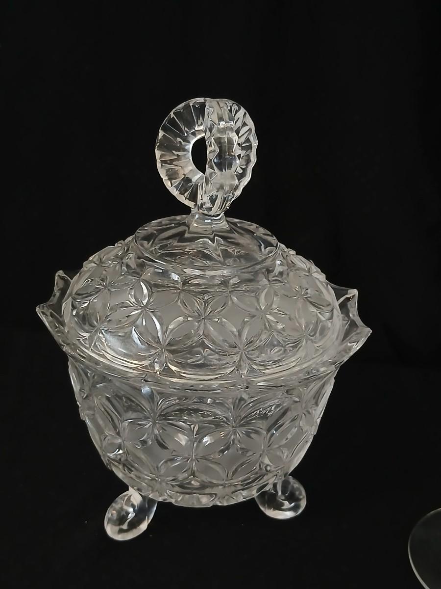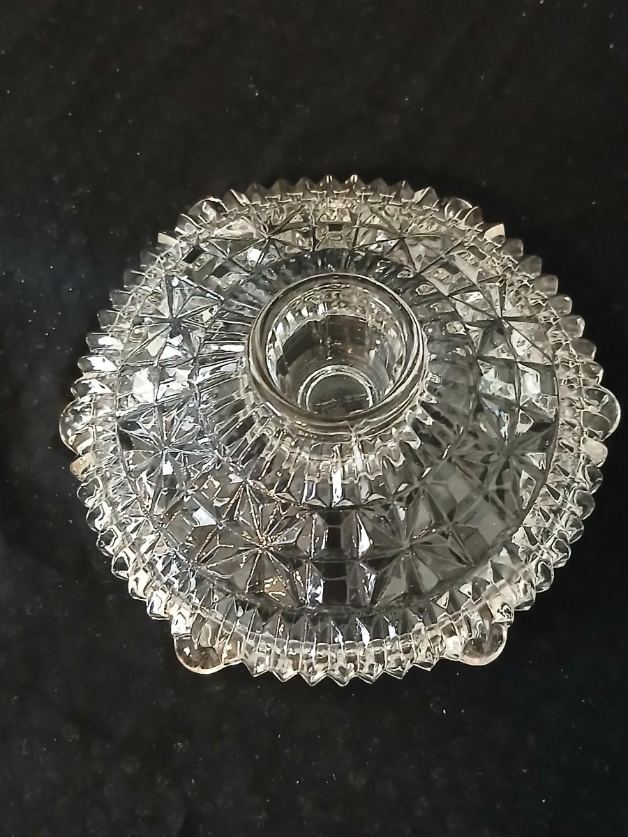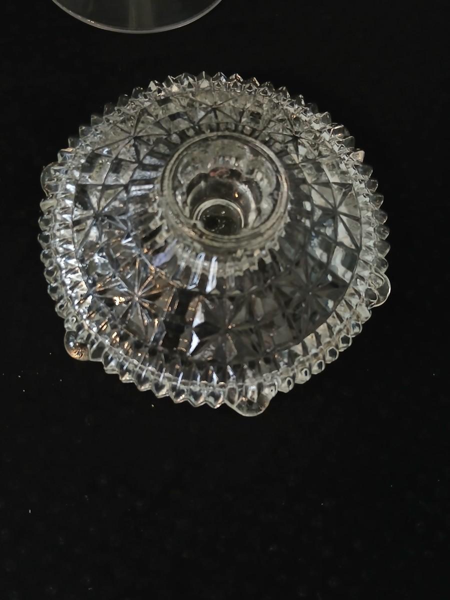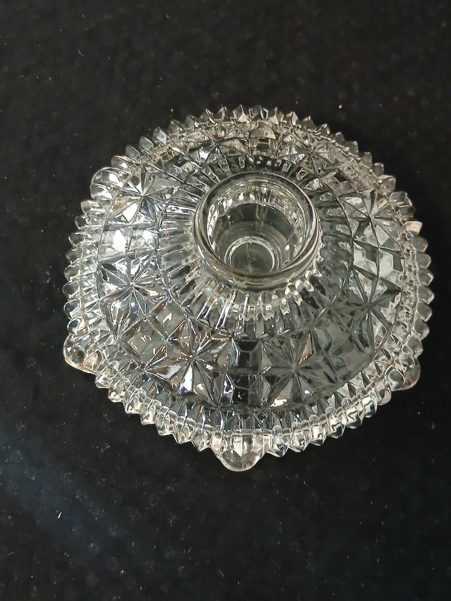 Assortment of glassware - Etched Daffodil Vase, Bowls, candy dish, Candle stick holders