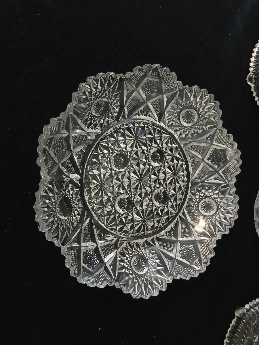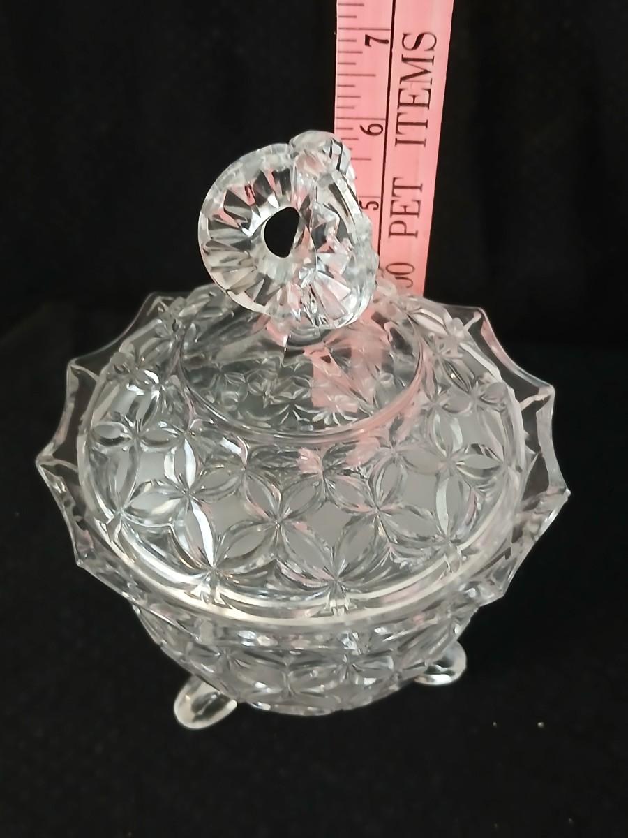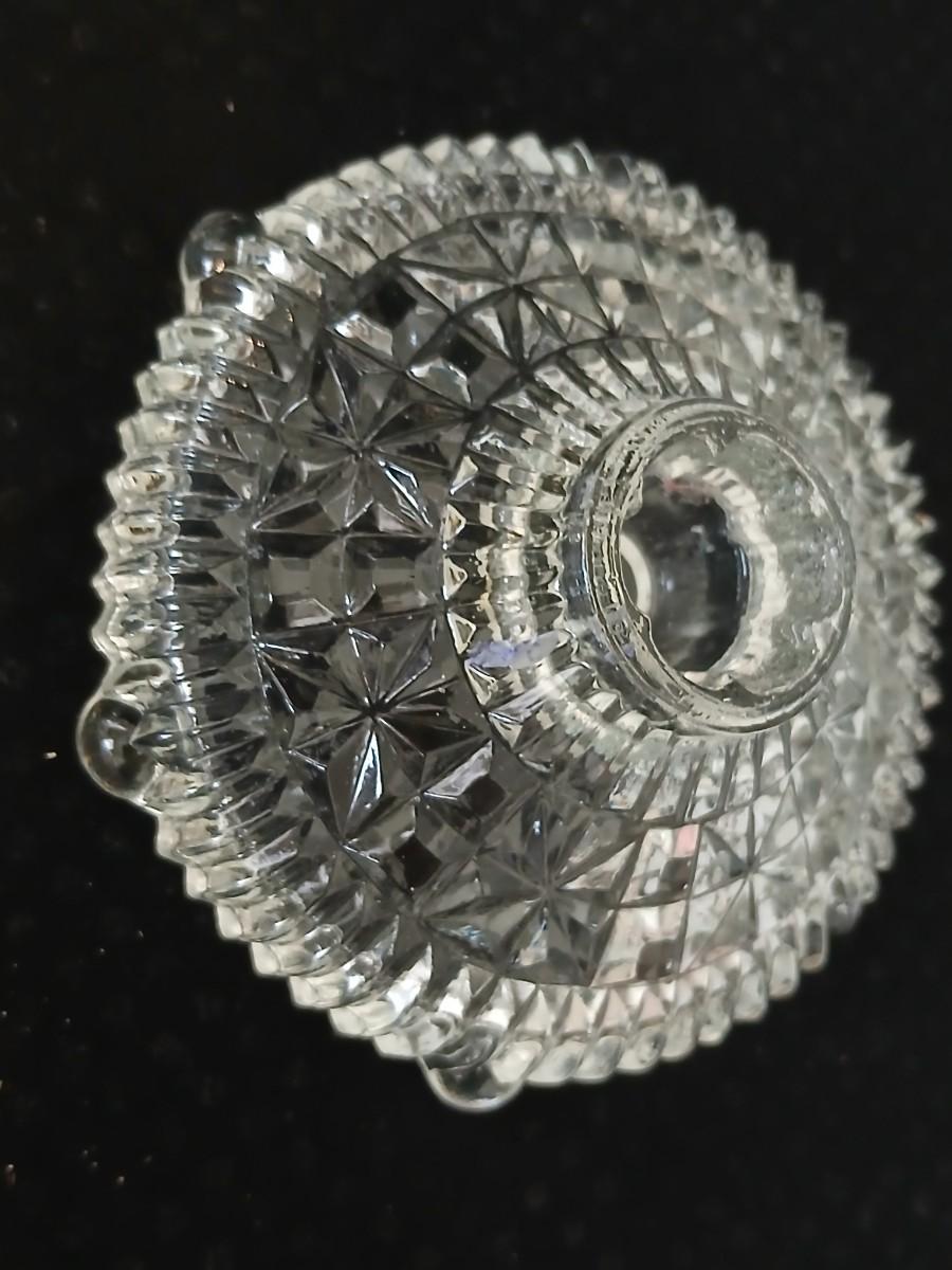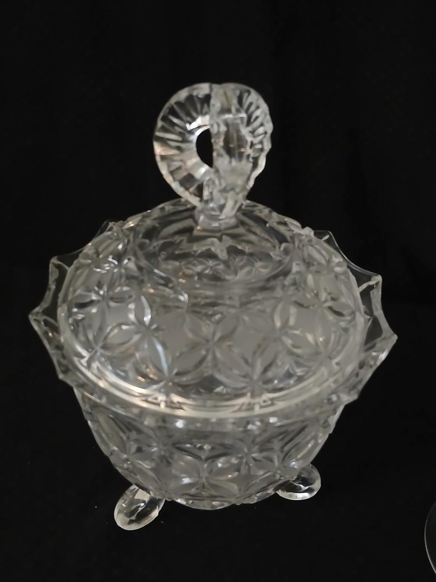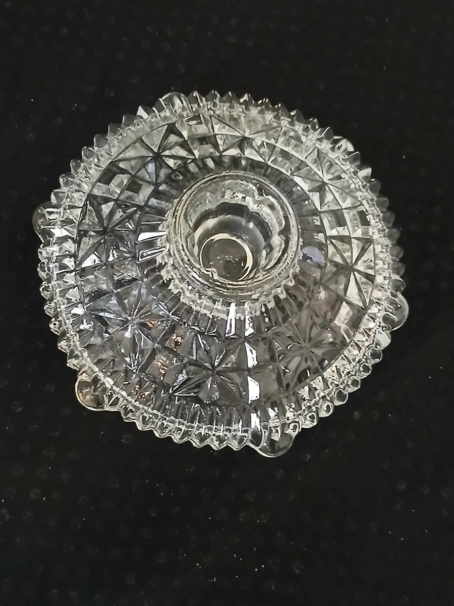 Assortment of glassware - Etched Daffodil Vase, Bowls, candy dish, Candle stick holders