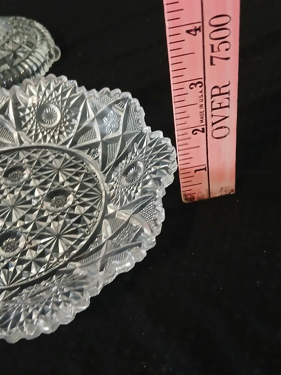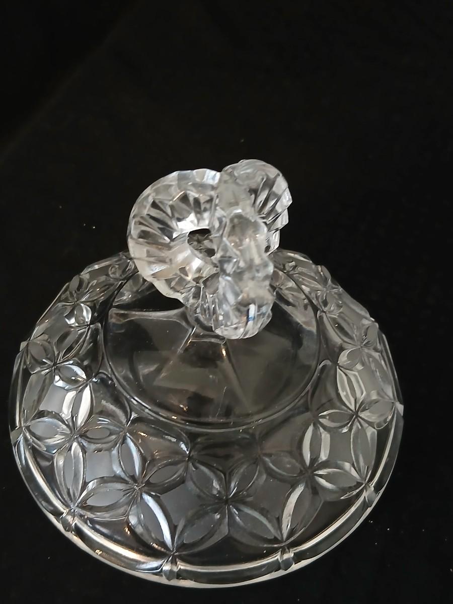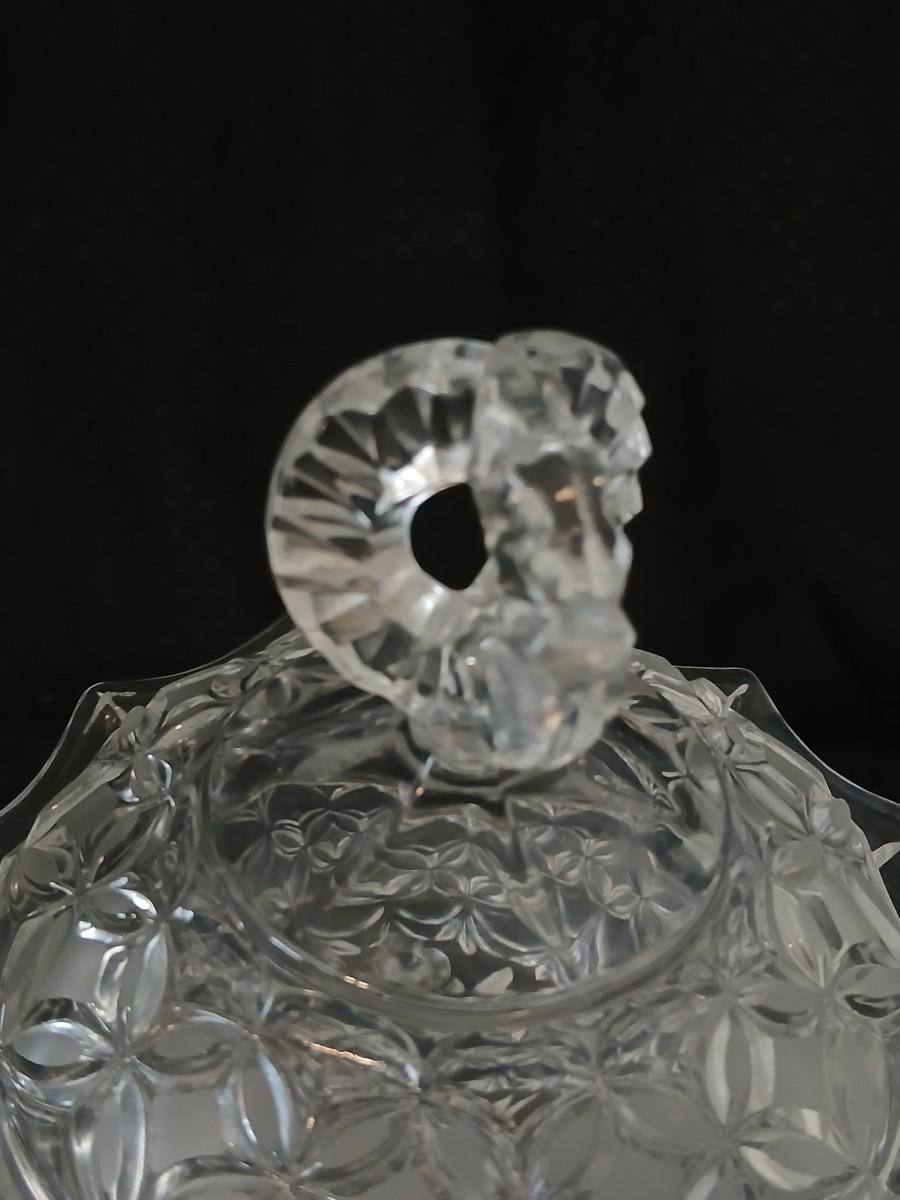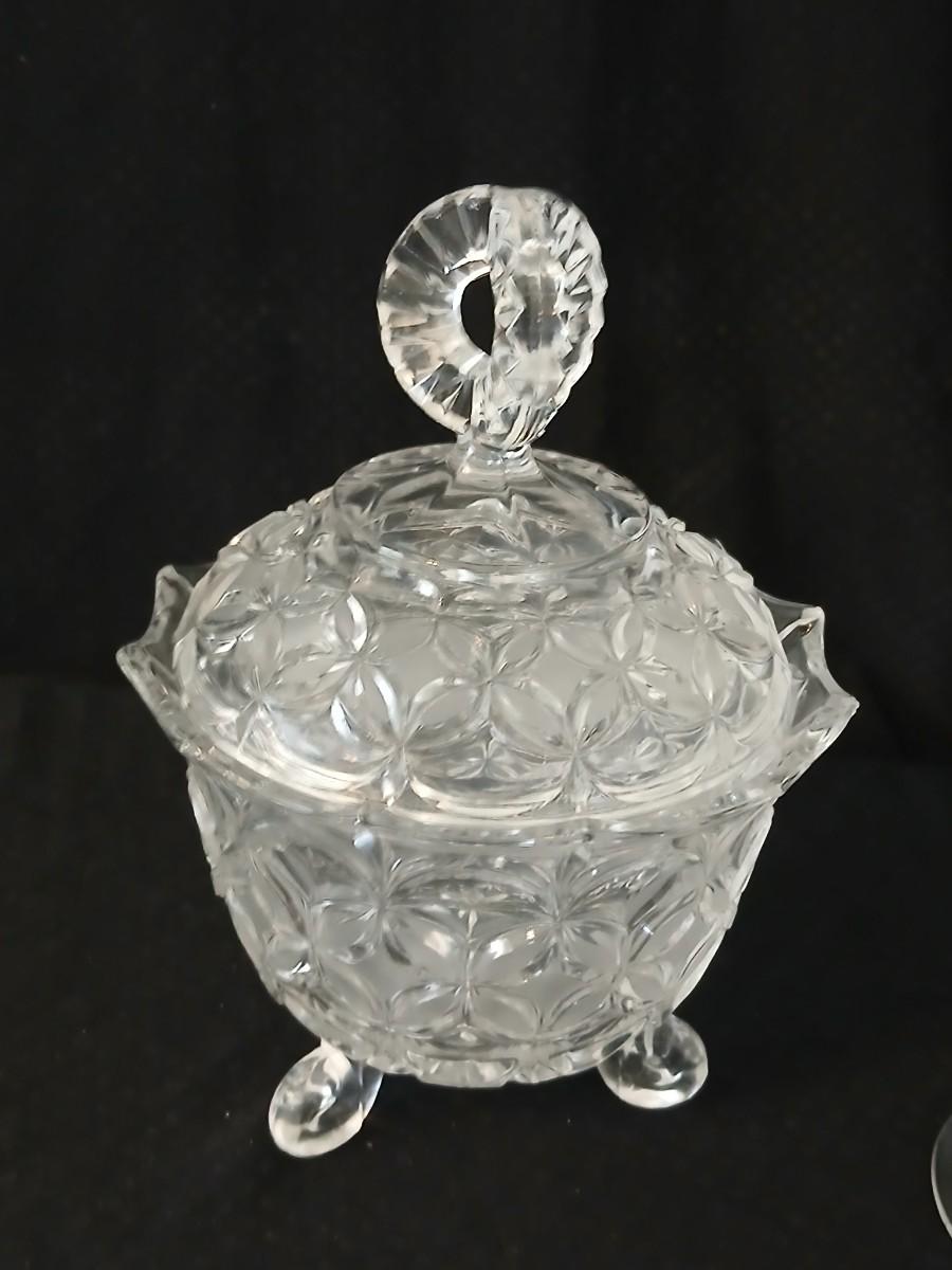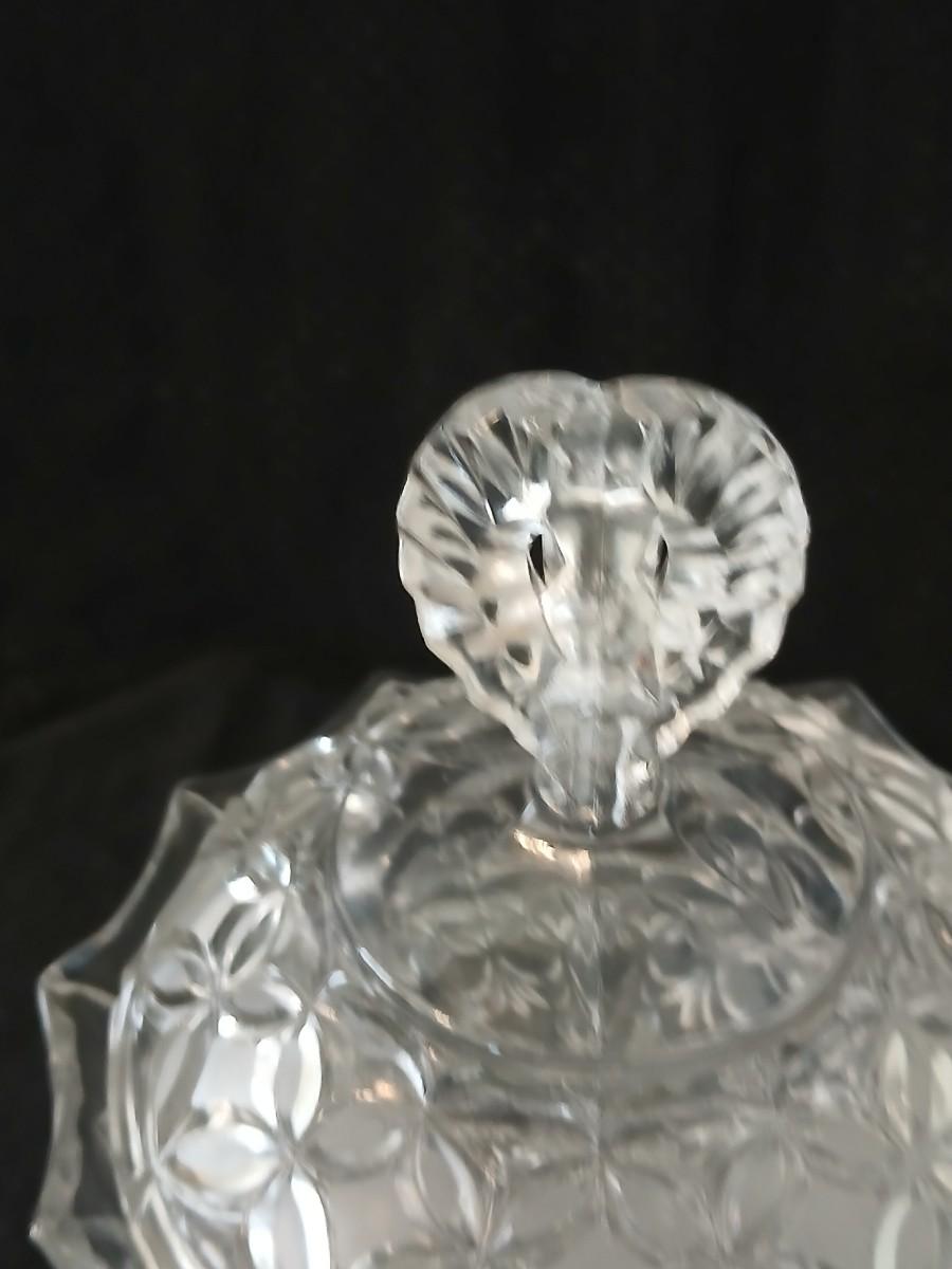 Assortment of glassware - Etched Daffodil Vase, Bowls, candy dish, Candle stick holders
