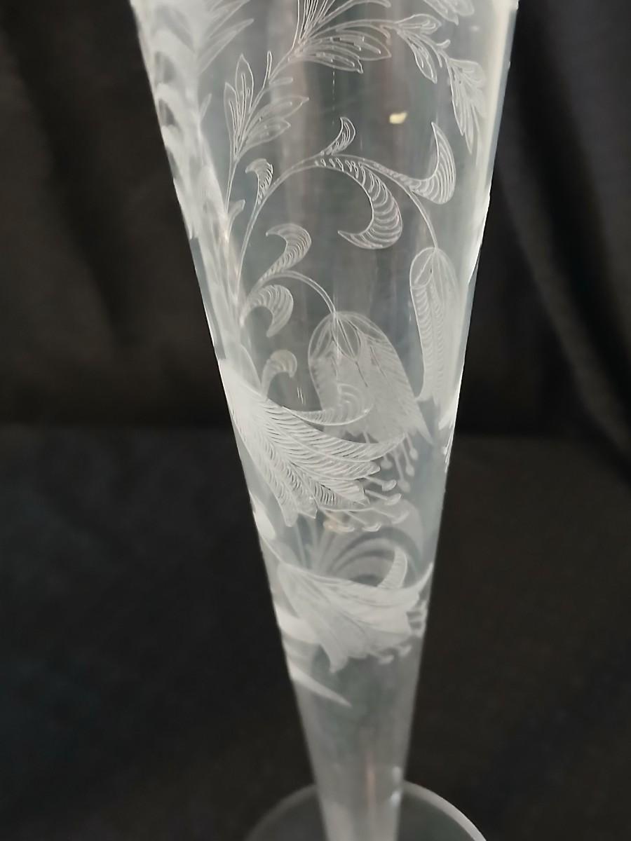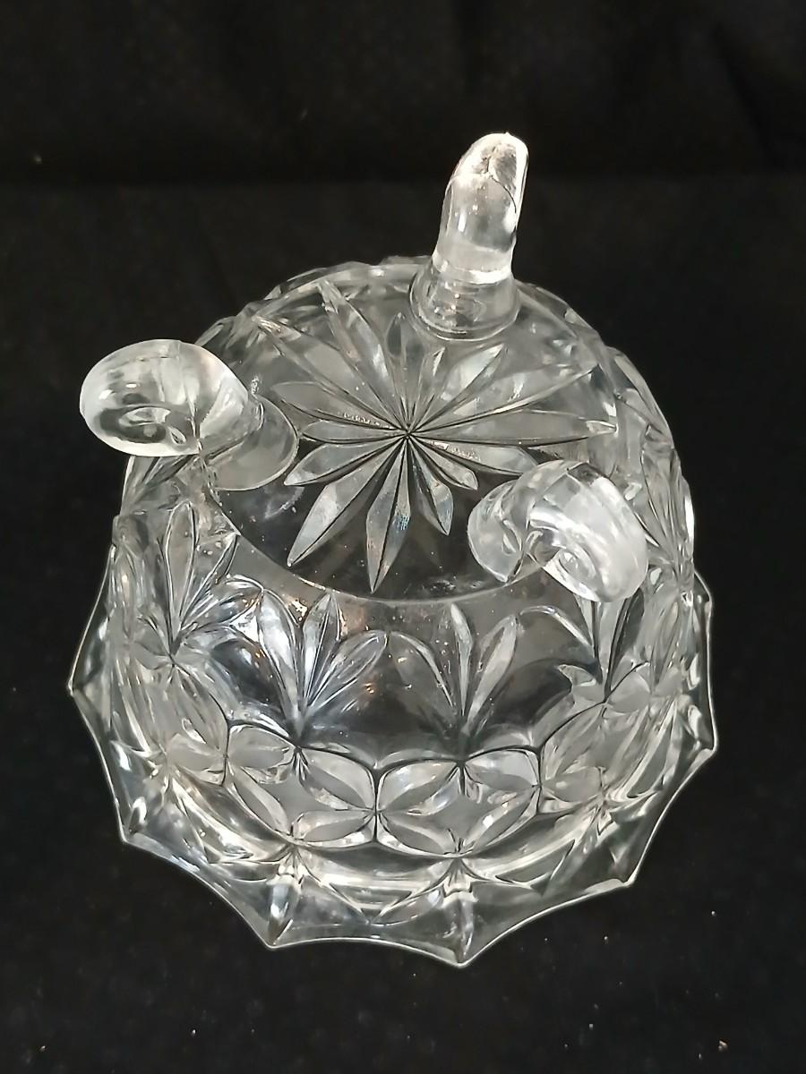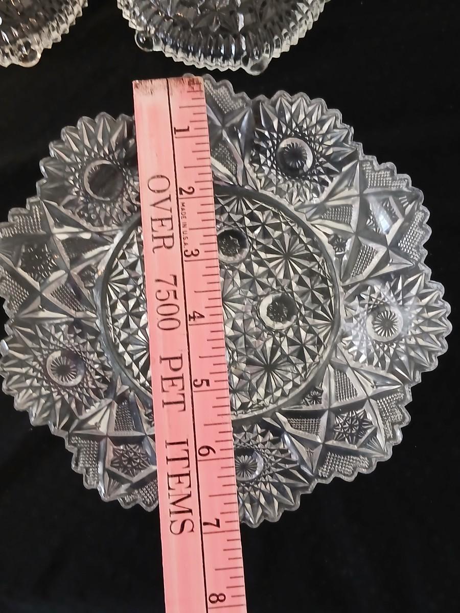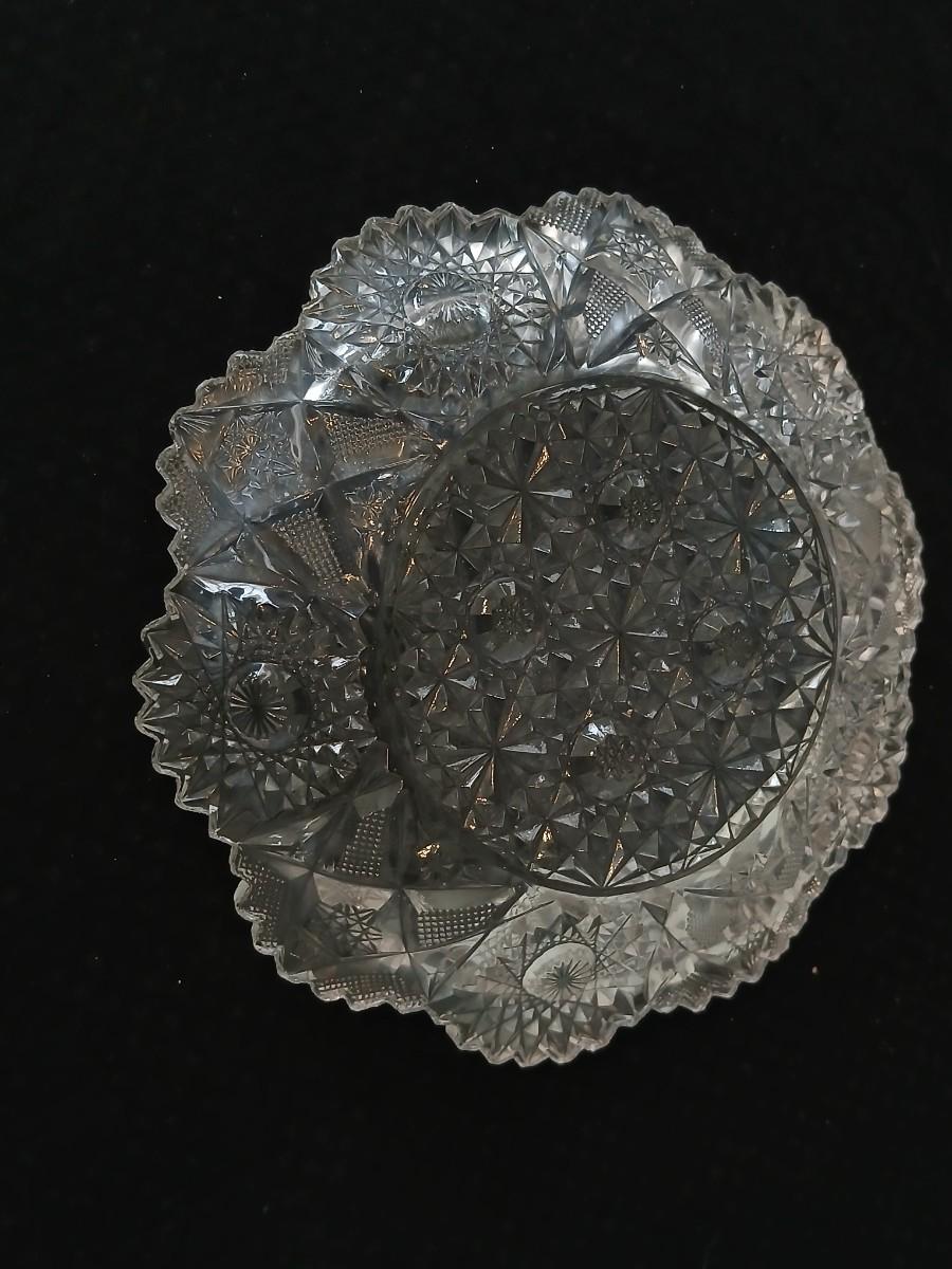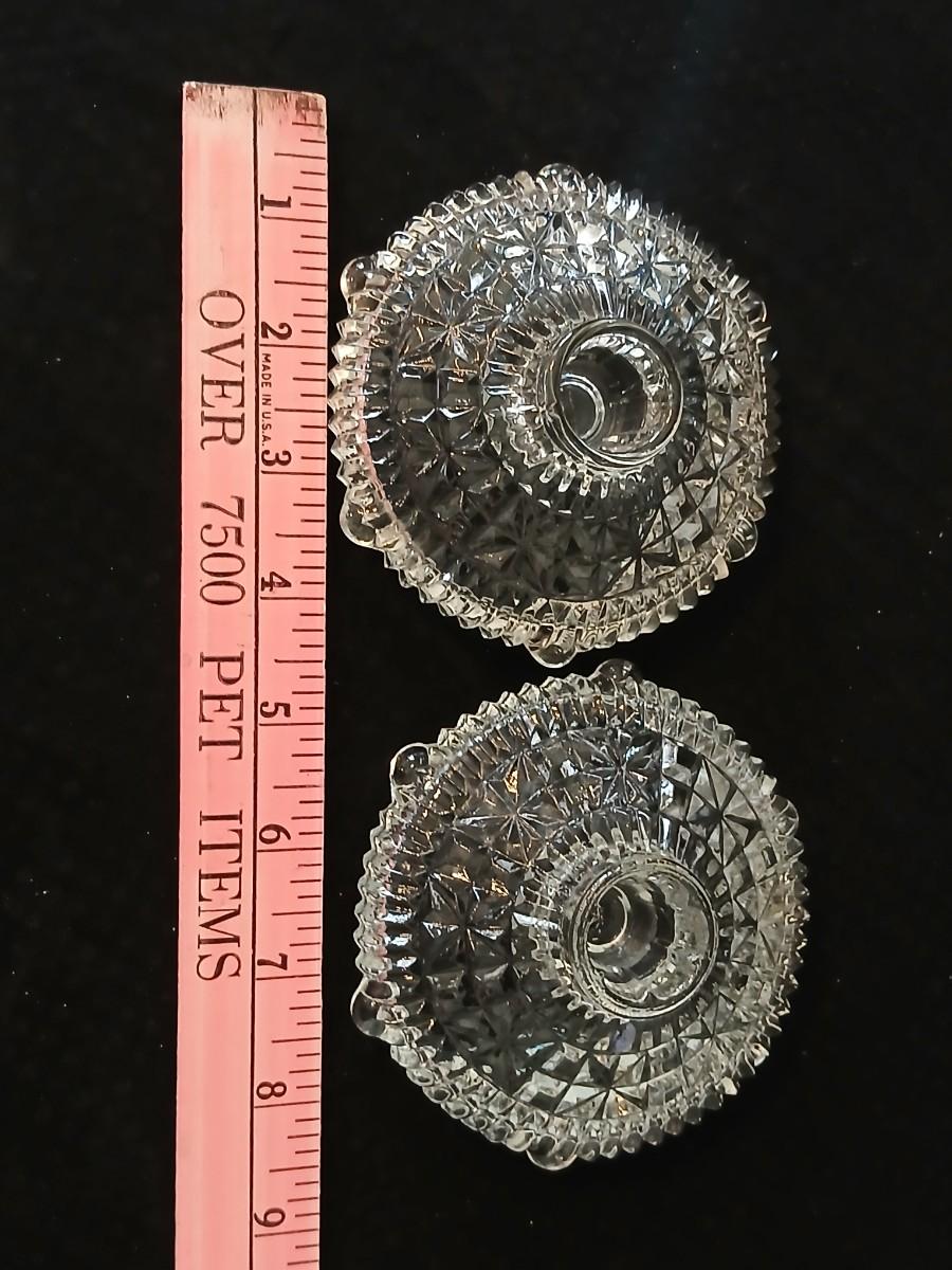 Assortment of glassware - Etched Daffodil Vase, Bowls, candy dish, Candle stick holders