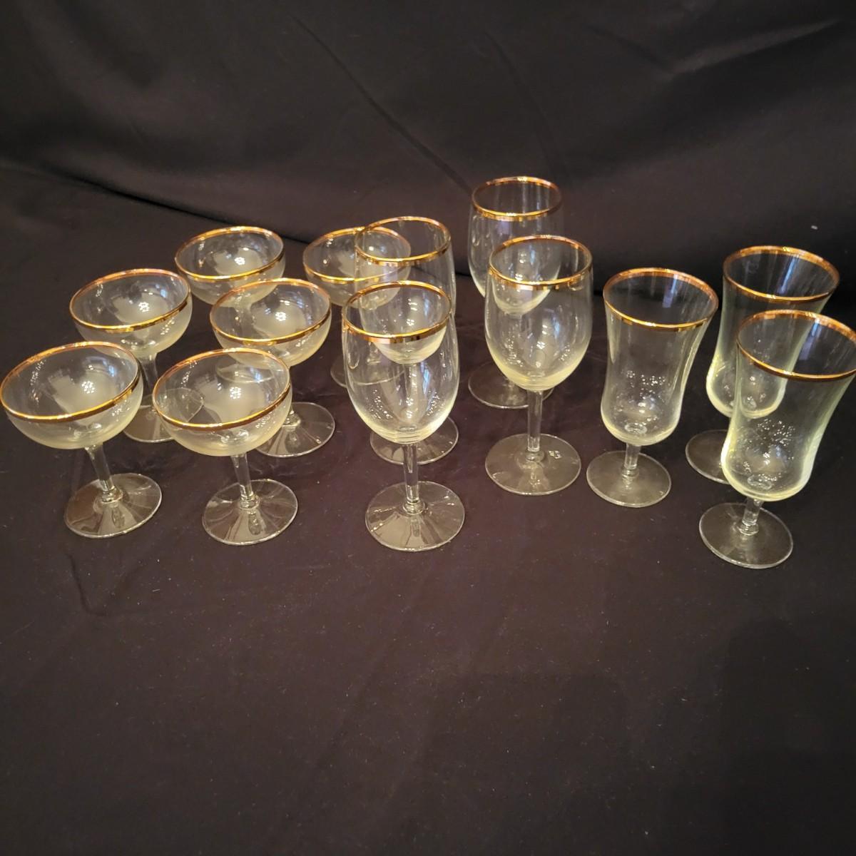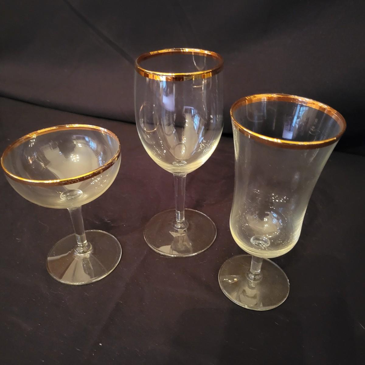 Assortment of Gold Rimmed Glassware (FR-DW)