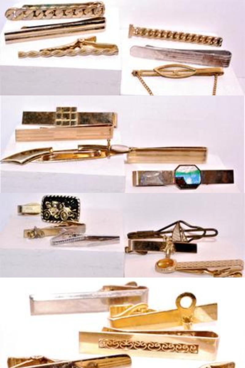 Assortment of Gold & Silver Tone Tie Bars / Clasps 25 Pcs.