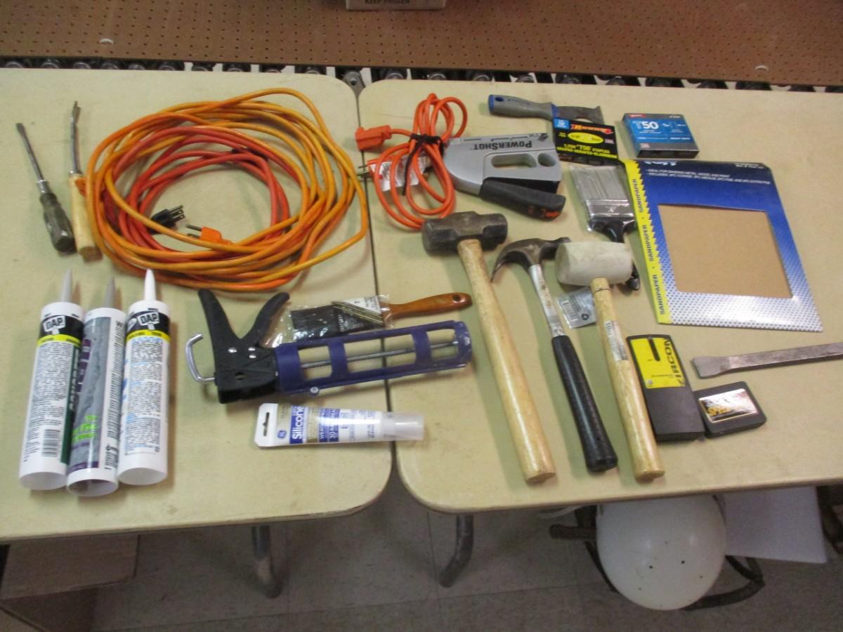 Assortment Of Hand Tools & Electrical Cords Caulk