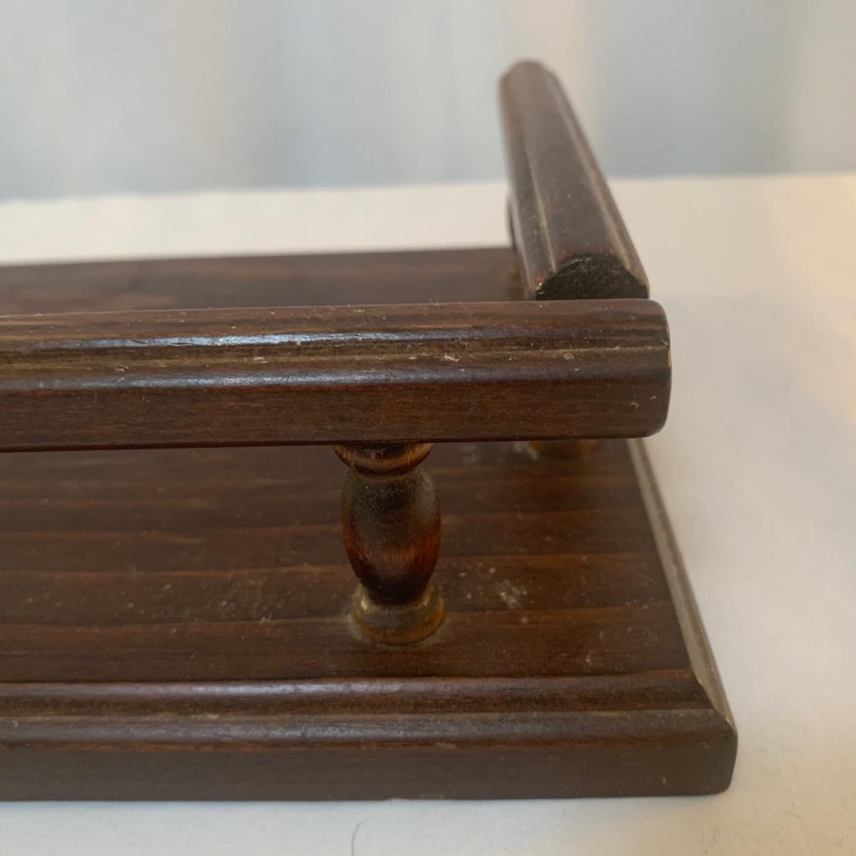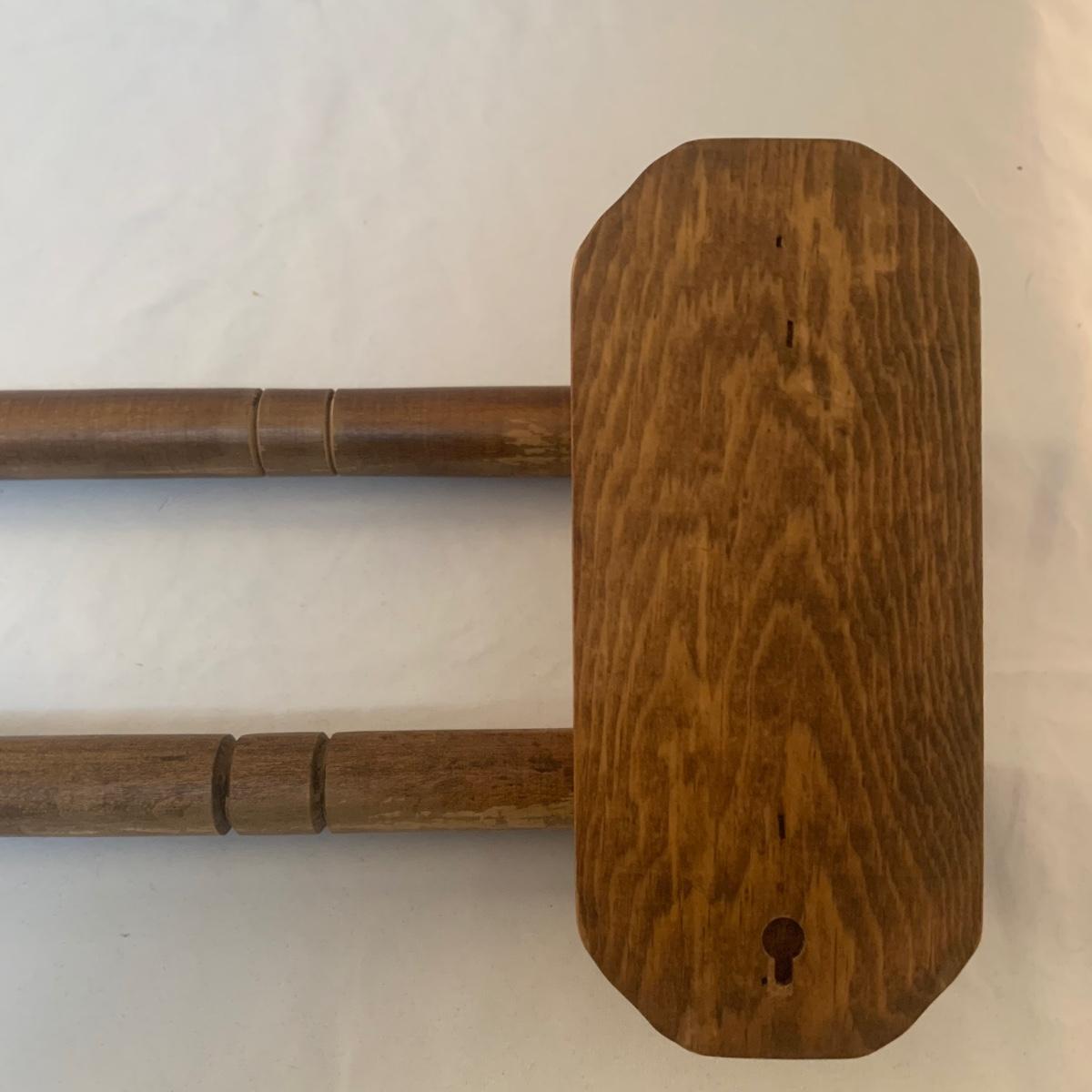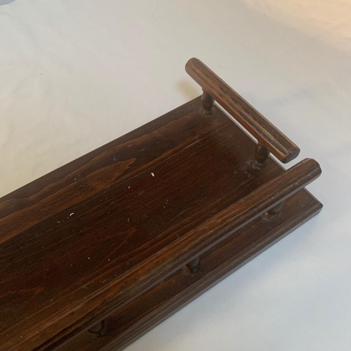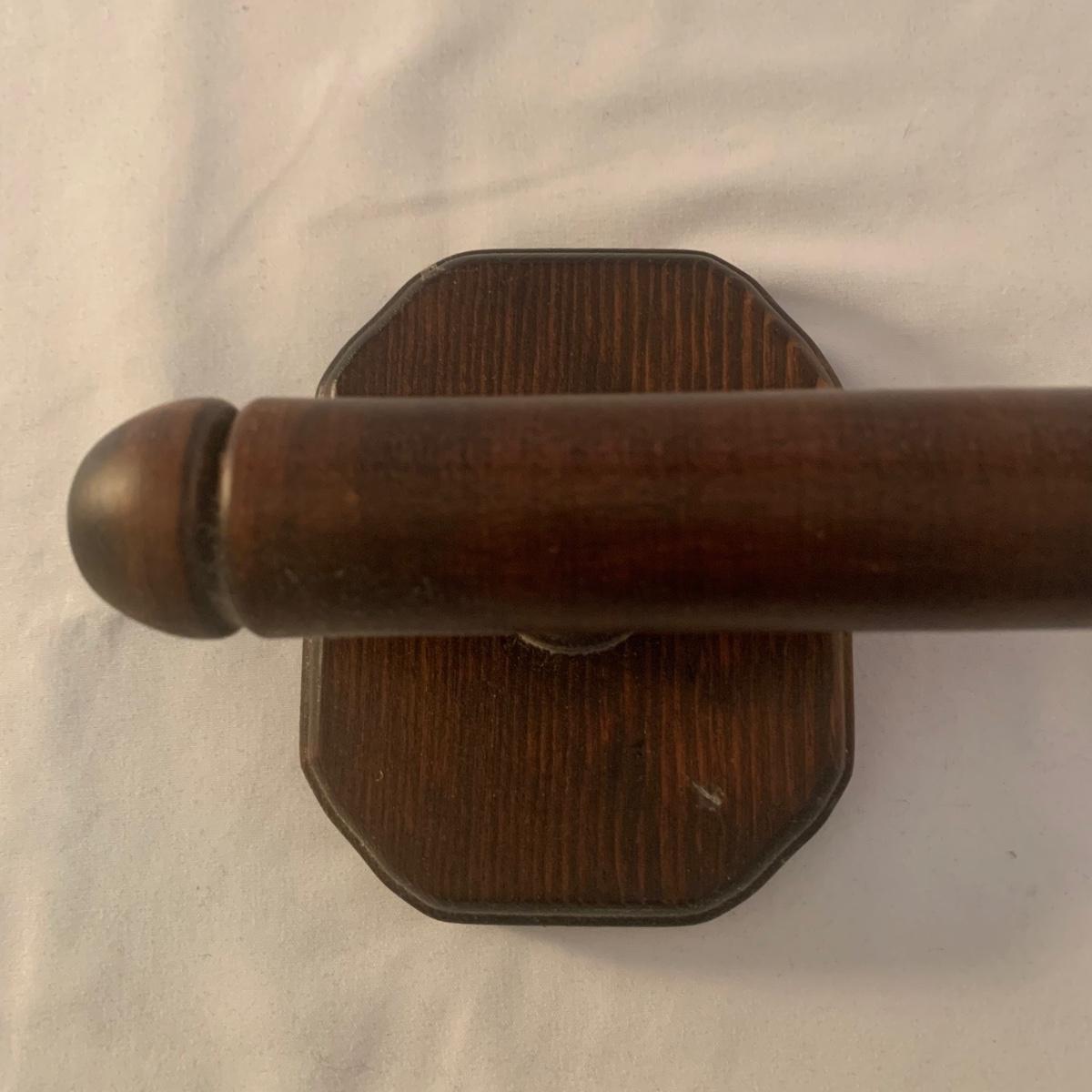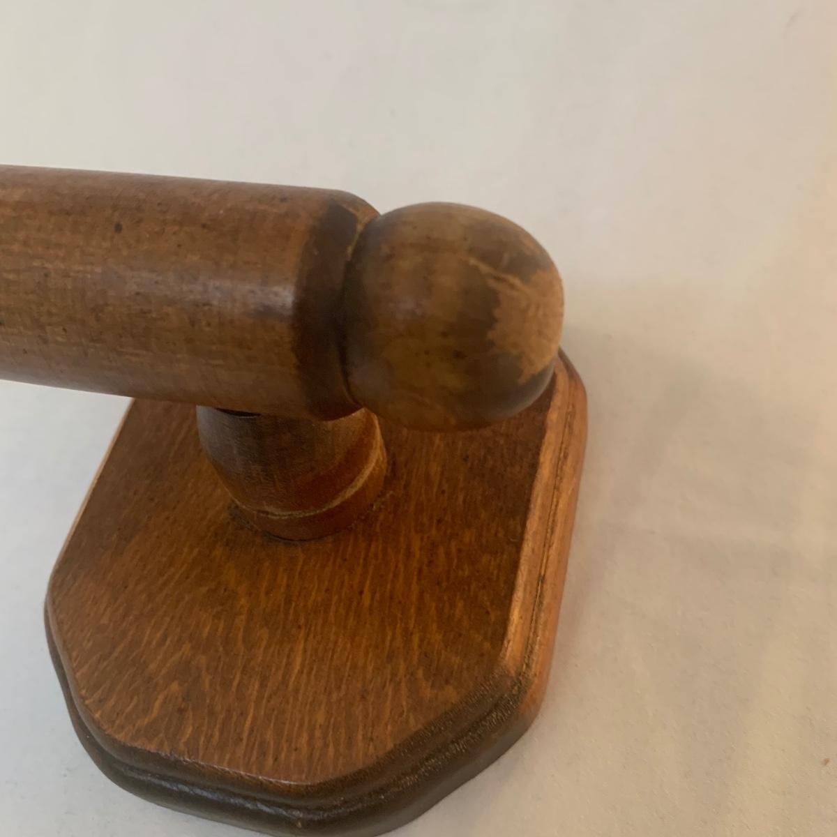 This assortment of handcrafted towel racks was made here in Asheville, NC by “Three Mountaineers”. Only one of the items has a brand sticker, so we cannot verify that all of these items are from Three Mountaineers. Lot includes three wood towel racks and small wood countertop organizer. Items show a little wear, but are overall in good condition. Please see photos for details. The largest rack measures 27”L. The base measures, 4.5”L x 3.5”W.