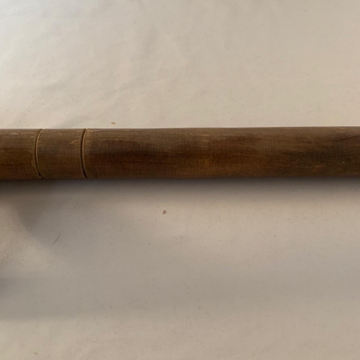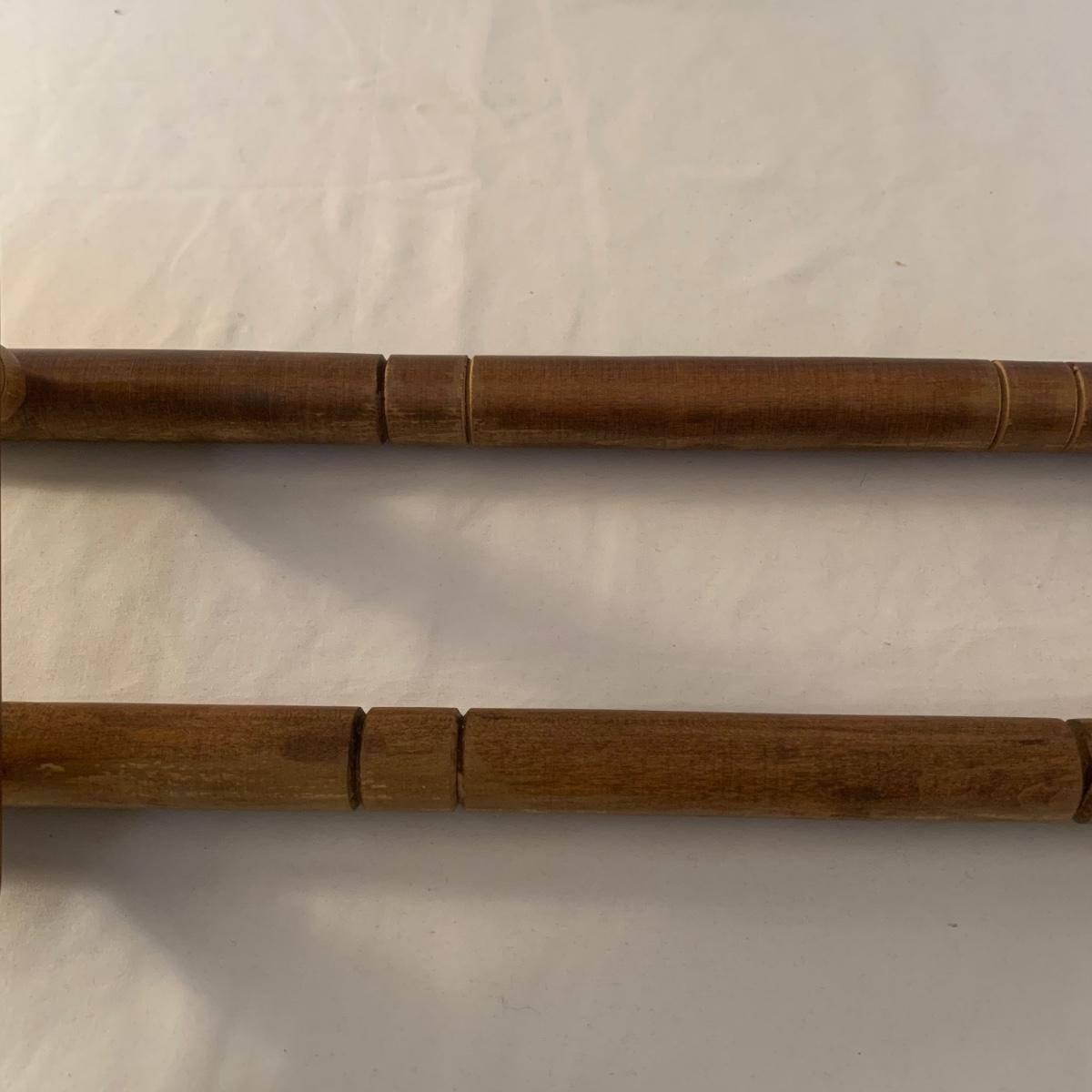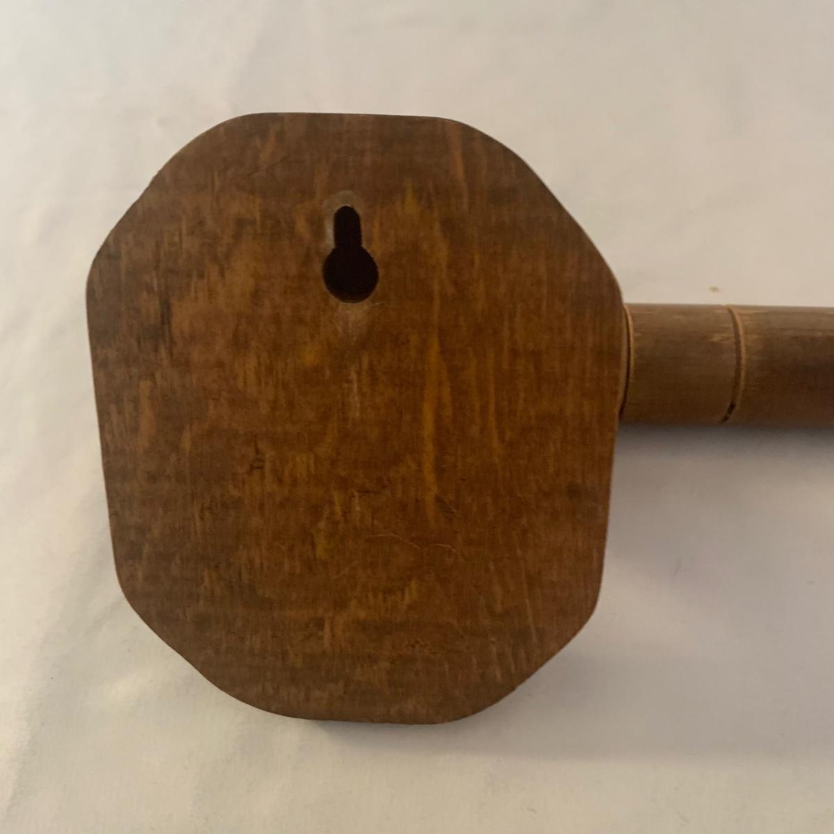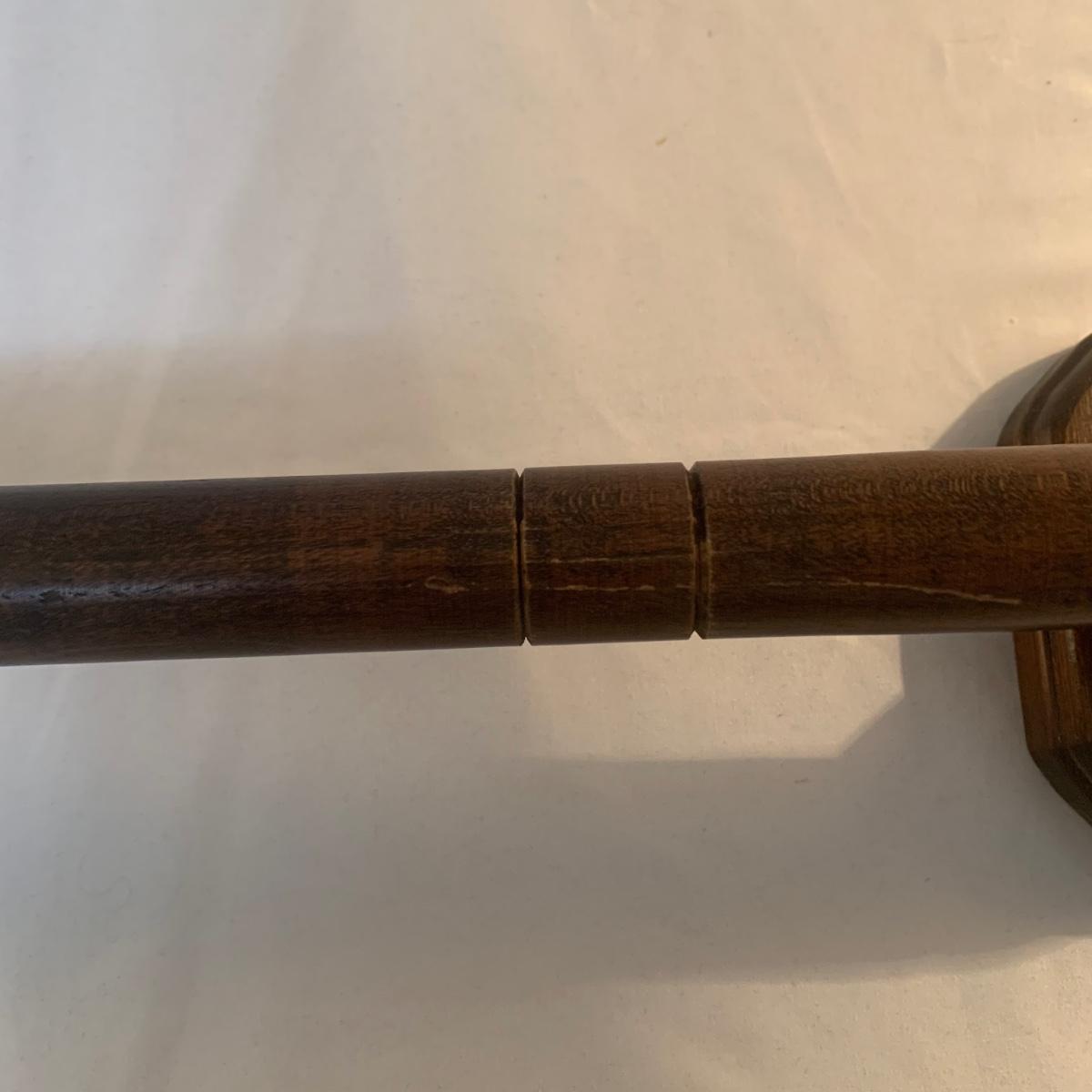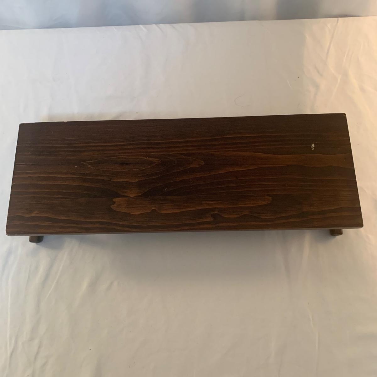 This assortment of handcrafted towel racks was made here in Asheville, NC by “Three Mountaineers”. Only one of the items has a brand sticker, so we cannot verify that all of these items are from Three Mountaineers. Lot includes three wood towel racks and small wood countertop organizer. Items show a little wear, but are overall in good condition. Please see photos for details. The largest rack measures 27”L. The base measures, 4.5”L x 3.5”W.