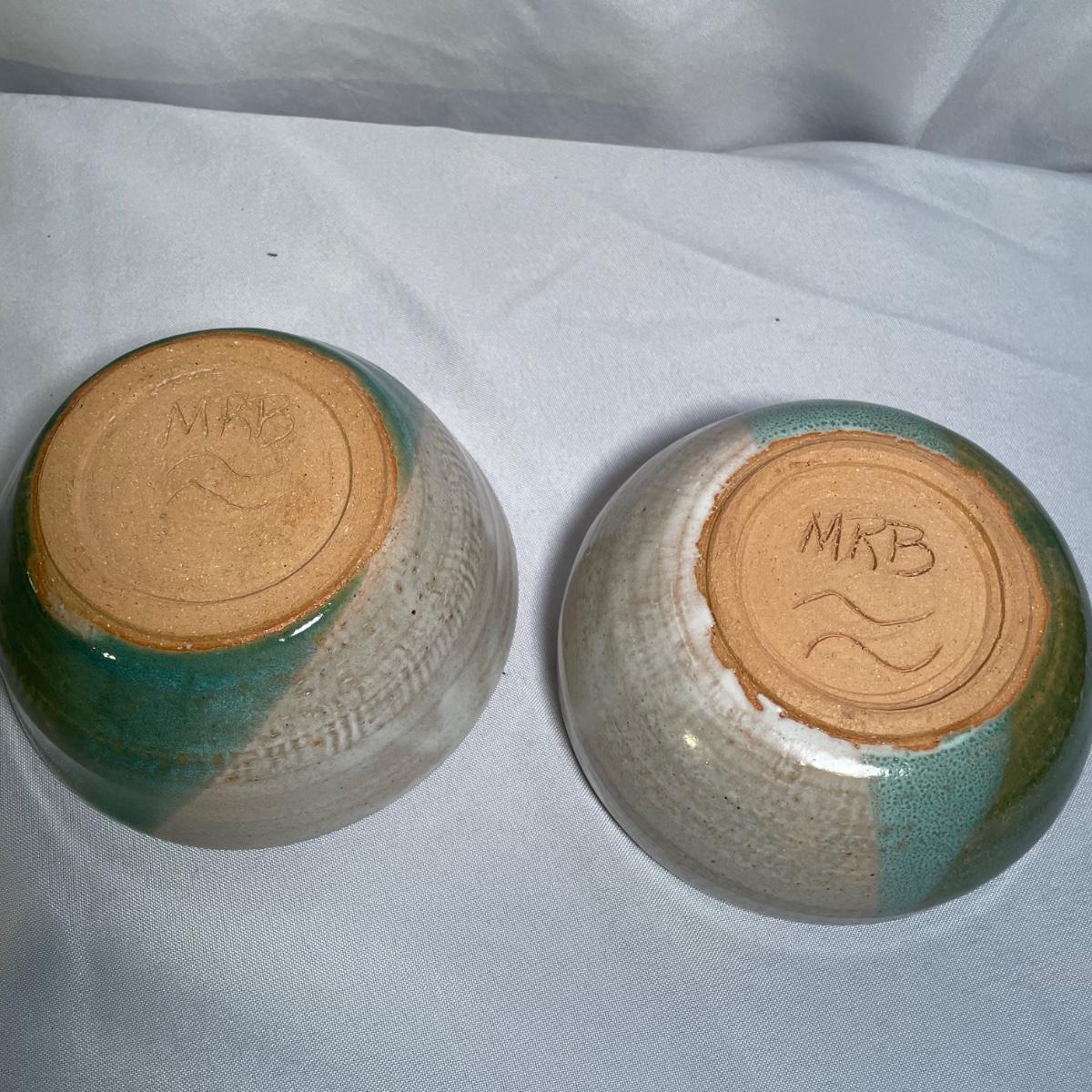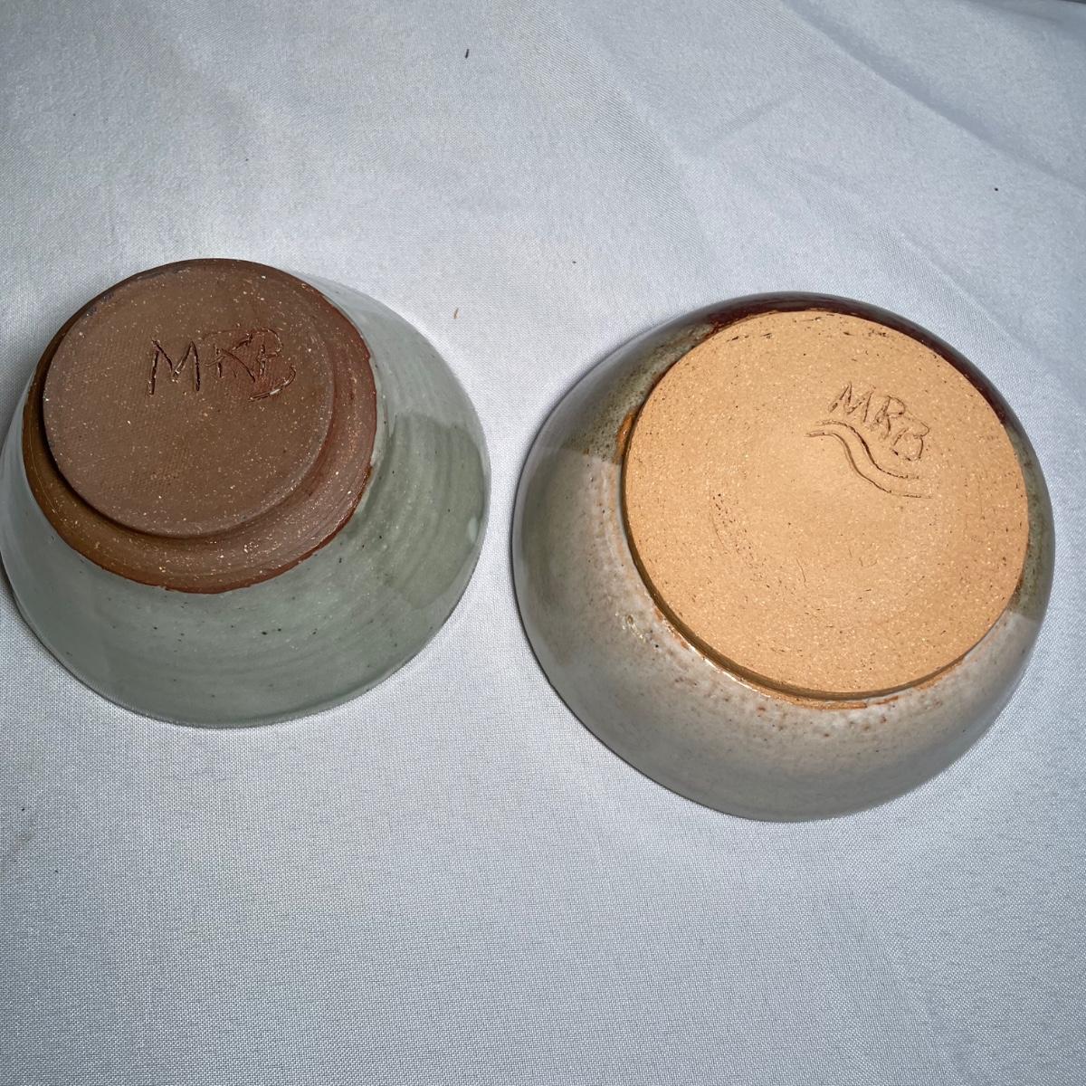 All five of these handmade pottery bowls bear a makers mark that reads MRB. No chips, cracks or crazing on any of them.