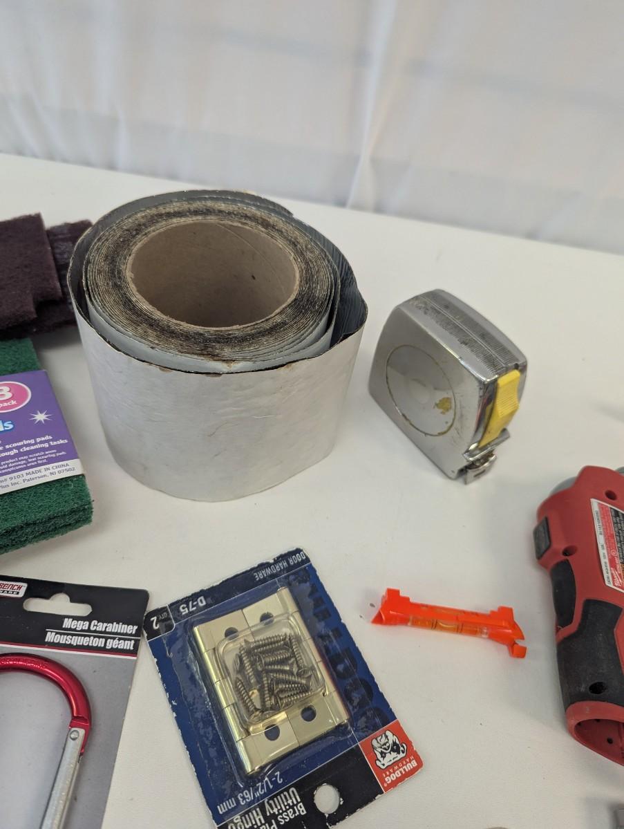 Assortment Of Hardware Supplies Squares Caulk Gun