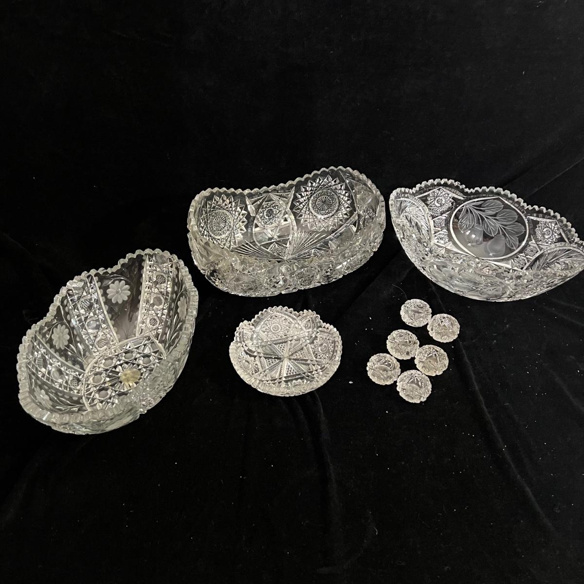 Four Hobstar Crystal Bowls & Six Salt Cellars (DR-MK)